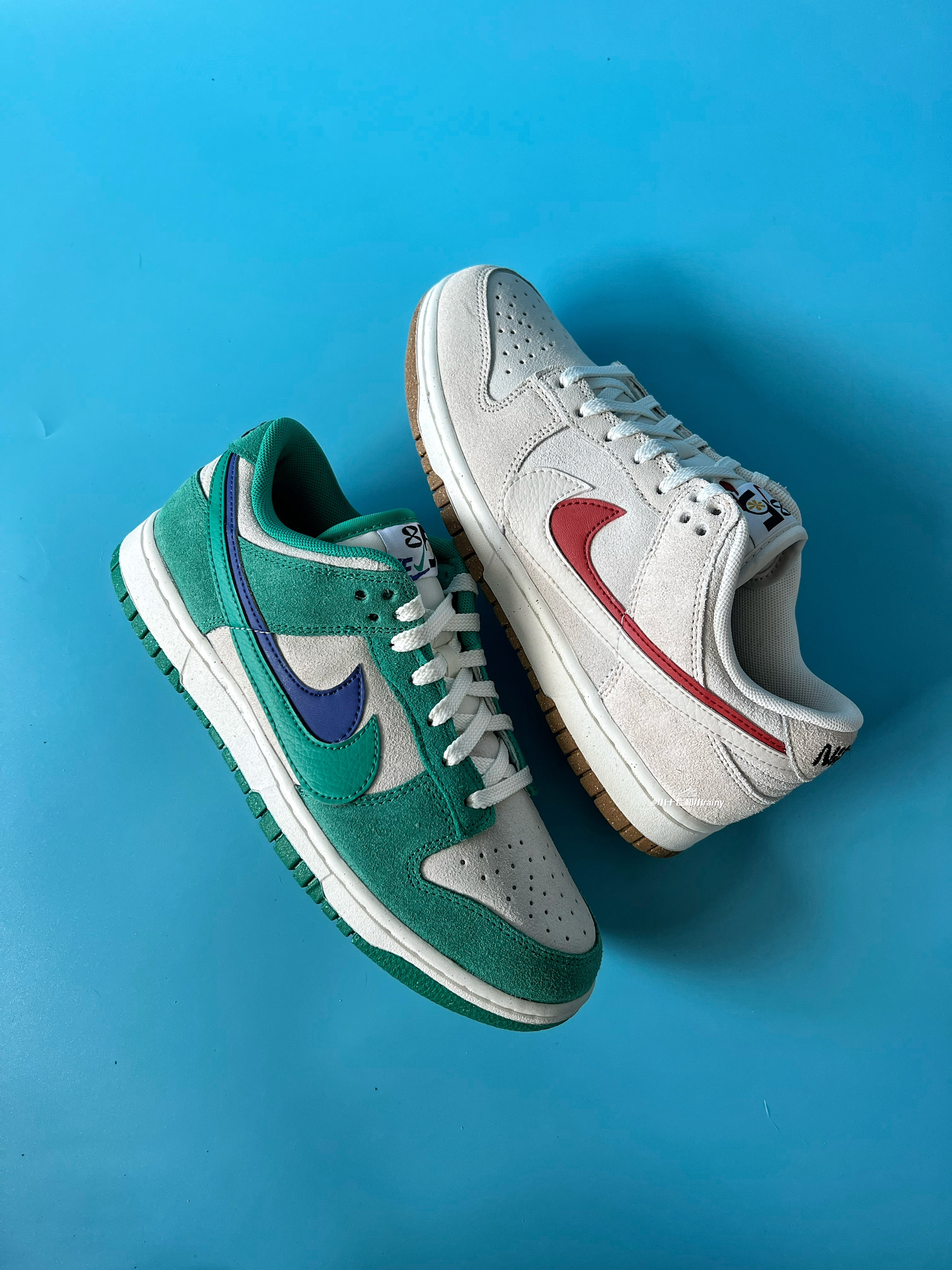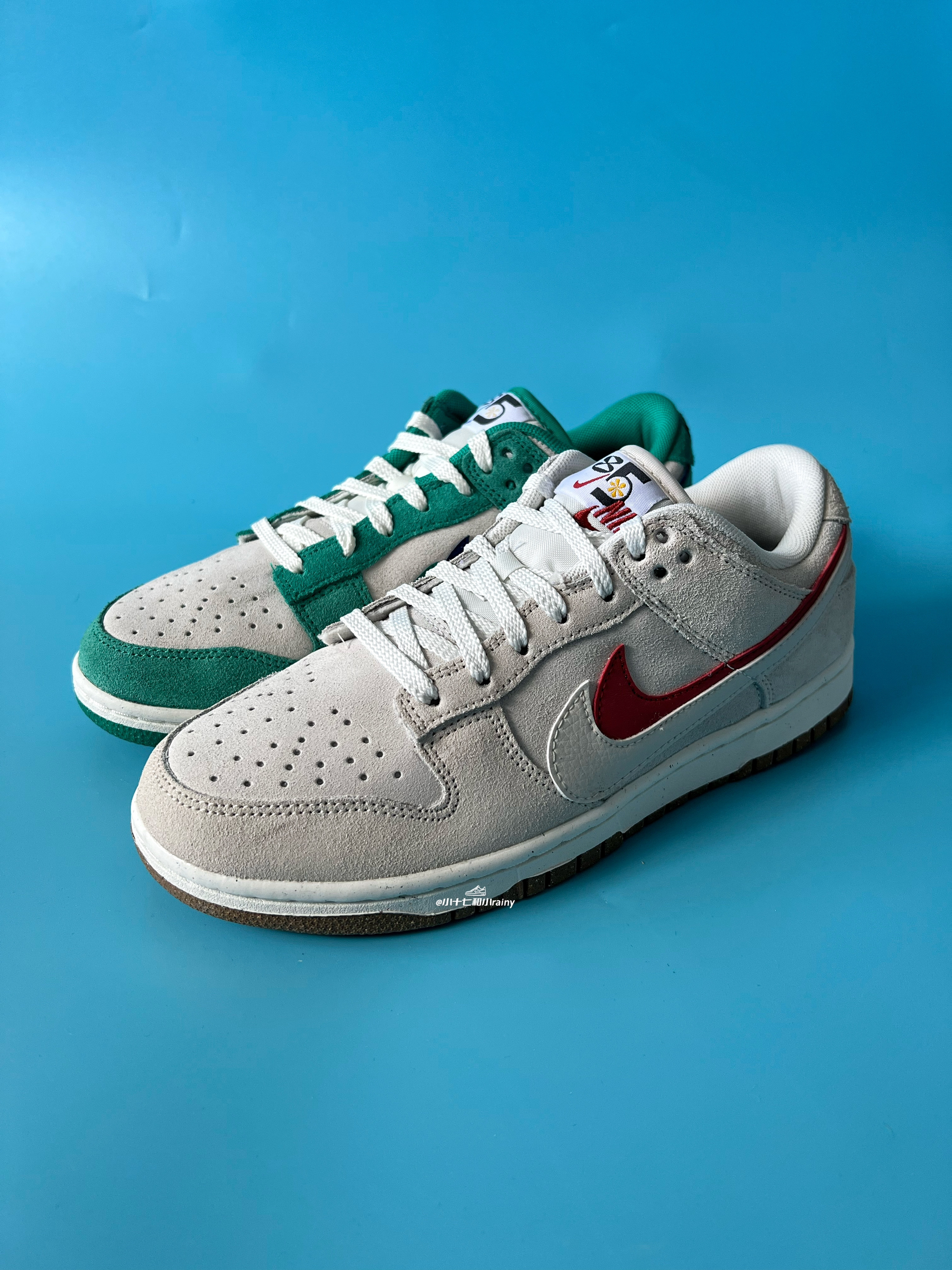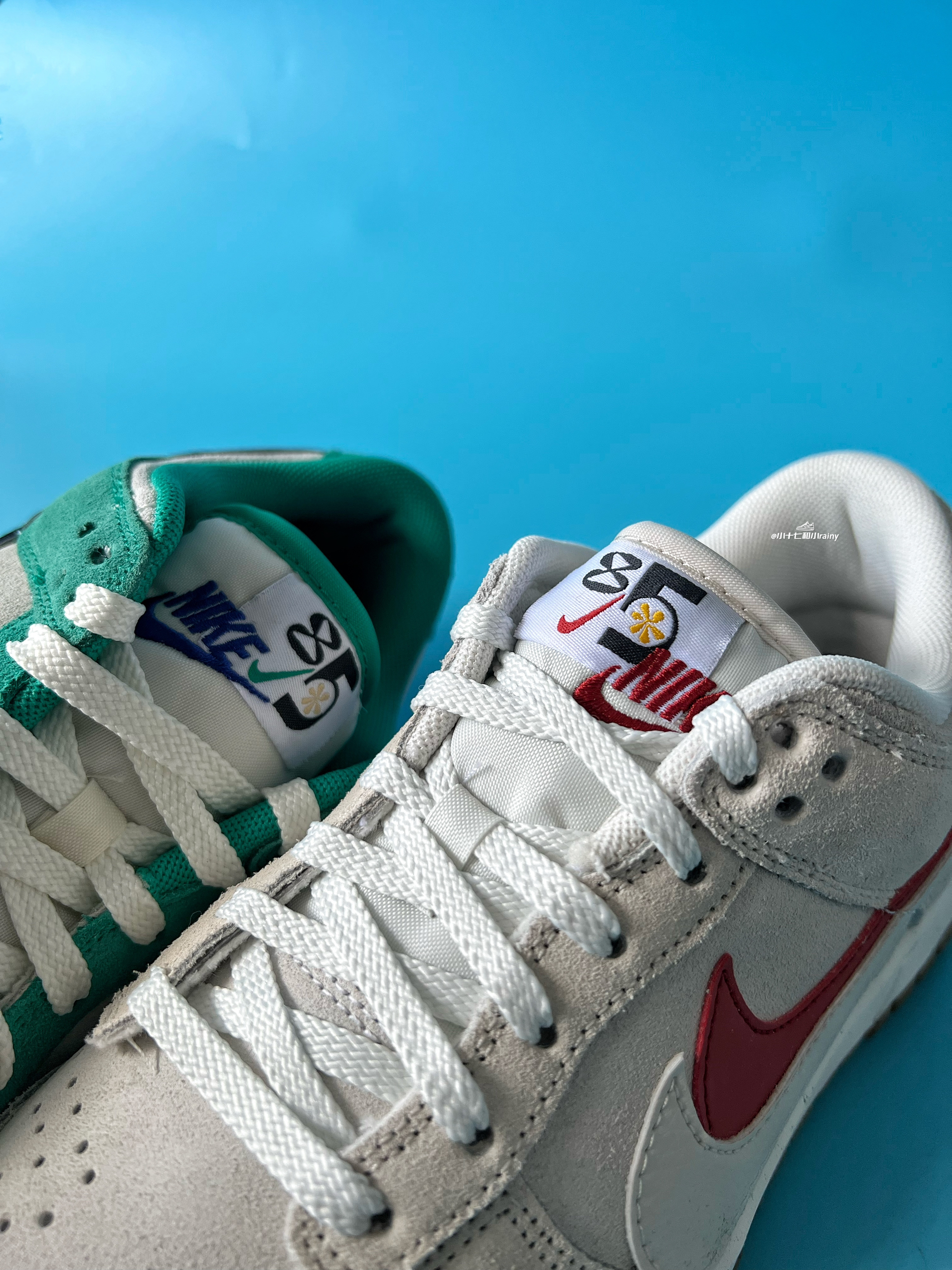 🤩推荐理由 近年来,Nike Dunk Low 不断以创新配色和多元设计为粉丝们带来惊喜。此次 Nike 为了纪念该鞋款最初的设计年份而推出了此款 Nike Dunk Low SE "85",并将经典鞋身、复古元素以及创新细节相融合,带来全新的视觉效果。 🥰实物质感 绿色款:此款 Nike Dunk Low SE "85" 采用浅灰色填充鞋面,鞋身框架则以绿色搭建,视觉效果清凉且独特;材质方面采...
