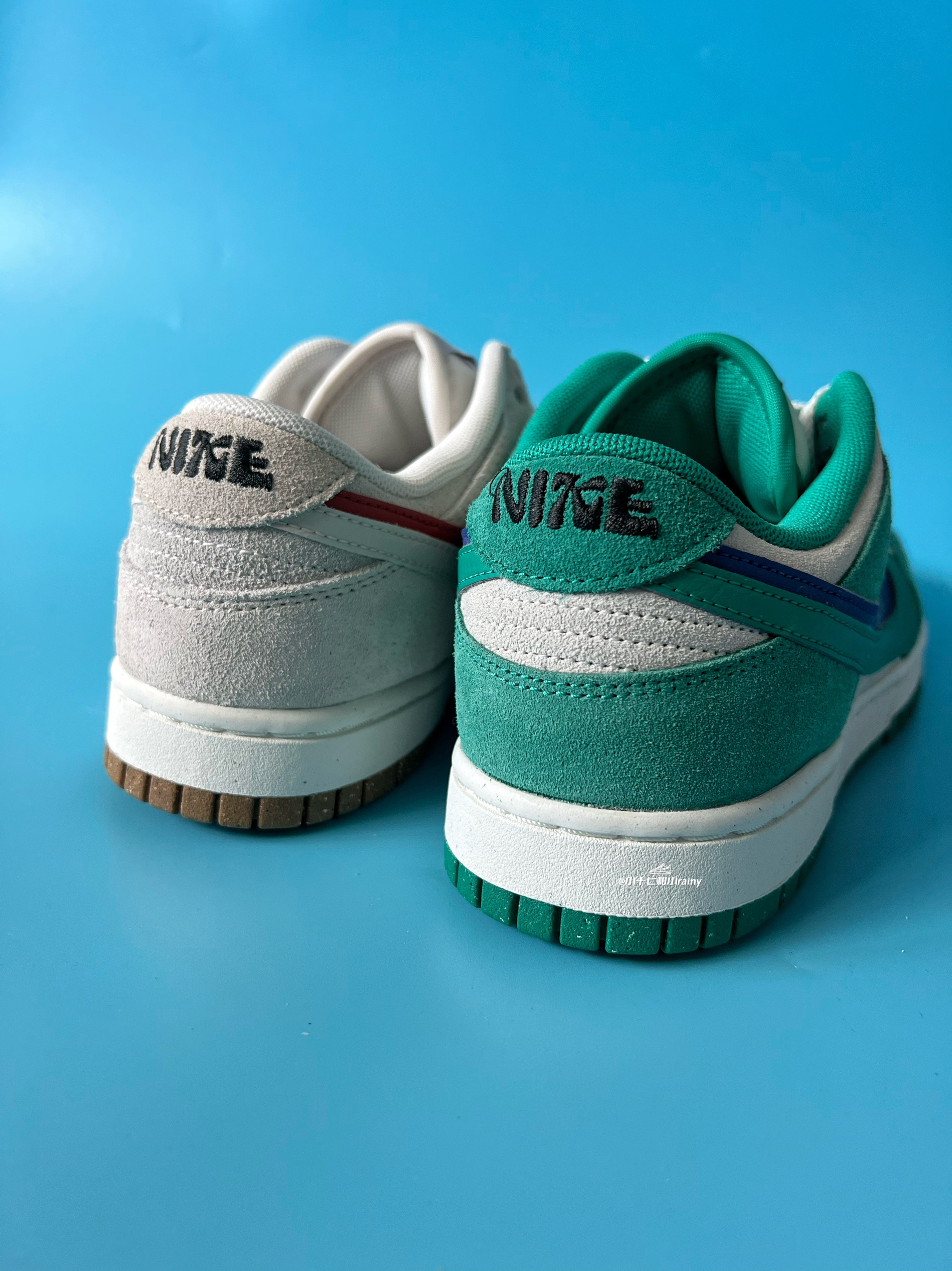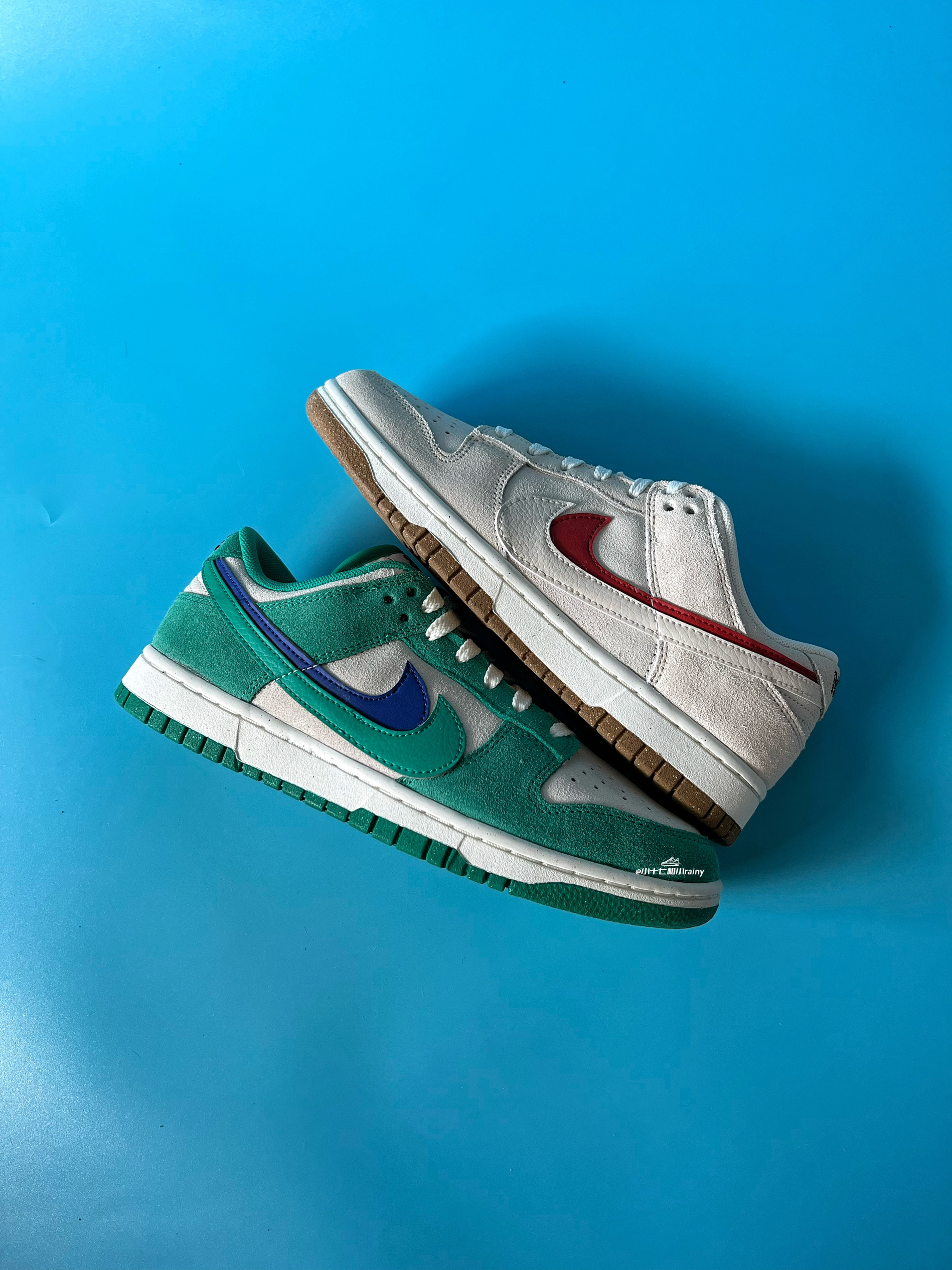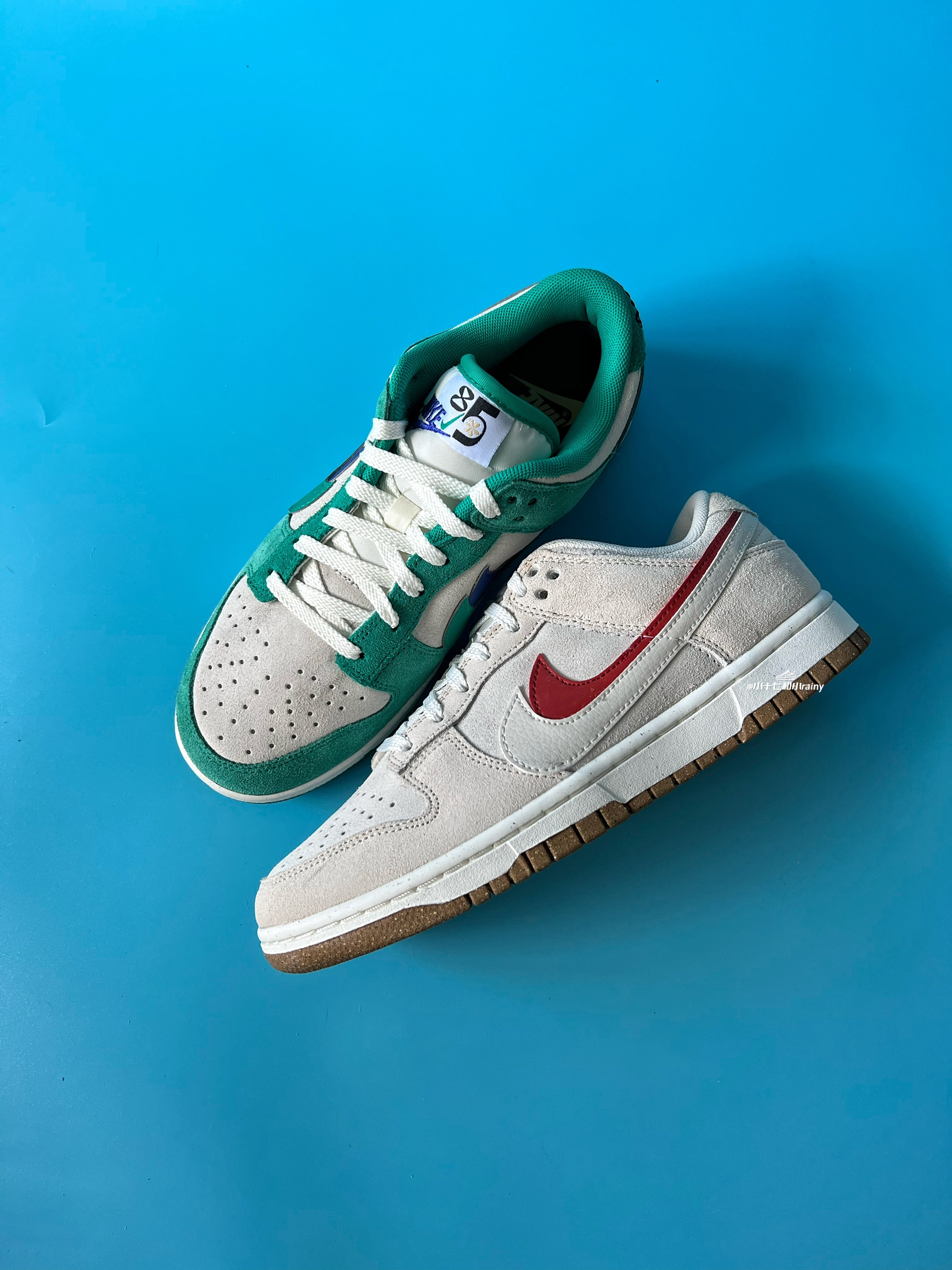 🤩推荐理由 近年来,Nike Dunk Low 不断以创新配色和多元设计为粉丝们带来惊喜。此次 Nike 为了纪念该鞋款最初的设计年份而推出了此款 Nike Dunk Low SE "85",并将经典鞋身、复古元素以及创新细节相融合,带来全新的视觉效果。 🥰实物质感 绿色款:此款 Nike Dunk Low SE "85" 采用浅灰色填充鞋面,鞋身框架则以绿色搭建,视觉效果清凉且独特;材质方面采...