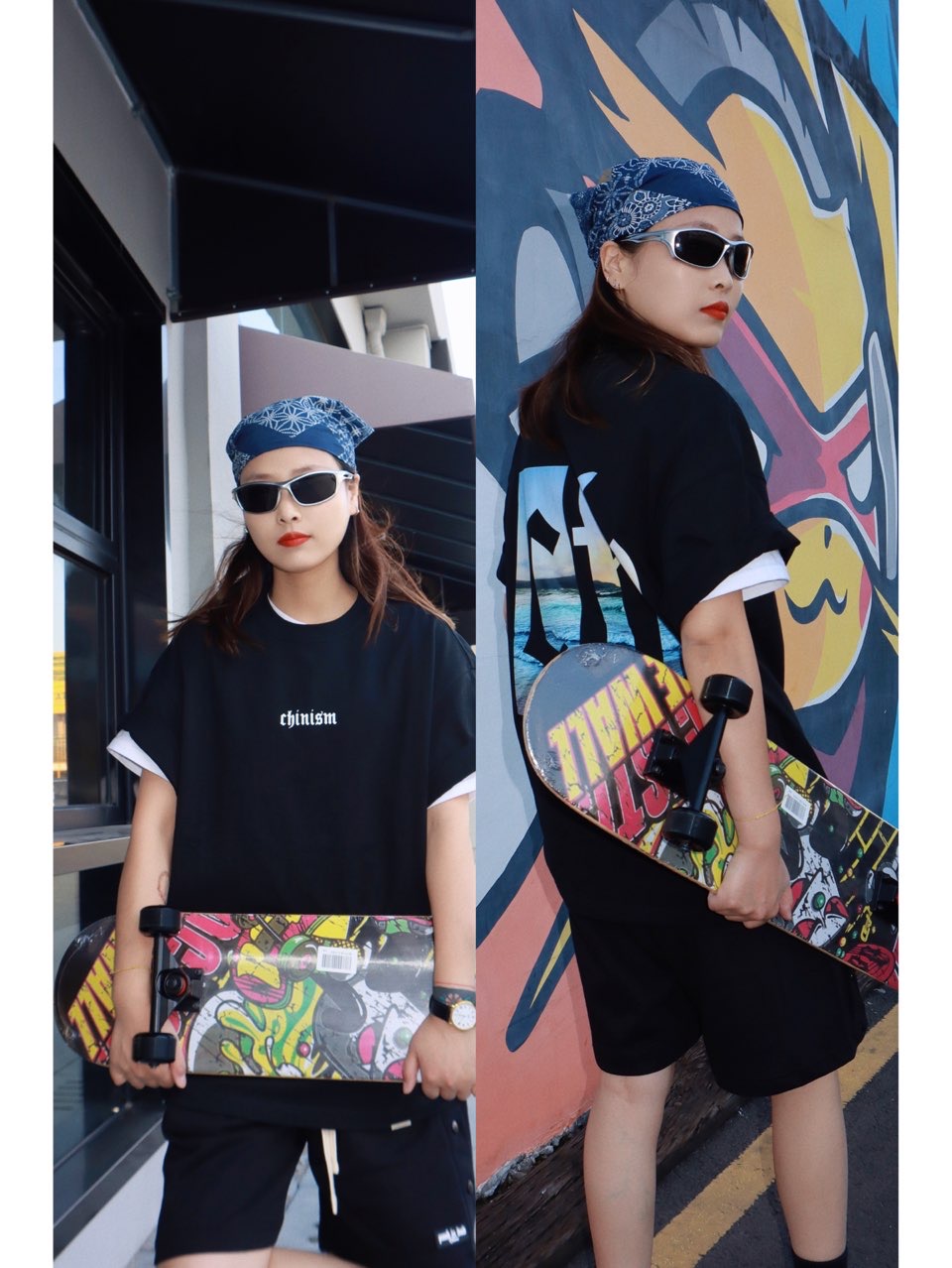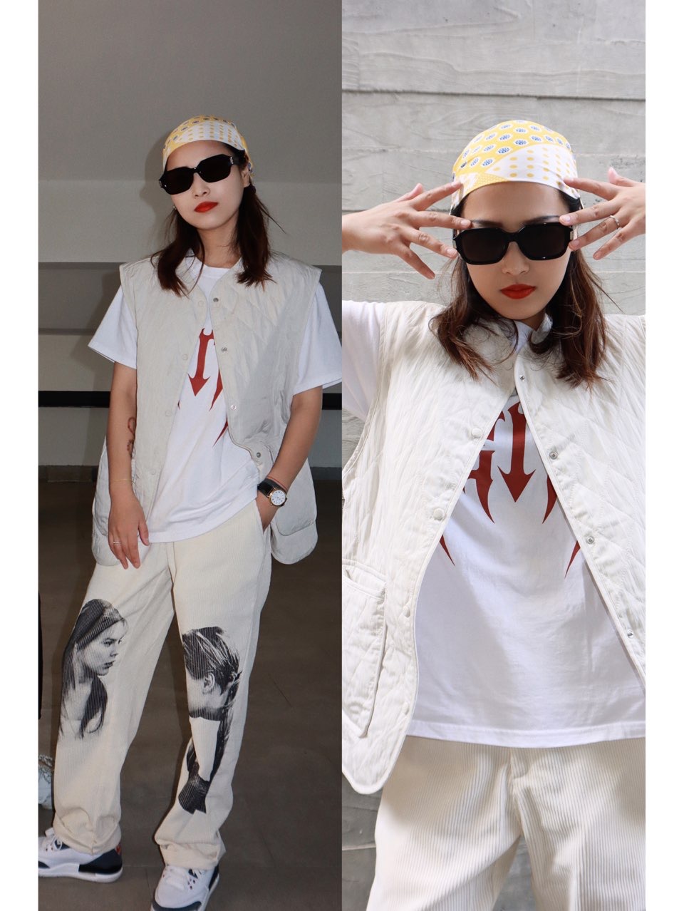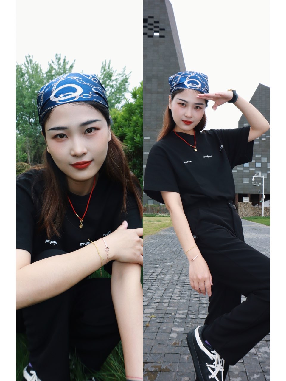 说实在的、嘻哈风格不是什么女生都能驾驭、就像辣妹风格一样、有时候真的比较局限~ _ 嘻哈风格就是裤子垮在腰上?破洞?大T恤?其实也不竟然、在我看来嘻哈风格更多的是可以展示比较个性的自己😄 _ 丝巾作为头饰是嘻哈穿搭里比较常用到的、T恤 运动裤 球鞋这些你都可以随意搭配✌🏻、只要能穿出你的个性就行~ _ 女生这样搭配一般没男生什么事了 哈哈哈哈😂