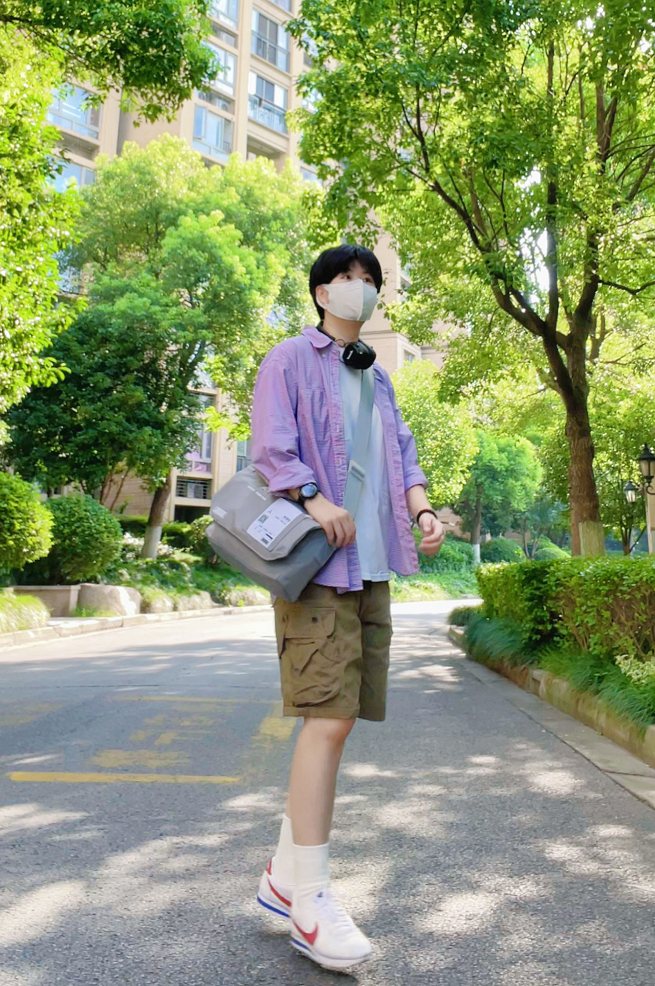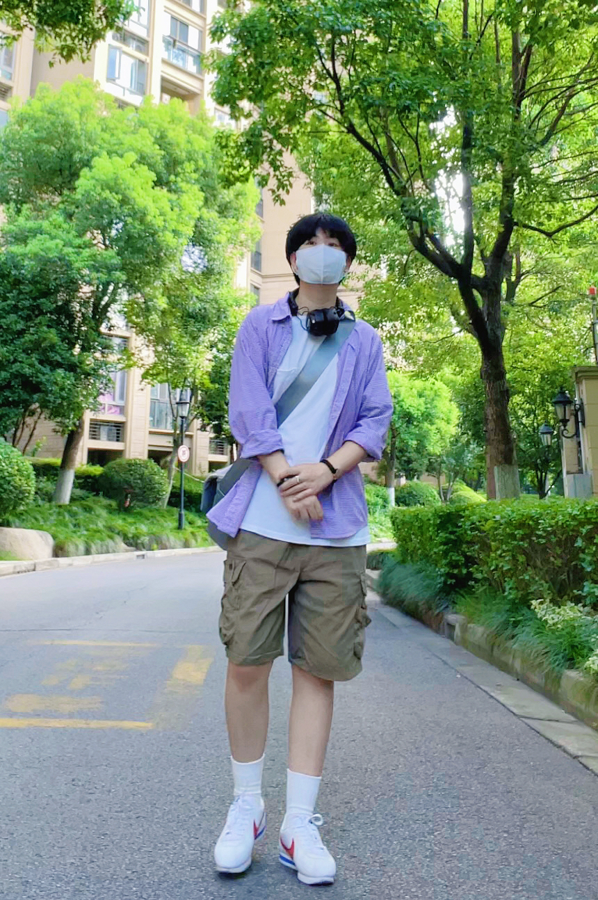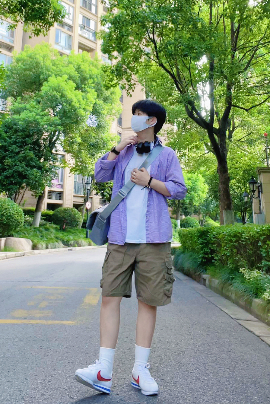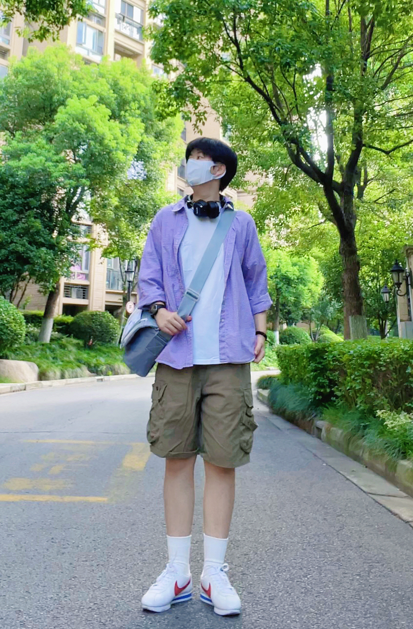 ✨今日搭配 紫色格子衬衫 棕色工装短裤 阿甘鞋白色 白色T恤打底 —————————————— ✨浅紫色的清新感很赞 搭配工装短裤的少年感很适合夏日和早秋 很适合出游旅行的一套look —————————————— ✨OOTD|每日穿搭|紫色格子衬衫穿搭|夏日男友风穿搭|早秋格子衬衫穿搭|暑期出游穿搭|棕色工装裤穿搭|白色T恤打底搭配|阿甘跑鞋搭配|少年感穿搭|日系休闲