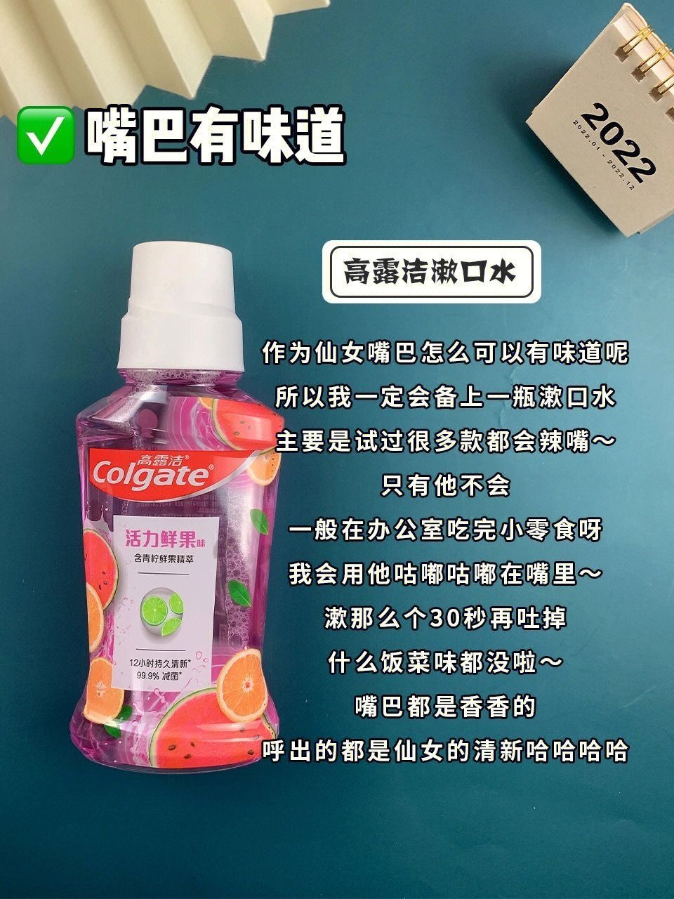 本篇笔记关联了femfresh/芳芯 女性私处清洗护理液 弱酸性 基础护理【洋甘菊】、高露洁 预防蛀牙0酒精除口臭牙渍清新口气含氟便携漱口水 正畸不刺激持久留香 鲜果薄荷等商品,为用户提供真实的使用体验和购买参考。