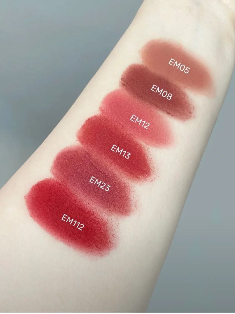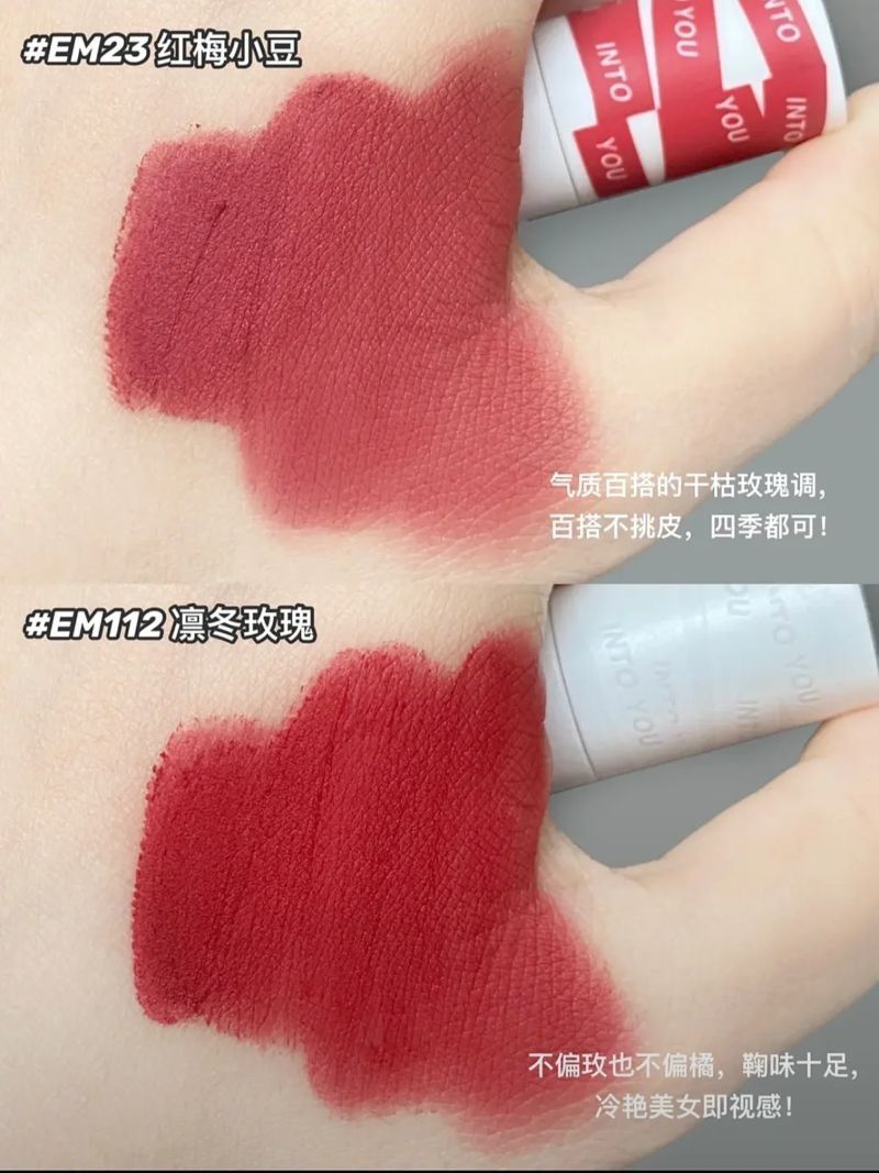 EM05浅茶杏色白桃奶茶色单涂叠涂都可以轻松驾驭,又纯又欲! EM08赤陶土色可盐可甜的土陶色,自带时髦气质,不挑皮!日常通勤都死死拿捏住! EM12糖渍草莓元气又可爱的桃粉色,涂上简直就是行走的水蜜桃,给人甜甜的感觉! EM13奶咖红梨日杂调的红梨色,气质显白,素颜涂也可! EM112凛冬玫瑰不偏玫调也不偏橘调,鞠味十足,冷艳美女即视感!#学生党平价口红 EM23红梅小豆气质百搭的干枯玫瑰调,百...