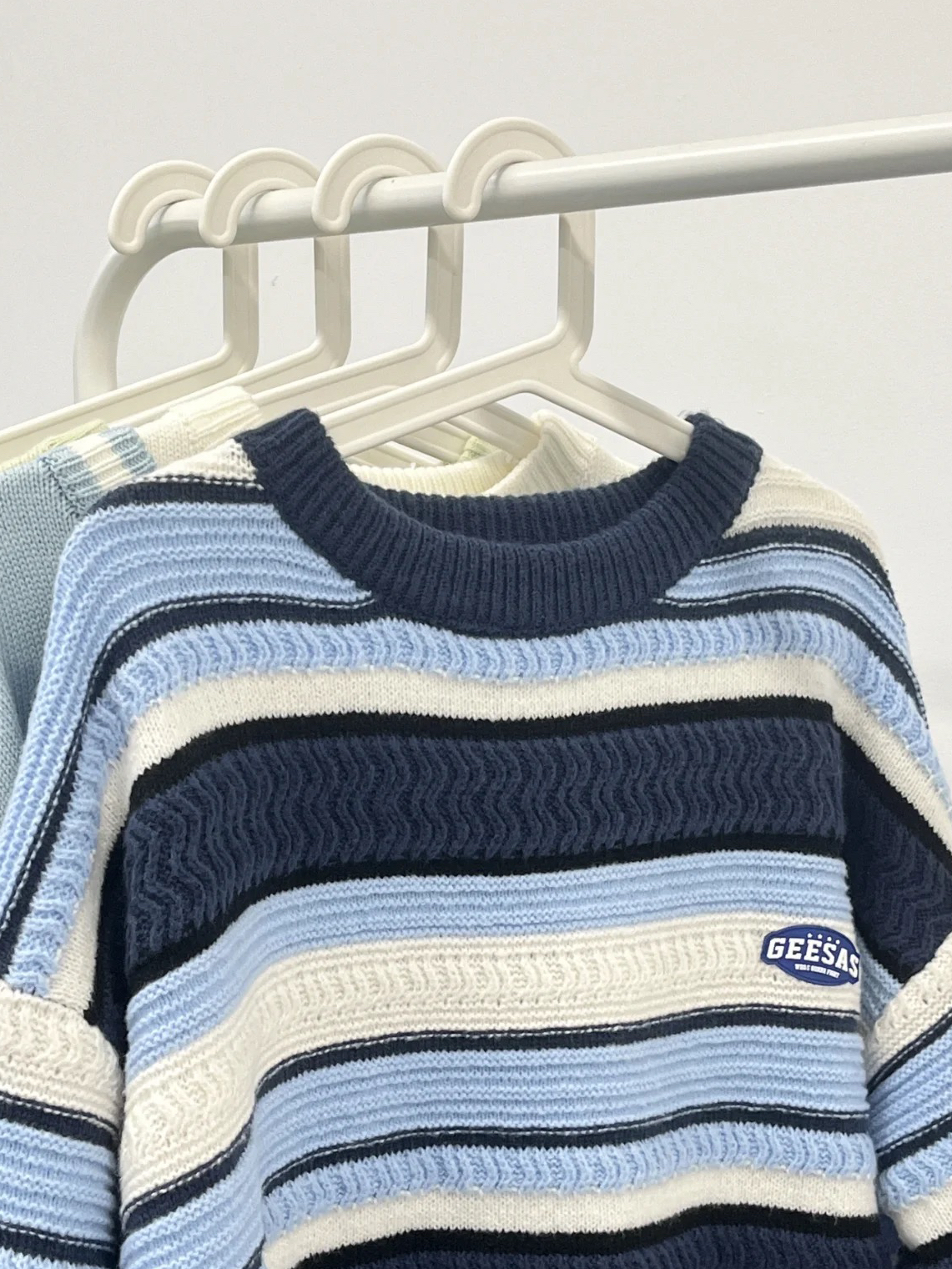 元气活力少年感拉满!! 蓝白条纹真的很好看! 宽松立体很遮肉!! 提前感受秋冬了姐妹们! 毛衣显瘦穿搭ootd秋冬穿搭