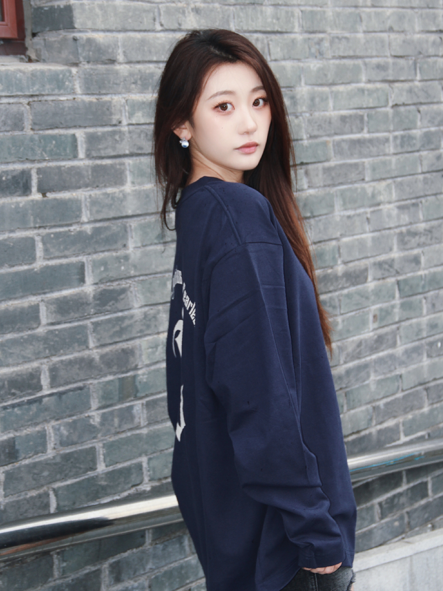 这件卫衣真的很好看呀,超级显白的有没有。oversize的版型很适合喜欢休闲风女生,上身一点也不垮~ 藏青色的,经典百搭色,英文印花很有复古感。下面搭配牛仔短裤,简单大方,还有点复古潮酷风。姐妹们,入手吧~ (图片来自网络,侵删)