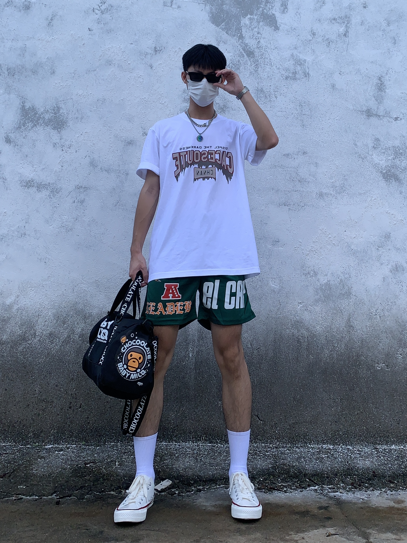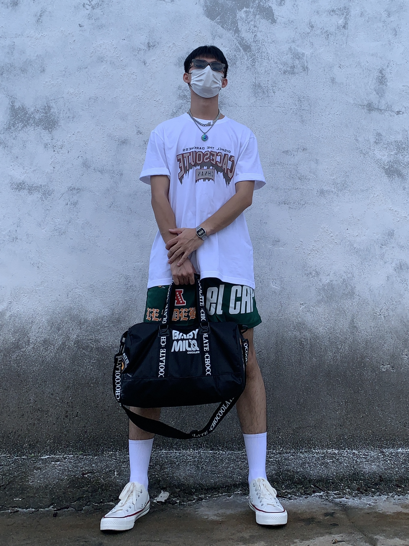 👕:朝南工作室 🩳:FOG复线店 👟:NIKE Daybreak- Types SE 📿:KANASI ⌚️:CASIO 👜:bape