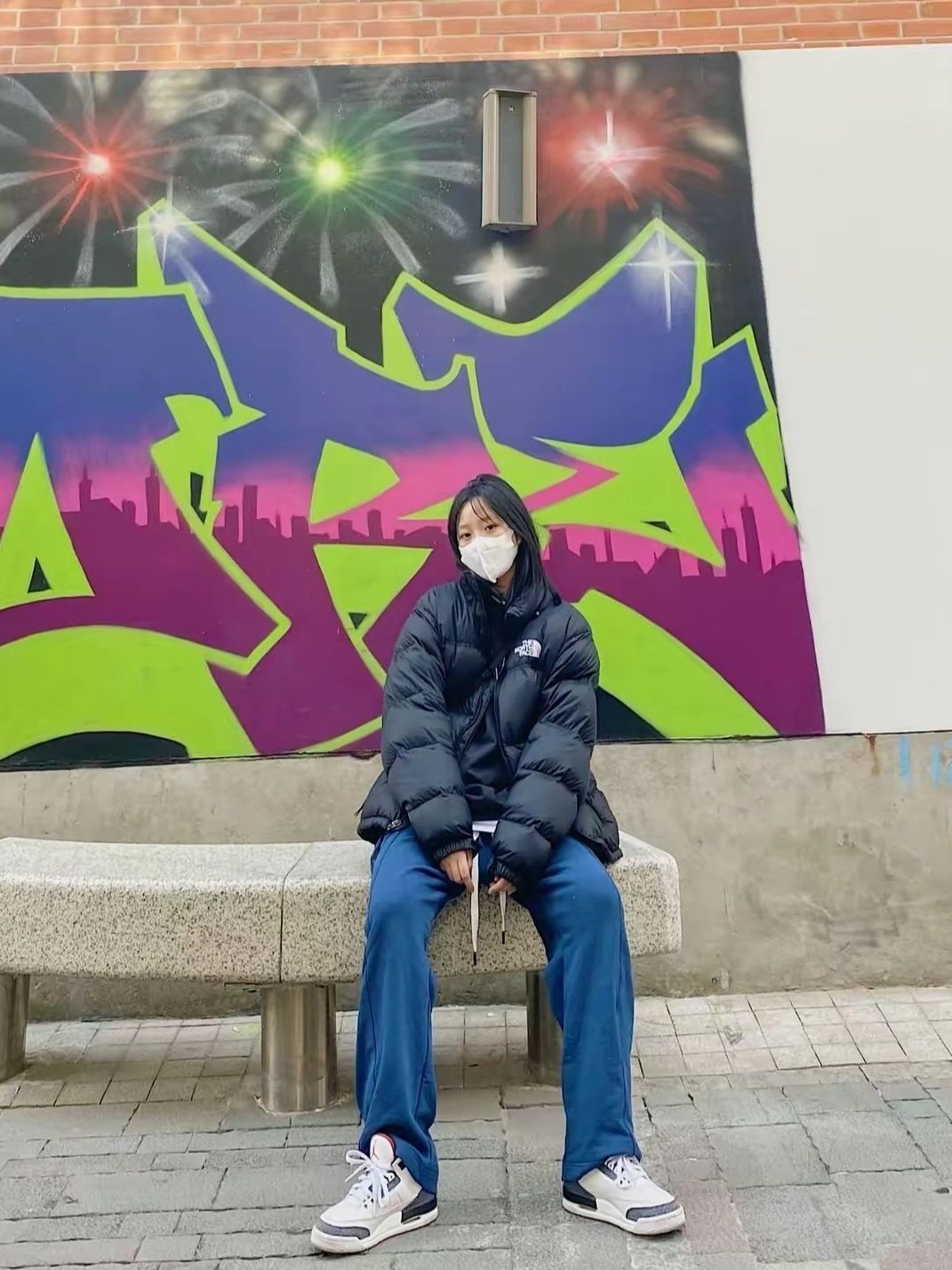 💛冬季日常就是要注重层次感哈,运用不同的单品叠穿来达到不一样的感觉😉 💛look:北面短款羽绒服黑色➕黑色圆领卫衣➕蓝色运动裤 💛这件羽绒服给我的第一印象就非常奈斯,整体的剪裁非常到位,微落肩版型,不显壮的噢😌再看这个充绒量也很足,冬季保暖💯没问题啦~内搭黑色卫衣增加整体层次感,下装一条深蓝色休闲裤,满满复古味儿🏌,jio上的鞋子就选浅色的哈,这样整体的色调才会更统一🙈