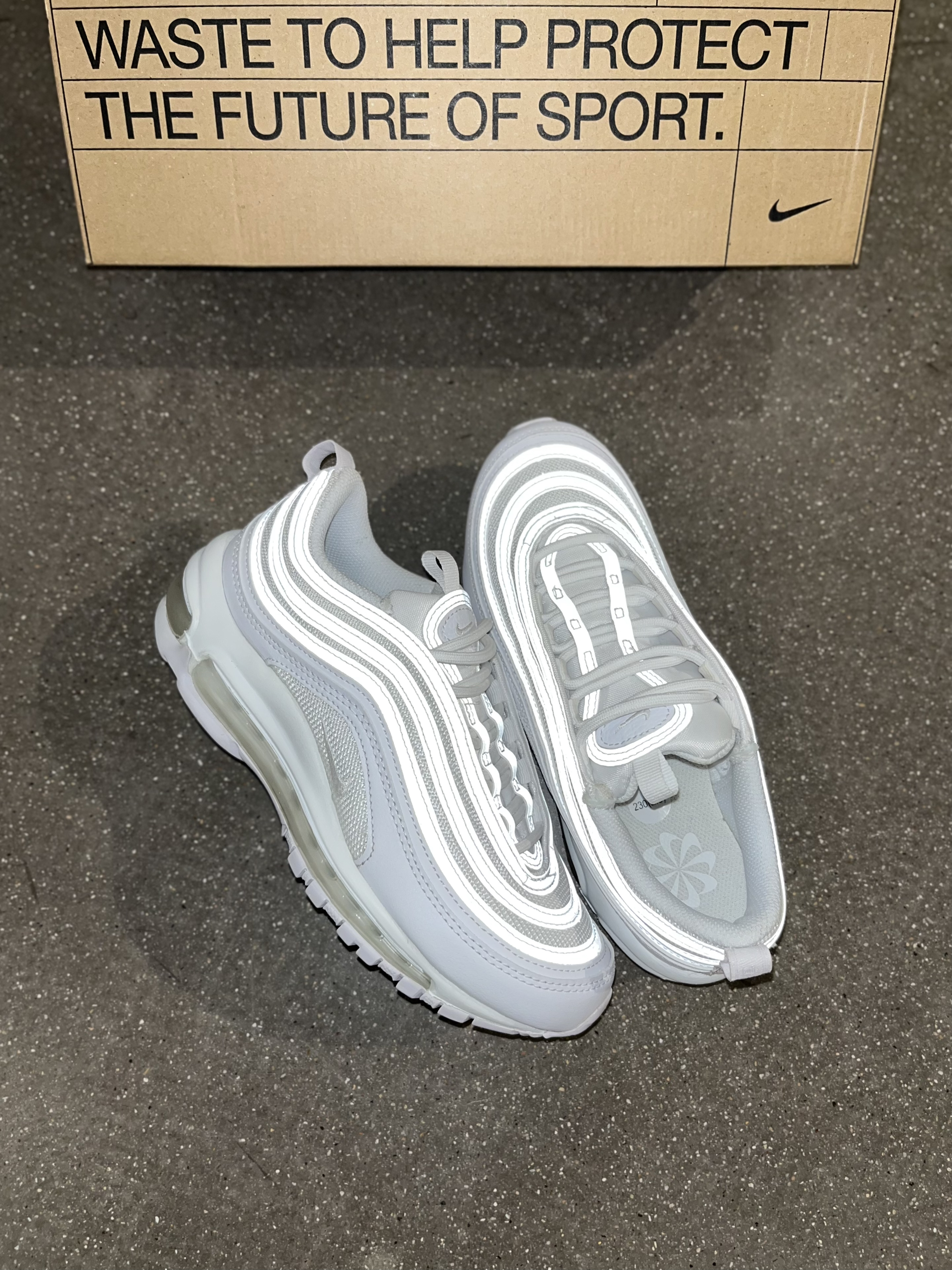 🔥Air Max 97子弹头纯白,人气很高的Air Max气垫鞋款,虽然脚感不是那么出众,但经典耐看并且百搭的鞋型,使得它可以稳居畅销榜单。 👟Nike Air Max 97 复古休闲跑步鞋 女款 纯白 可回收材料 🚄经典波浪纹流水线条,从日本高速列车中汲取灵感,也被大家亲切叫做“子弹头”。 📸纯白色的鞋面,带有炫酷的3M反光效果,尤其是手机闪关灯或者强光照射下,这种材质打理的时候尽量少碰水。 ...