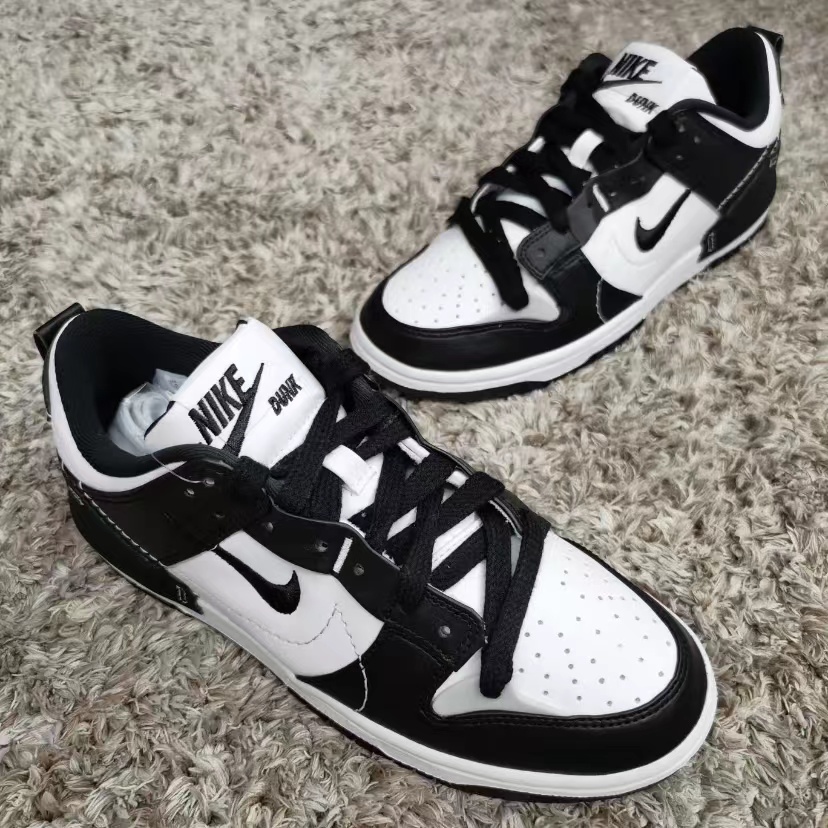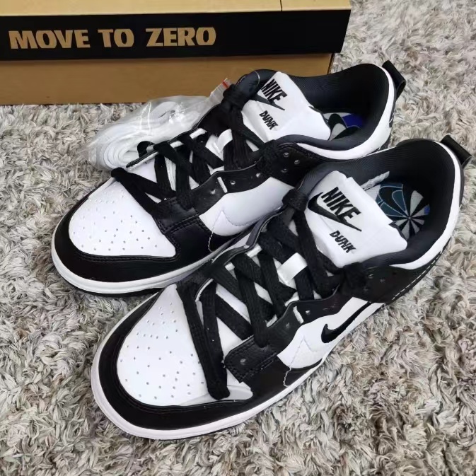 🎉Dunk Low Disrupt 2全新的Panda配色 这双Dunk Low Disrupt 2整体以经典「熊猫」配 色方案为蓝本,以白色皮革为基底,黑色表层加以 点缀,配色上与熊猫dunk并无不同。 不一样的在于鞋侧的双Swoosh 设计。侧身改用 黑色缝线勾边Swoosh,点缀黑色刺绣小号 Swoosh Logo,营造拼接解构设计风格 时尚百搭