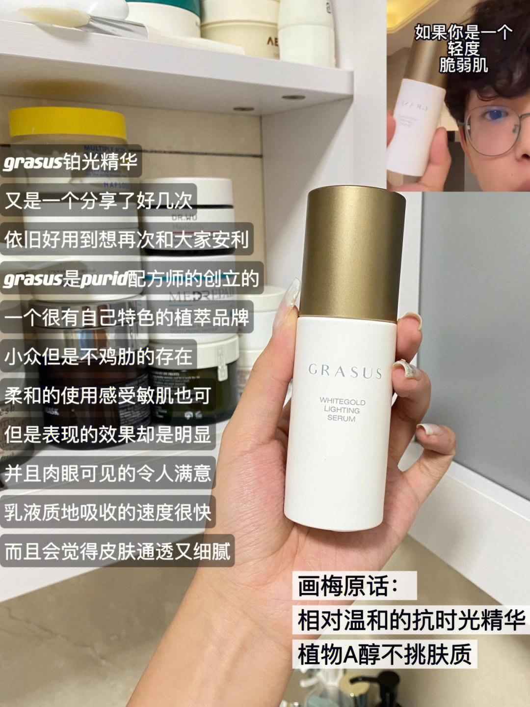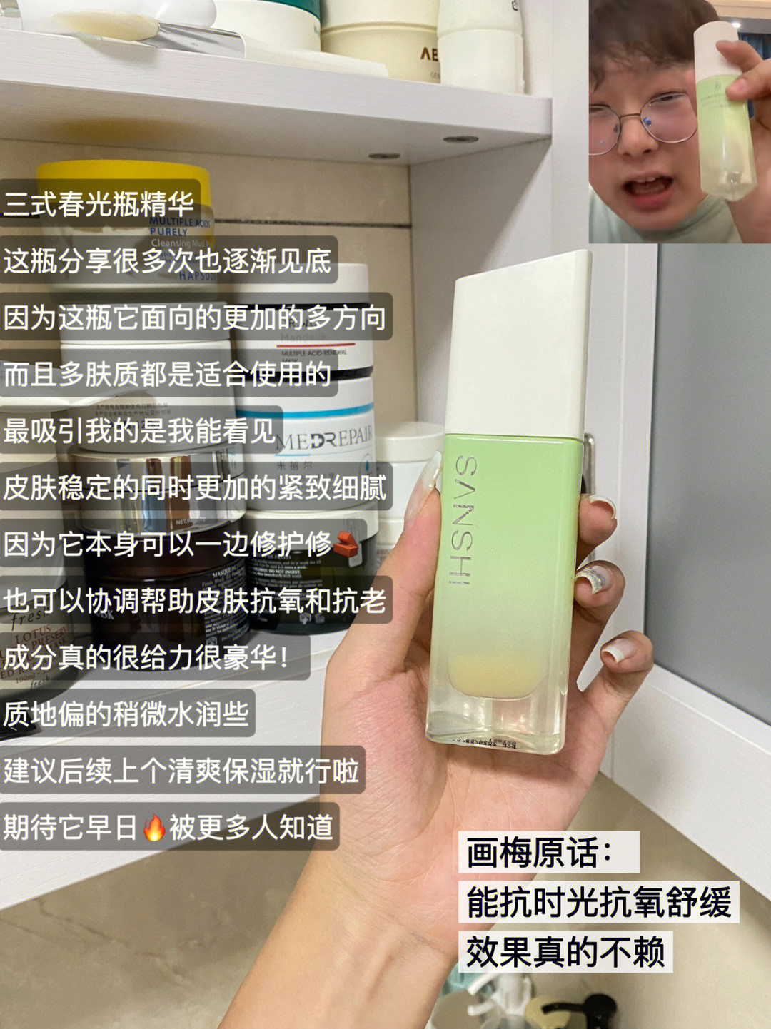 感谢🙏品牌方(安修泽、三式、奈玑子)的产品赞助 🍊又来了! 肤质参考:黄皮瑕疵皮,夏偏油皮,冬偏混干,长痘易敏感! 1⃣️安修泽油橄榄精华 2⃣️三式春光瓶精华 3⃣️奈玑子腮红BH-04 4⃣️欧莱雅金致防晒乳 5⃣️真丽斯喷雾 6⃣️grasus铂光精华 7⃣️皮宝修护霜 8⃣️vaa卸妆膏 #画梅推荐 #画梅 #博主推荐 #我的平价好物 #油痘肌大作战 #精华水 #防晒 #敏感...