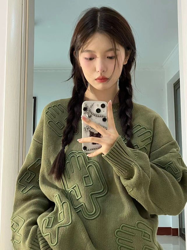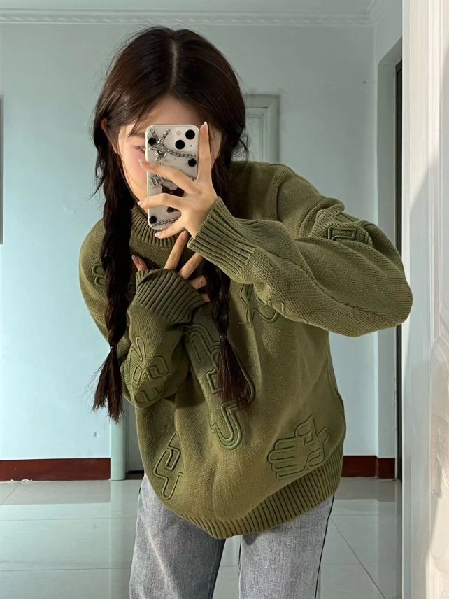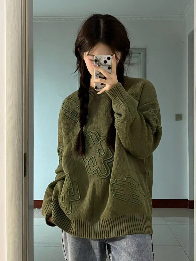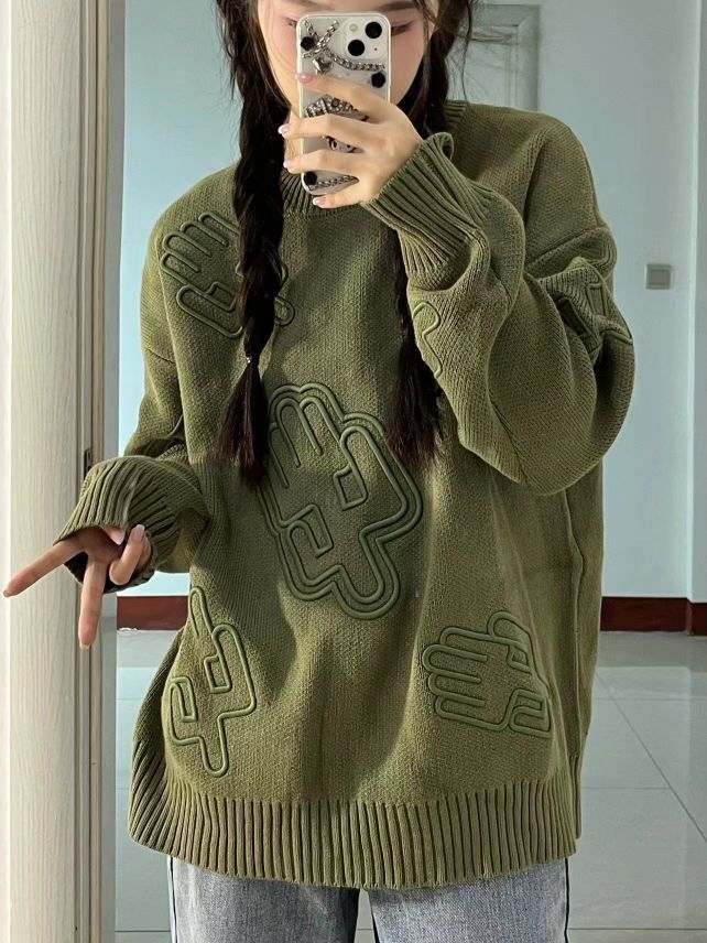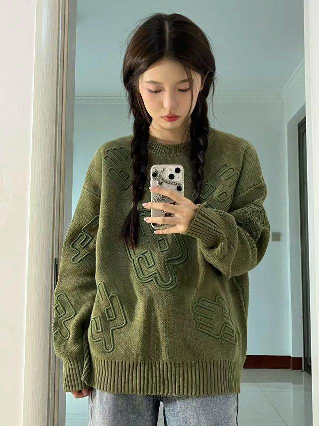 这件毛衣也太重工了吧 仙人掌🌵立体刺绣做工很精致 宽松的版型 很遮肉肉 秋冬不能错过的一件时髦单品