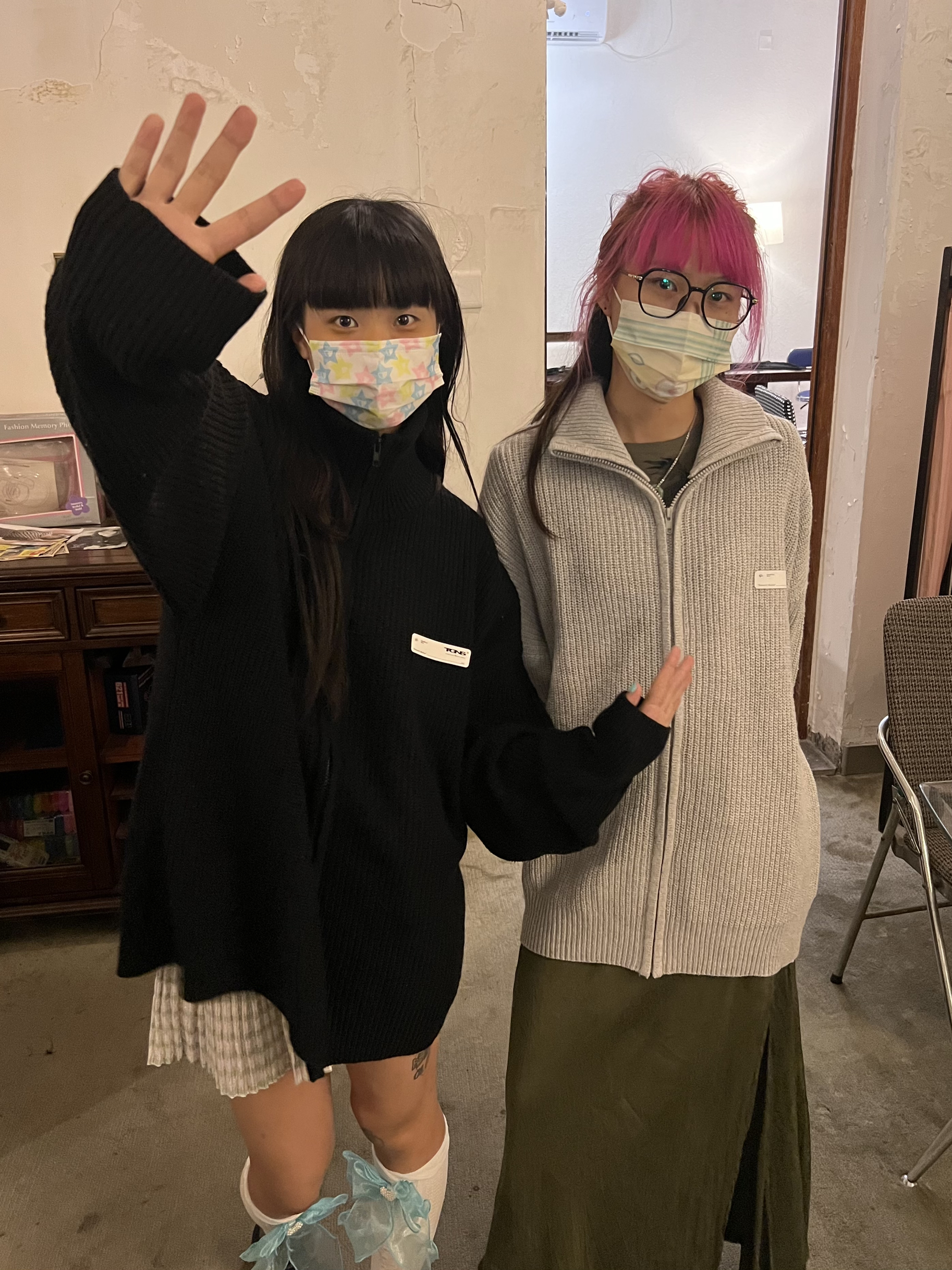 ✔️太喜欢和闺蜜一起穿同款啦!咱们俩都给这件毛衣好评,简约的设计百搭好搭,黑色和灰色又是不一样的感觉~一个温柔一个比较酷! ✔️黑色配了短裙,活泼元气,灰色款可搭配长裙或者长裤,毕竟灰色更温柔一些。黑色款还搭配了蝴蝶结丝带袜子,增添了不少趣味性,而灰色款搭配了长裙可以穿运动鞋,整体休闲又活力! 👔TGNS