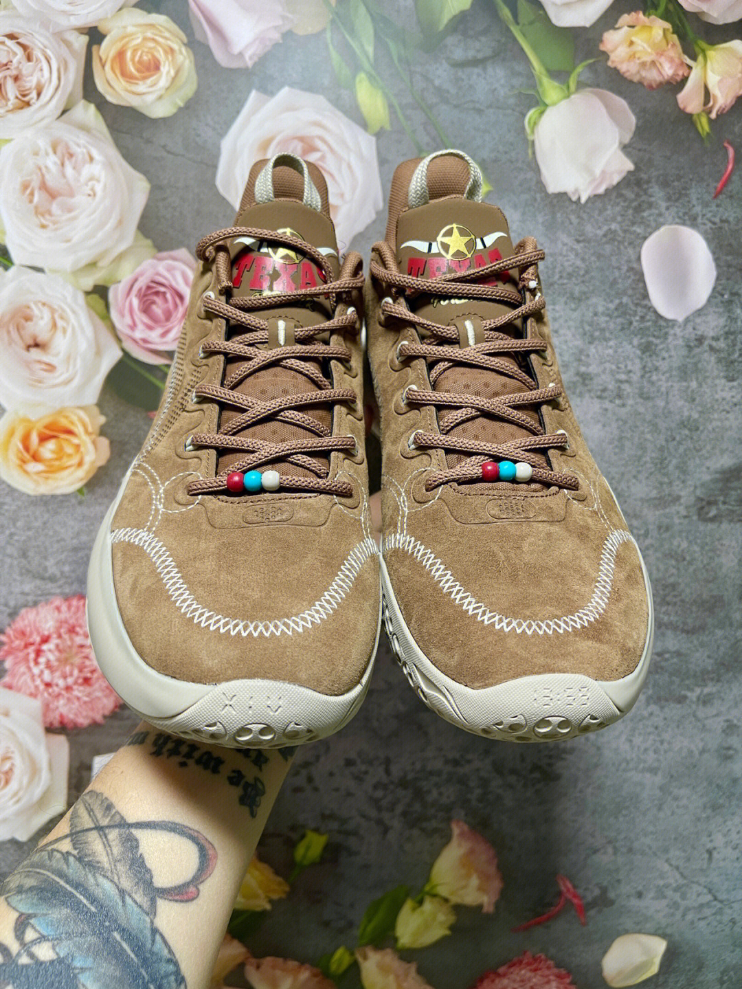 拿着最底层剧本出征,31年后逆风翻盘充满英雄主义的色彩 这是吉米·巴特勒的牛仔传奇也是驭帅XIV翼LOW家乡配色的灵感来源复古皮褐配色、鞋舌得克萨斯图案别出心裁的串珠装饰和白色缝线都是来自家乡狂野风情的热血演绎无论何时何地,追随牛仔精神的指引激励每一个场上的人!