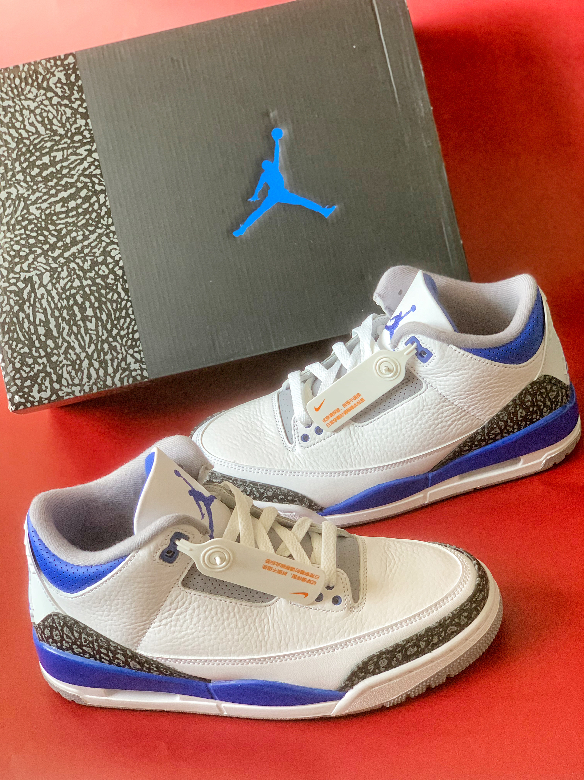 本篇笔记关联了Air Jordan 3 运动休闲鞋 潮流复古抓地支撑缓震合成革圆头 白色/水泥灰/赛车蓝等商品,为用户提供真实的使用体验和购买参考。