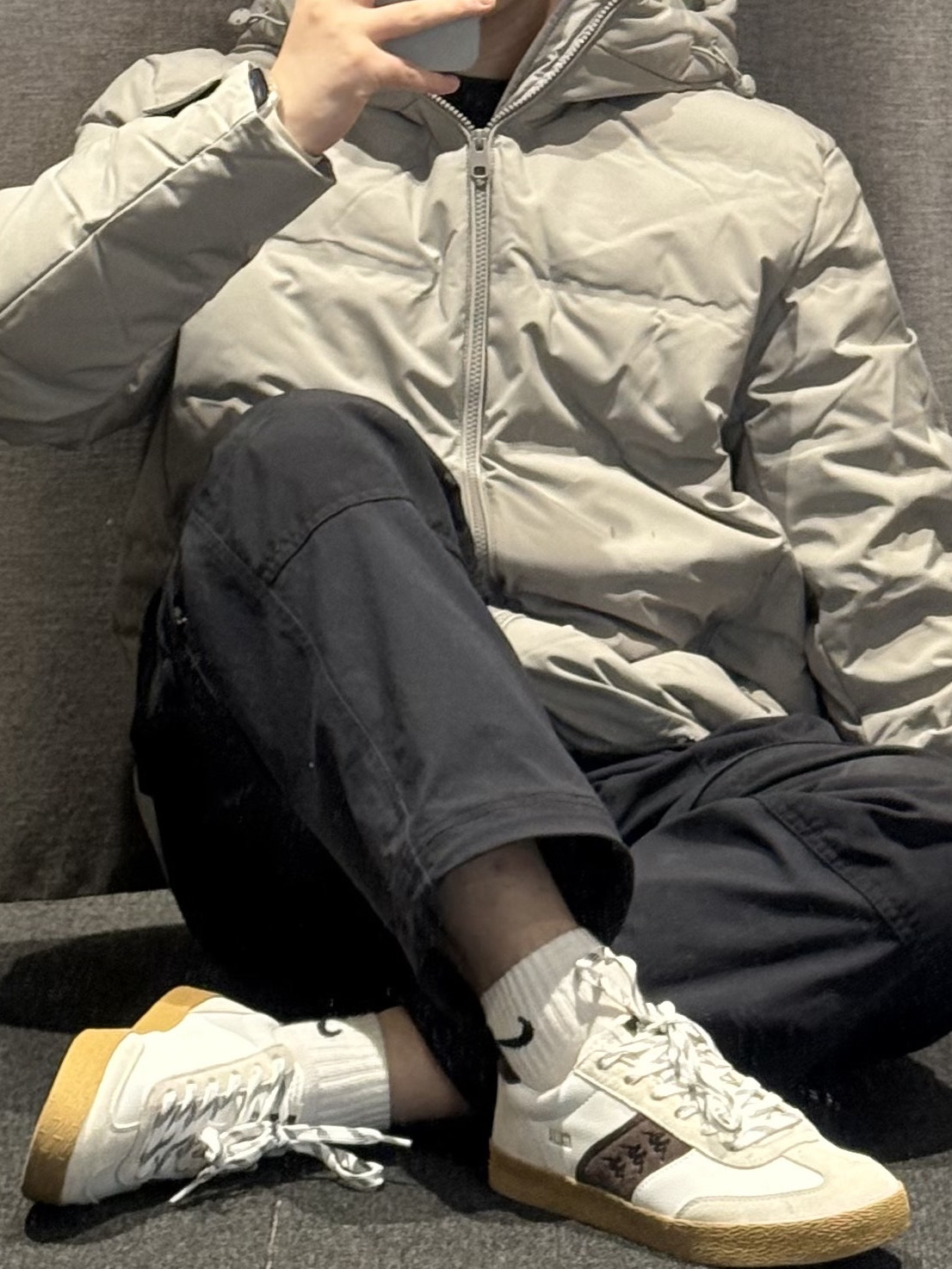 🧥穿搭公式:羽绒服+牛仔裤+空军一号 🌲这款羽绒服没有设计帽子,可以里面搭配一个连帽卫衣,冬天穿也不会感觉很冷 🌨里面填充的是鸭绒棉,超级保暖不厚重,也不会显得很胖