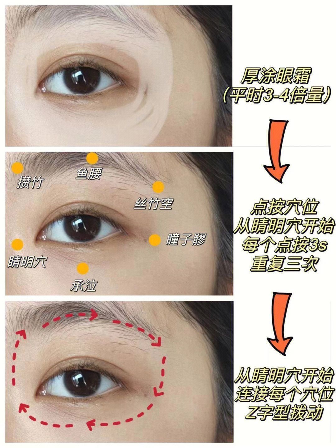 快来快来!黑眼圈姐妹们吃我安利!! 我被这个拨筋+眼霜,去黑眼圈的方法种草好久了 刚开始用软件测的时候黑眼圈就是重度 用这个方法跟着练了两个多月吧 黑眼圈真的淡了好多!!! 昨天测的时候是轻度了哈哈哈 准备工具:毛巾/洗脸巾、拨筋棒、雾屿森林眼霜 方法: 1.先热敷3-5min(打开眼周毛孔,放松眼周) 2.厚涂雾屿森林眼霜(大约是日常涂眼霜3-4倍的量,范围大一些) 3.用拨筋棒先轻轻按压穴位开...