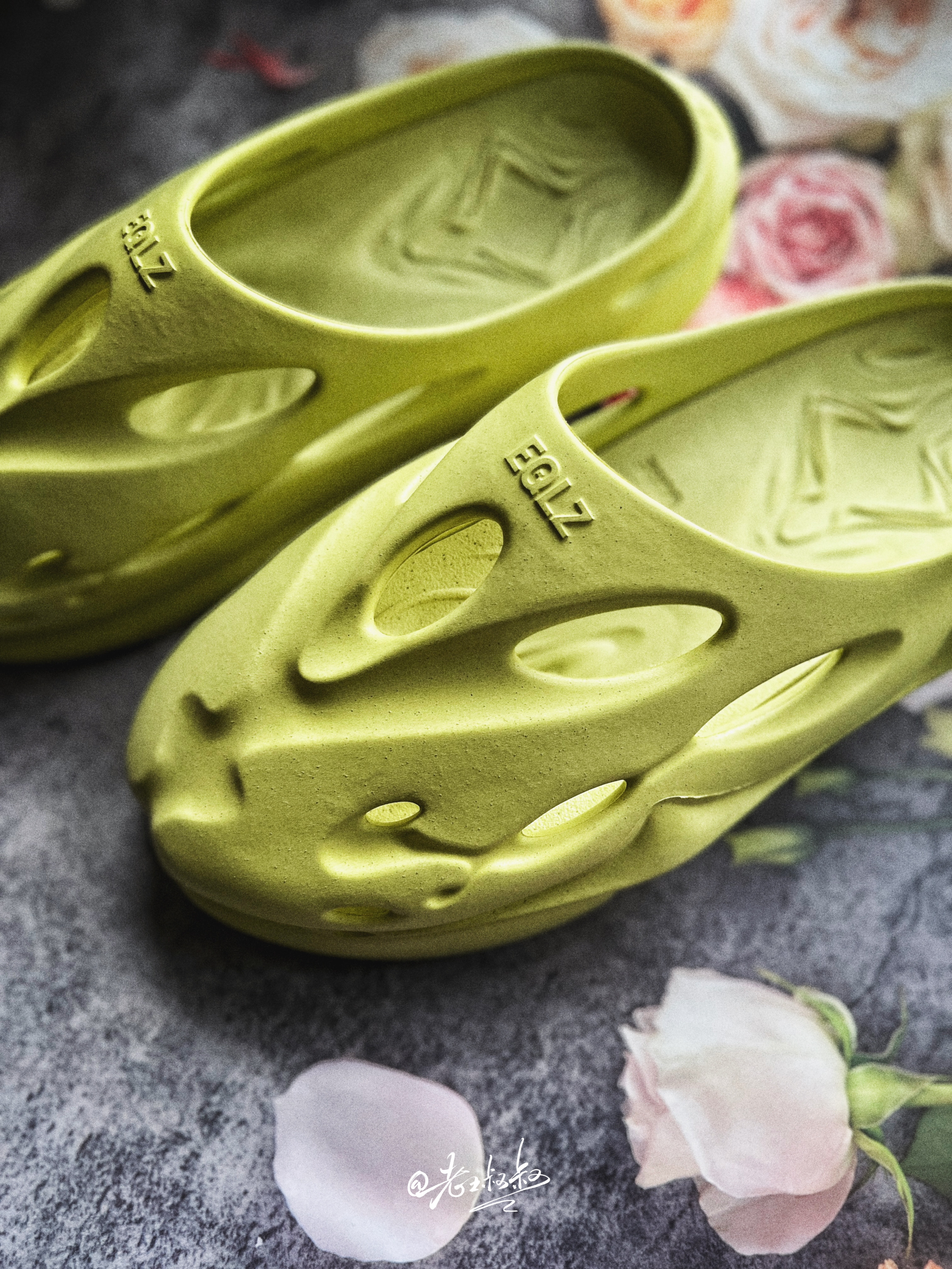 之前入手了EQLZ的#1100黑豹,几乎是我夏天上脚频率最高的一双,最近又入手了见月草这个配色,真的太清爽太好看了。1100的设计灵感是From Jungle,丛林中来,鞋子使用了有机咖啡渣混合材料,非常环保,同时加入香氛,搭配无胶水模块化的可拆卸中底,无论从颜值还是设计还是理念还是脚感,都觉得好的没的说。