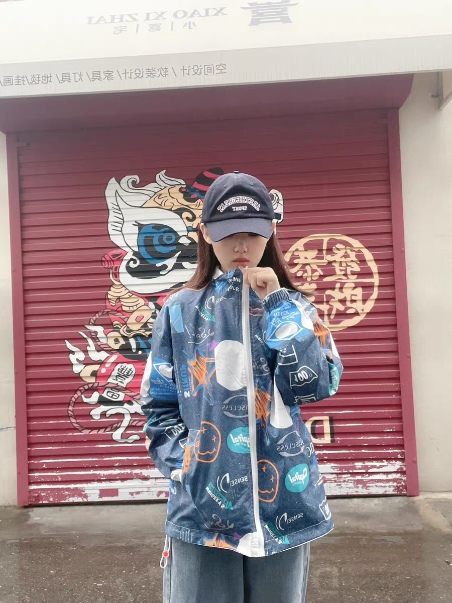 Hunting Area 2022AW 双面穿创意字母涂鸦满印薄款夹克外套👈这件夹克是可以双面穿的‼️ 一面是拼色印花设计,另一面是纯色设计,两面的图案都很 coot,撞风格的设计带来迥异的视觉层次感 全身采用的是梭织面料,质感厚重 更具时尚潮流感🆒尽显与众不同的格调与魅力,充满慵懒气息🌈 图源自网络侵删