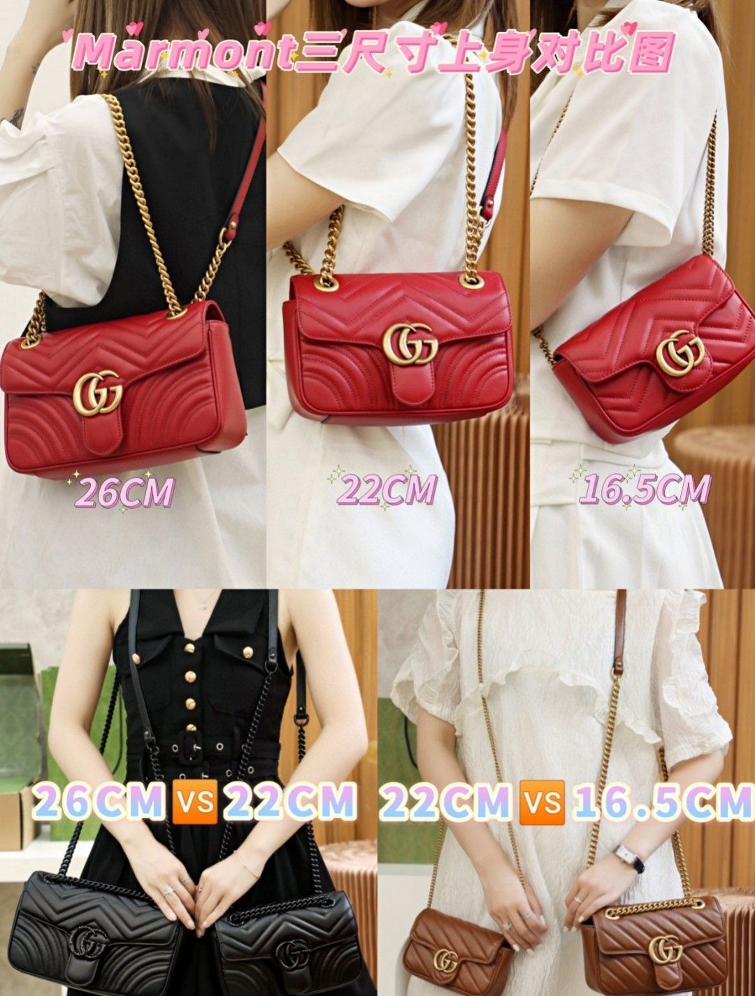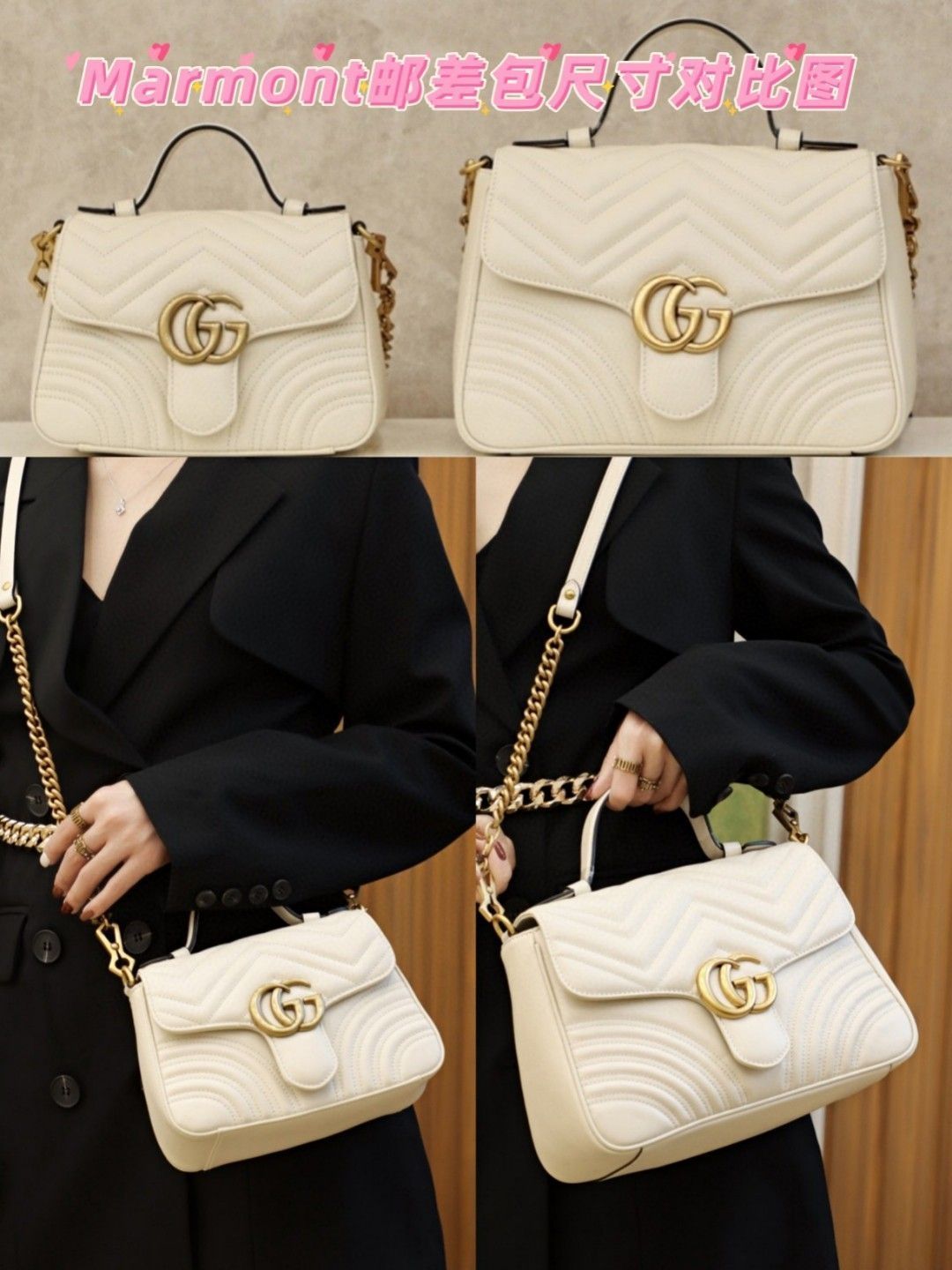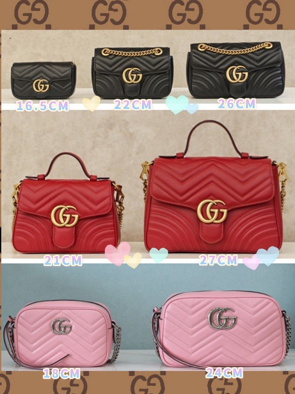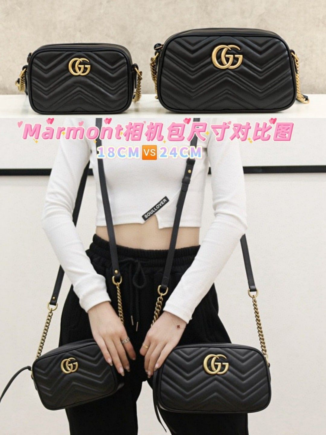 Marmont作为Gucci包包的常青藤 各种尺寸、颜色的单品很多 🌸链条包 大家熟知marmont应该都是从这只包开始的吧 正面是经典𝐆𝐆 背面是爱心设计 颜色很多 三个尺寸的对比图大家可以参考图二 🌸邮差包 外形都差不多 但是多了个手柄 所以它除了能单肩斜挎还可以手提 两个尺寸(图三)完全不同的感觉 大号更适合通勤 比较有气场 🌸相机包 无论款式还是实用性都很万能百搭 给人一种简单却又经典...