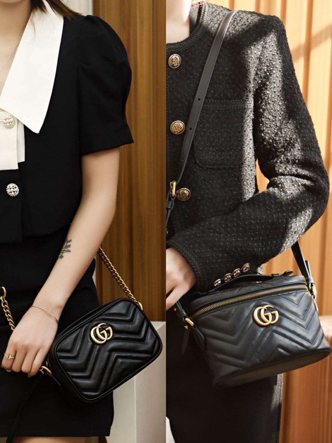 本篇笔记关联了Gucci/古驰 GG Marmont系列 中号 牛皮马蒙金标双G大logo绗缝做旧链条单肩斜挎包 黑色、Gucci GG Marmont 迷你 马蒙金标Logo绗缝亮片皮革抽绳开合水桶包链条单肩斜挎包 白色、Gucci GG Marmont 小号 马蒙金标Logo绗缝滚边皮革链条老花图案做旧相机包单肩斜挎包 黑色 等商品,为用户提供真实的使用体验和购买参考。