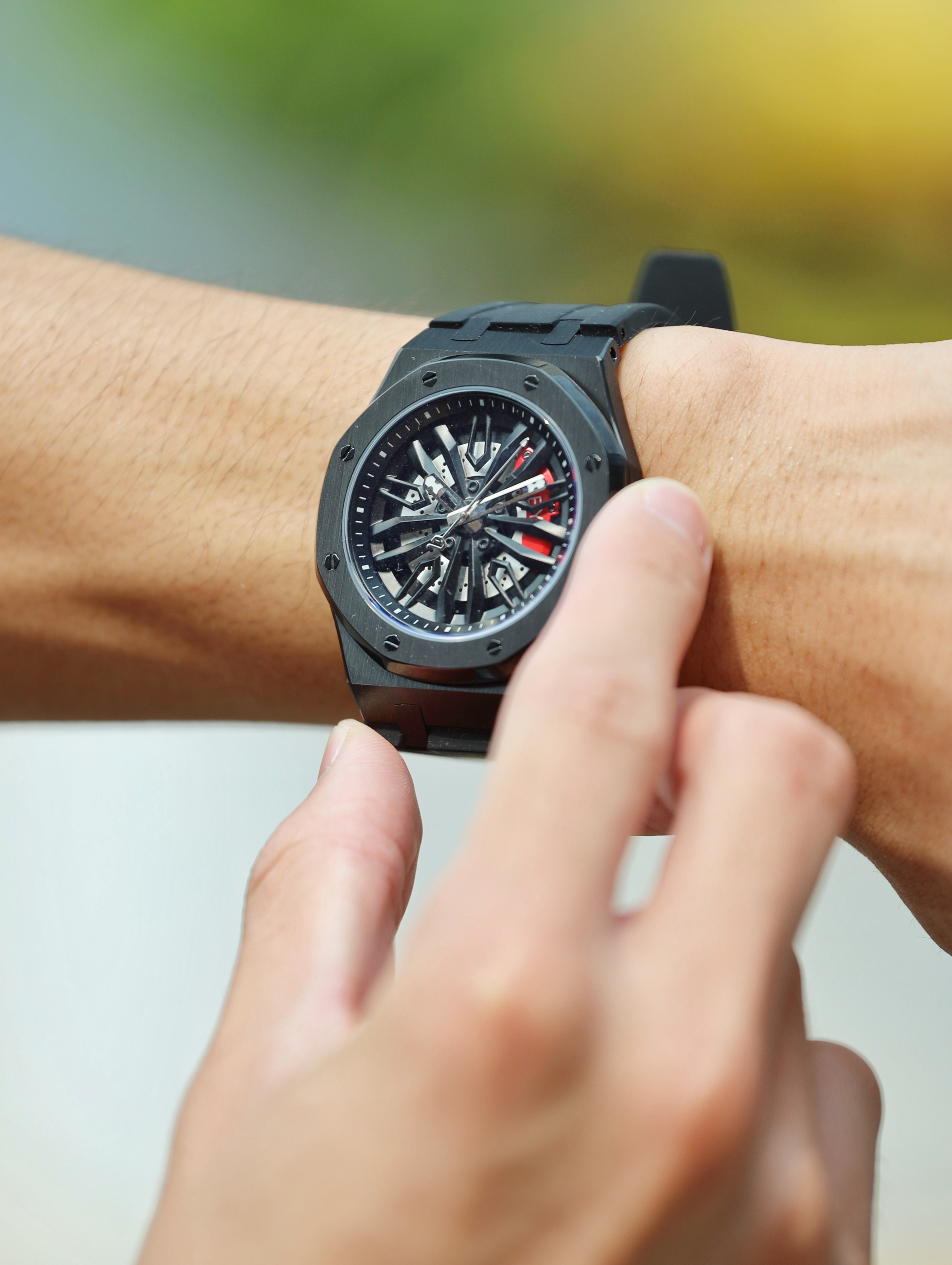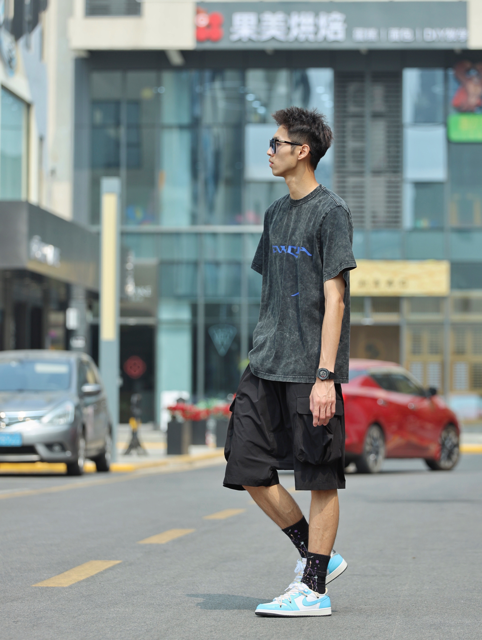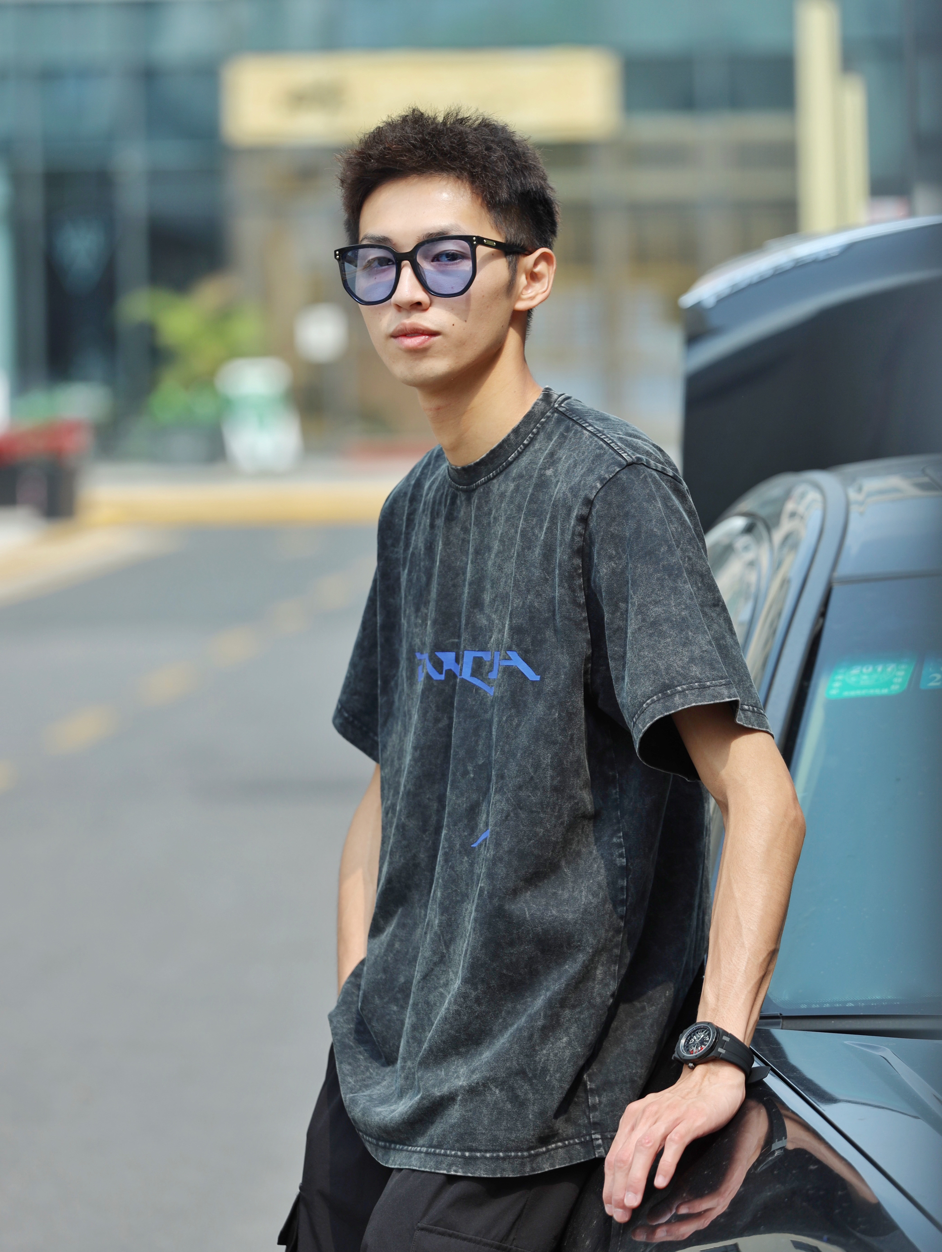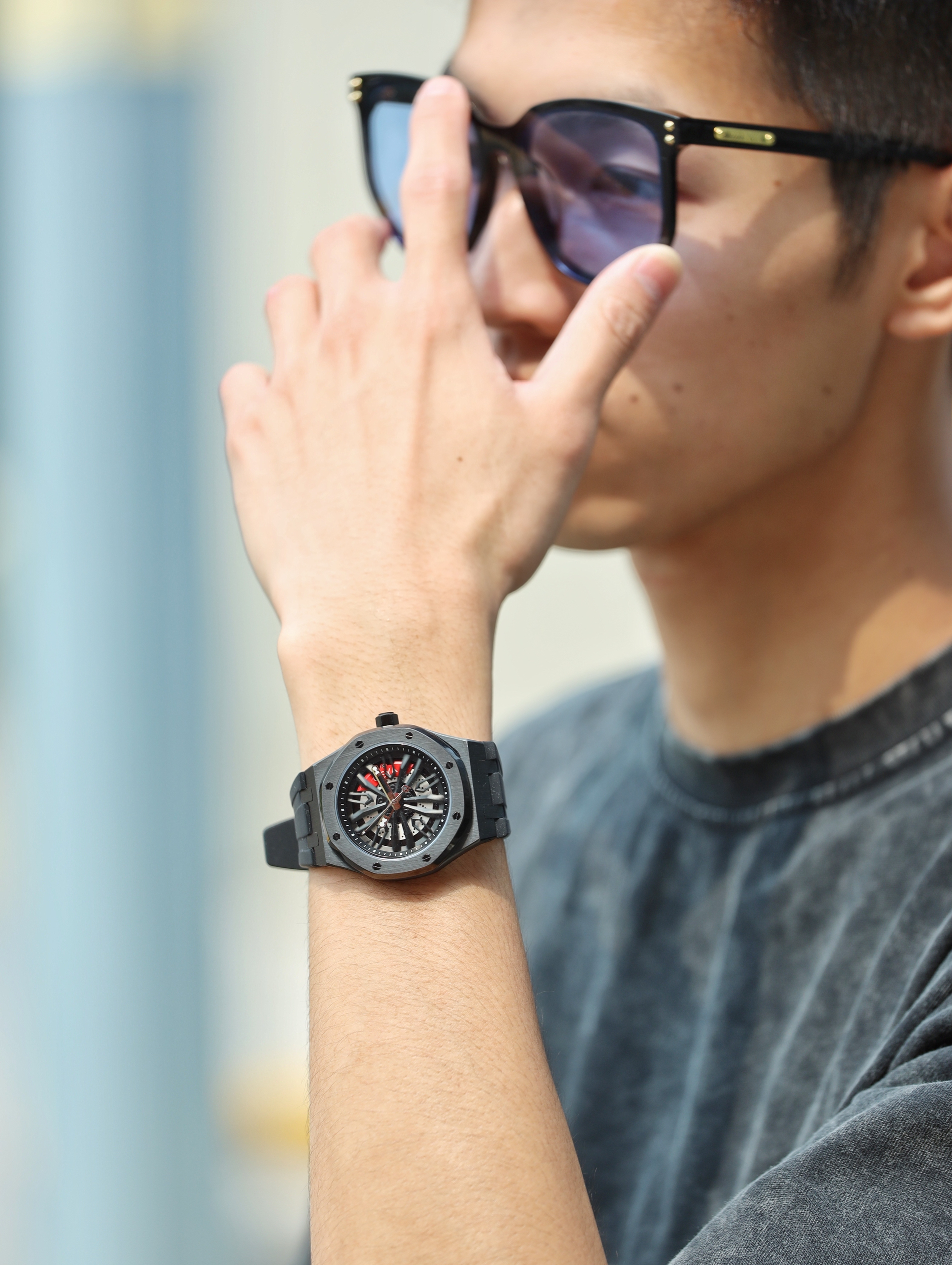 今天搭配了一套暗黑色系的街头风穿搭!首先衣服方面选择了一件炒漂徽标印花设计的T恤,这种设计有一点复古做旧的feel,蛮有街头味。裤子选择了一条黑色的垮型工装六分裤来增添街头feel!今天也选择了一款国潮手表来为今日穿搭点缀,这是一只来自格雅品牌的全自动机械表,这款国潮手表正反两面都采用了立体镂空雕刻的设计,很有高级感,颜色上也和今天的穿搭非常配,格雅男表可以放心去冲!
