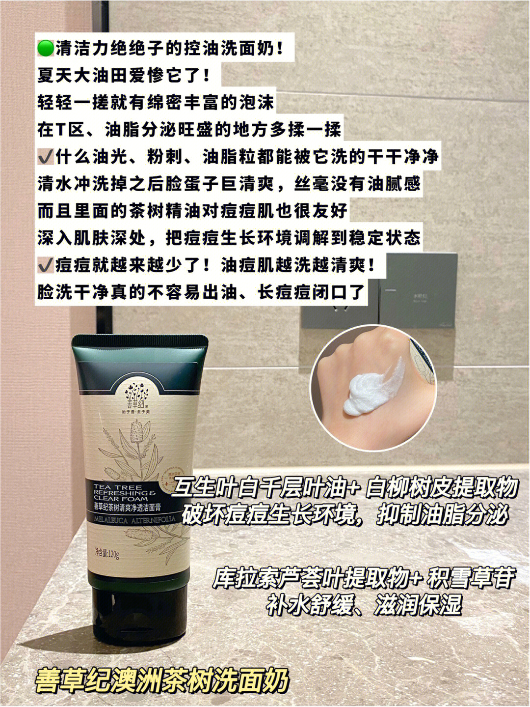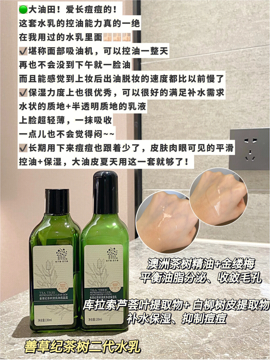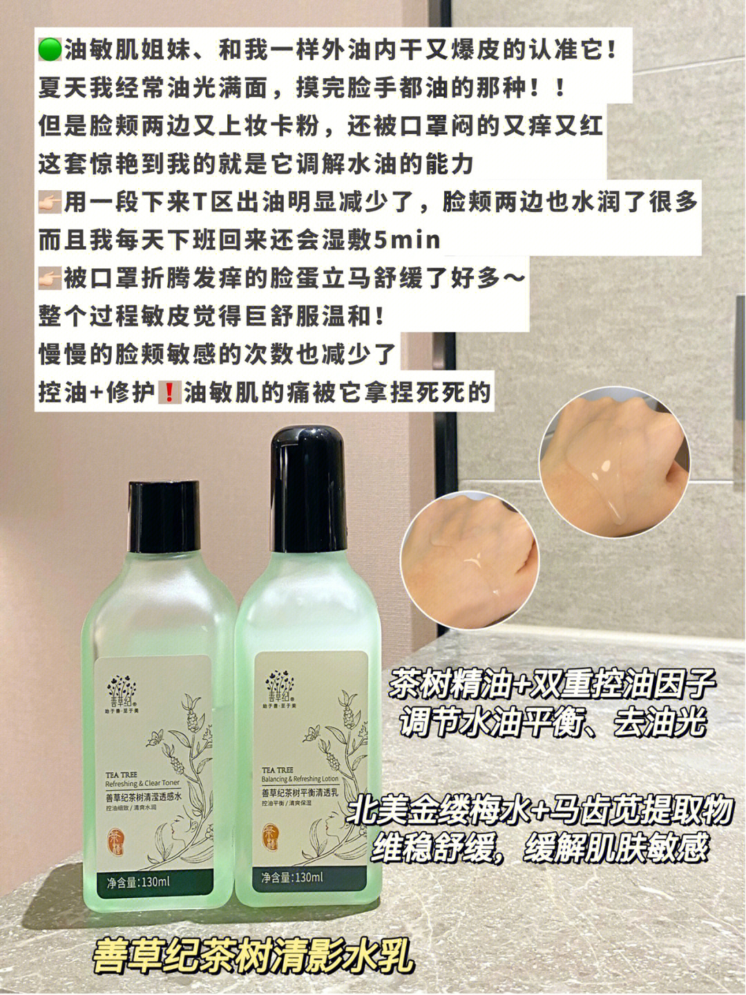 本篇笔记关联了善草纪 清影版茶树控油舒缓透感水乳套装 紧致毛孔祛痘水油平衡淡痘印油外油内干敏肌适用 水130ml+乳130ml、善草纪 澳洲茶树洁面泡泡洁面乳 油敏 茶树清莹120ml、善草纪 龙血精华液 紧致等商品,为用户提供真实的使用体验和购买参考。
