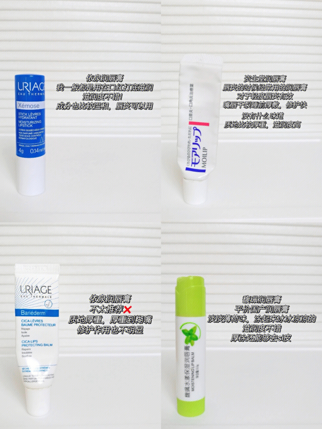 本篇笔记关联了URIAGE/依泉 润唇膏 保湿防干裂去死皮淡化唇纹 小蓝管-滋润保湿、URIAGE/依泉 无香润唇膏 舒缓修复锁水 15ml、Shiseido/资生堂 MOILIP维生素b6润唇膏 保湿淡化唇纹 8g等商品,为用户提供真实的使用体验和购买参考。