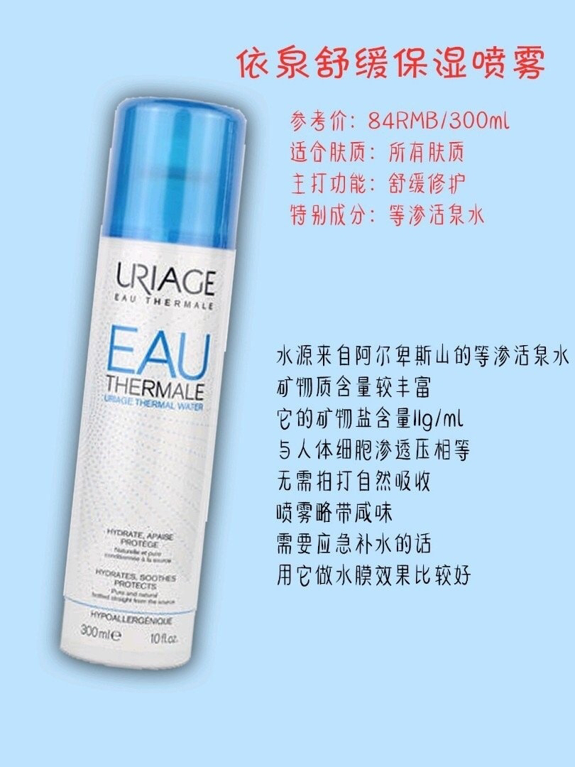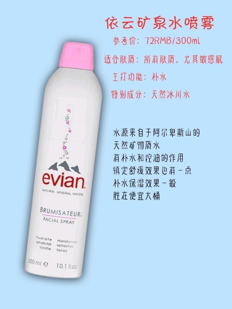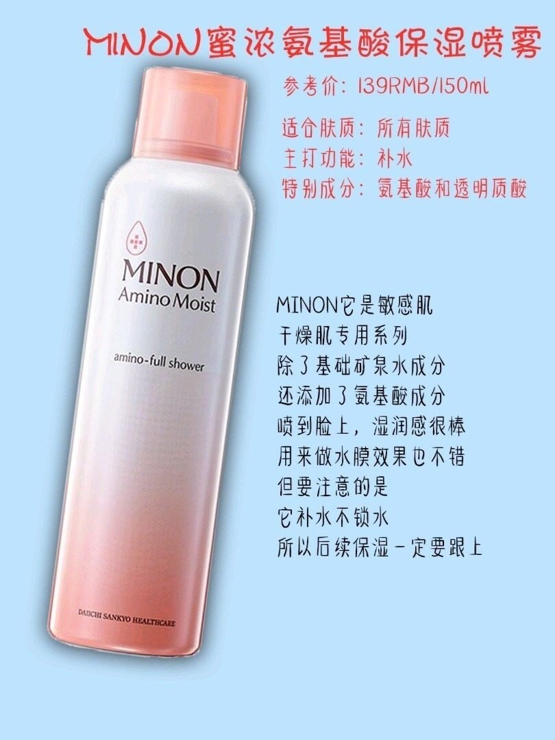 本篇笔记关联了MINON/蜜浓 氨基酸补水保湿喷雾精华水 150g、URIAGE/依泉 舒缓保湿喷雾 补水清爽泛红水润 舒缓保湿、Evian/依云 天然矿泉水爽肤水大喷雾 补水保湿舒缓 温和补水等商品,为用户提供真实的使用体验和购买参考。