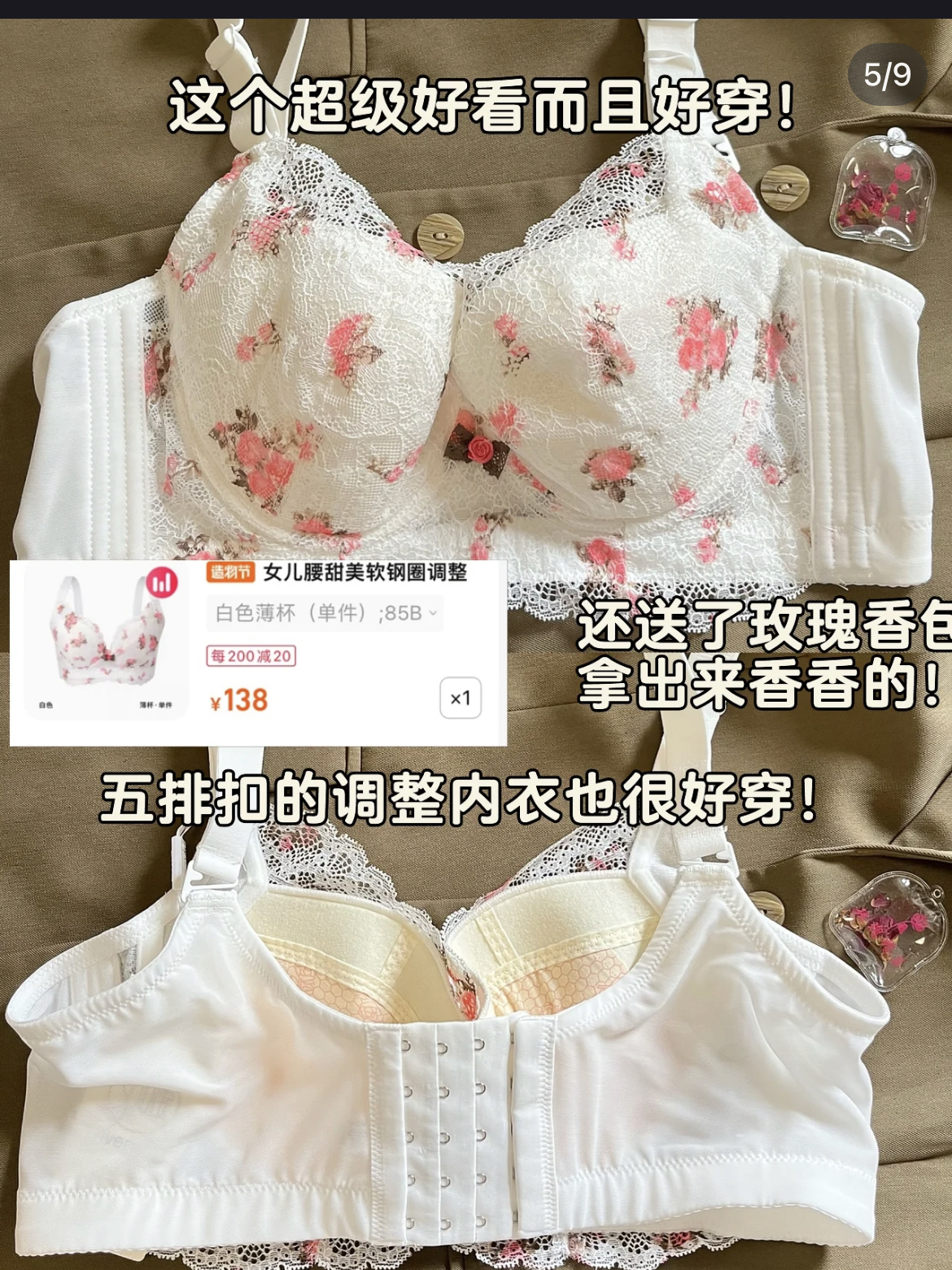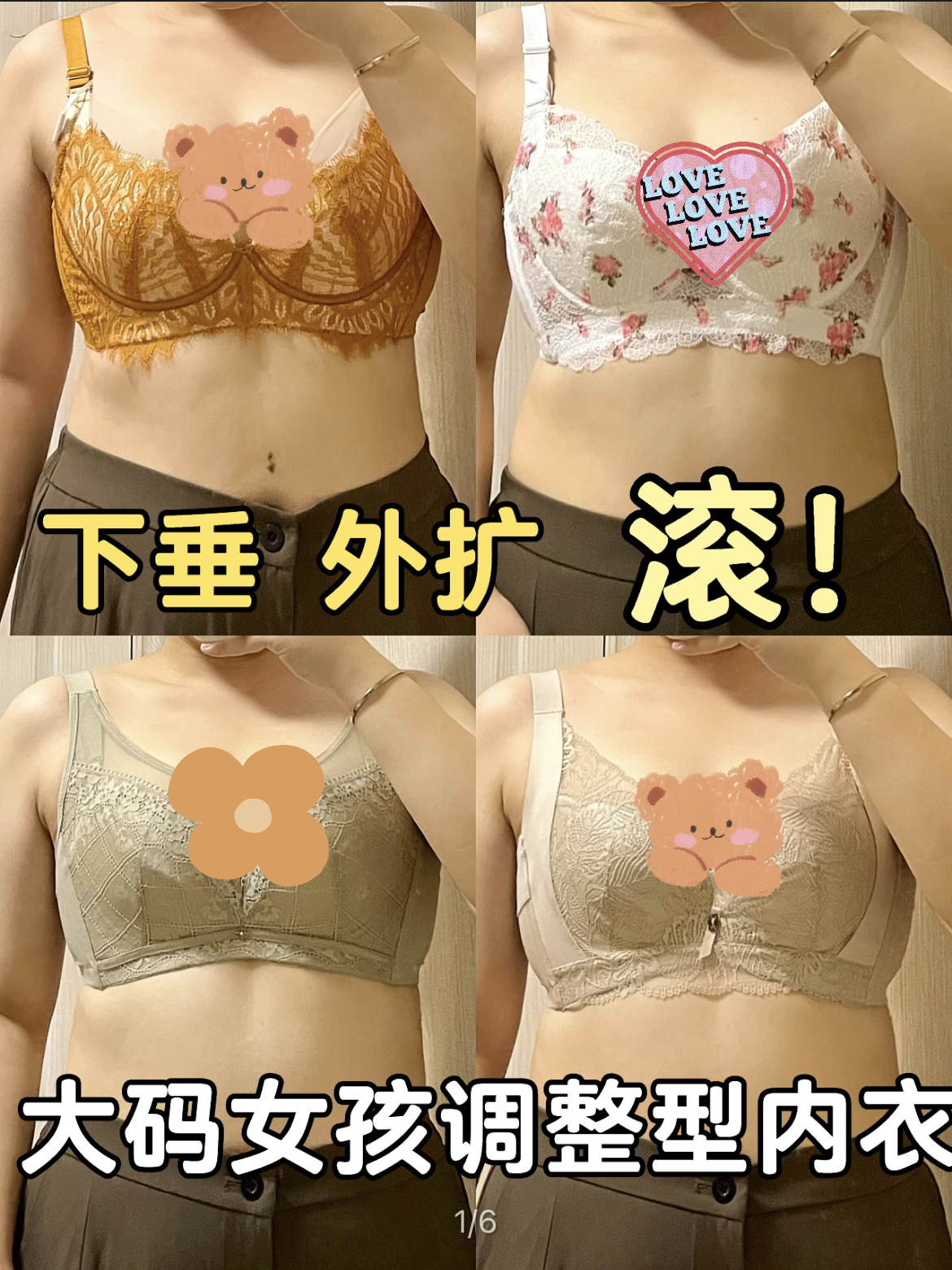 hello 大家好呀!我是一个大码🐻部外扩的妹妹,之前推荐大🐻显小内衣比较多,但众所周知显小很容易压胸,不显胸型,但一些紧身的衣服肯定也是需要胸型好看👙的那就安排上吧! 测评👙:女儿腰 ☀ 他家主打大杯调整型内衣的,主要还是针对🐻部有外扩和有副乳的姐妹,调整内衣主要还原圆润的形状,会比较自然但不显大 每一款的优缺点: 1⃣: 优点:1.外形刺绣很好看! 2.加宽了侧...
