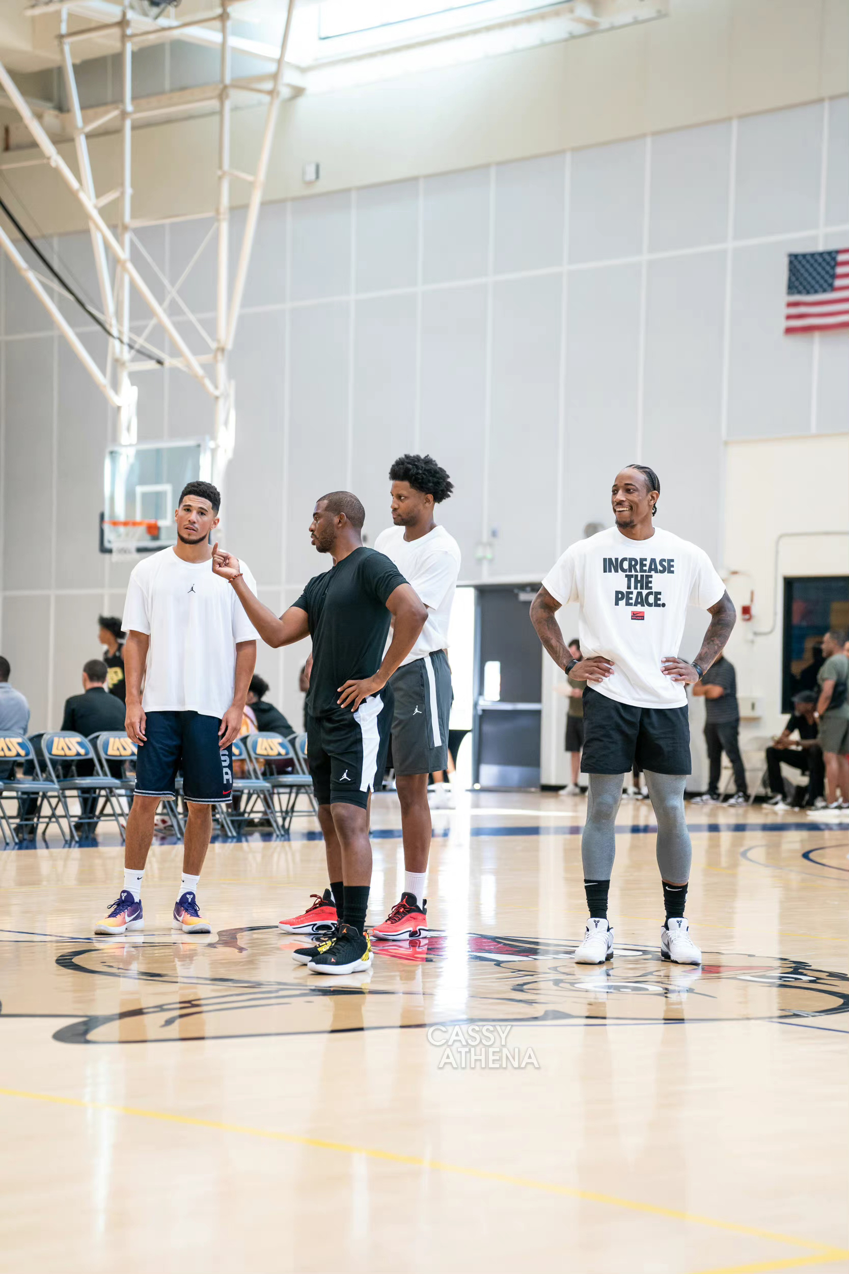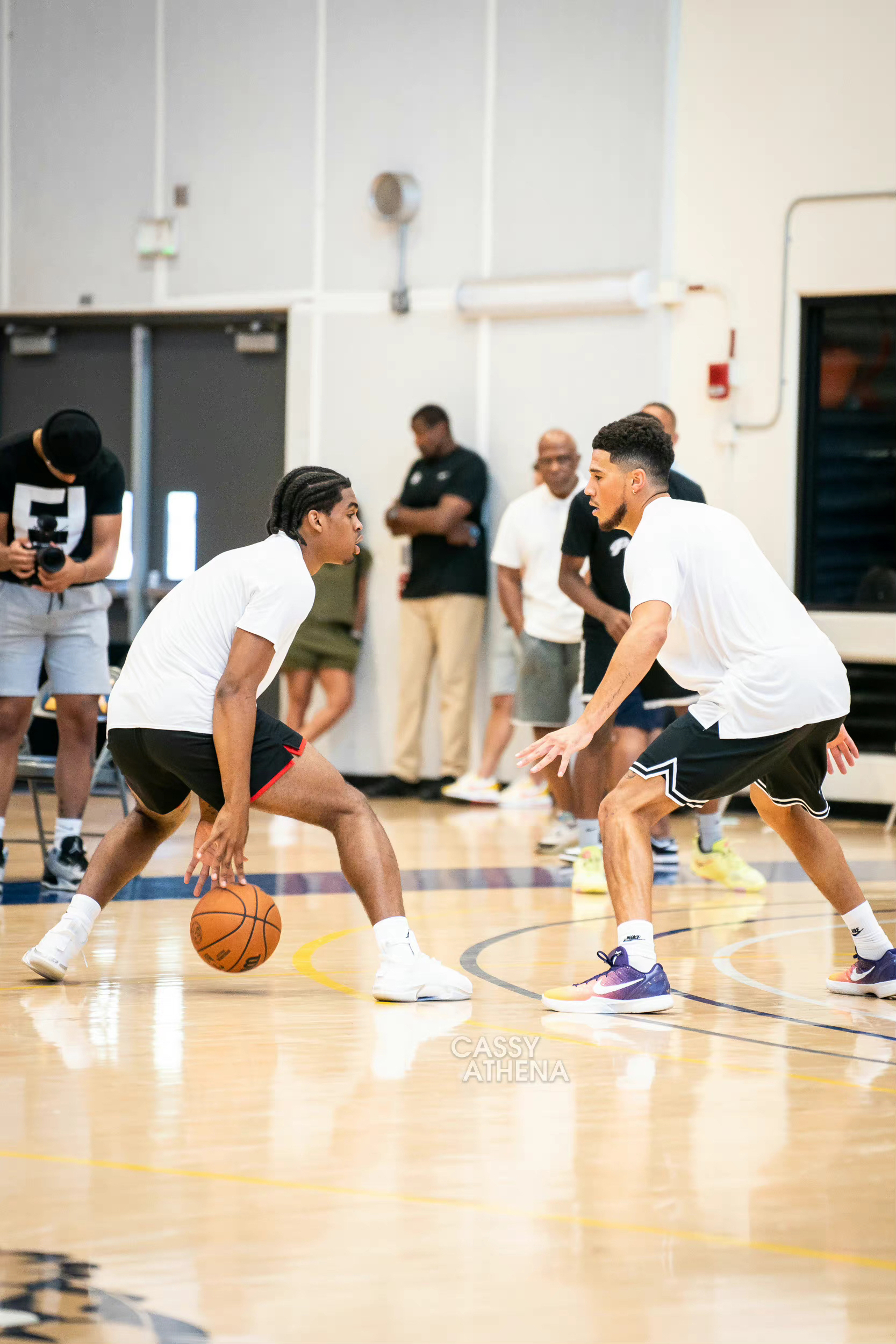 队友德文-布克、德罗赞、火箭球员约什-克里斯托弗、鲁迪-盖伊,科比-怀特也到场支持。参加训练营的高中球员中,有超级网红球手Jared McCain,23届后卫AJ Johnson。 📸:@CassyAthena
