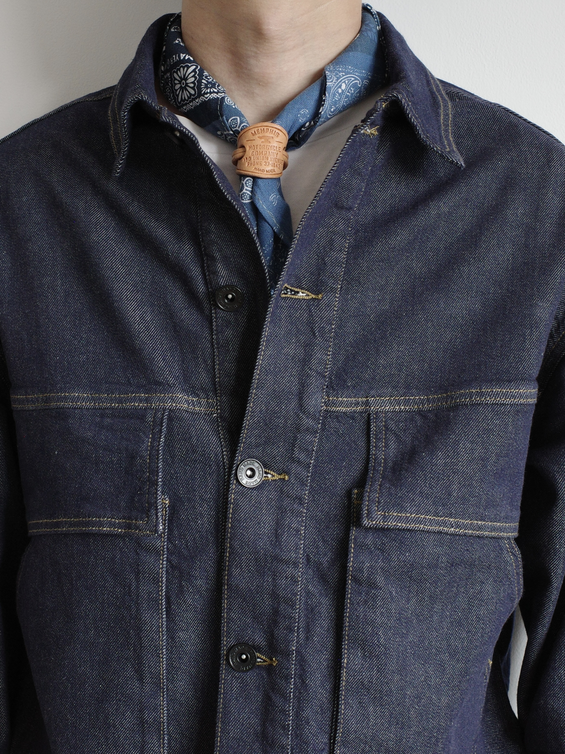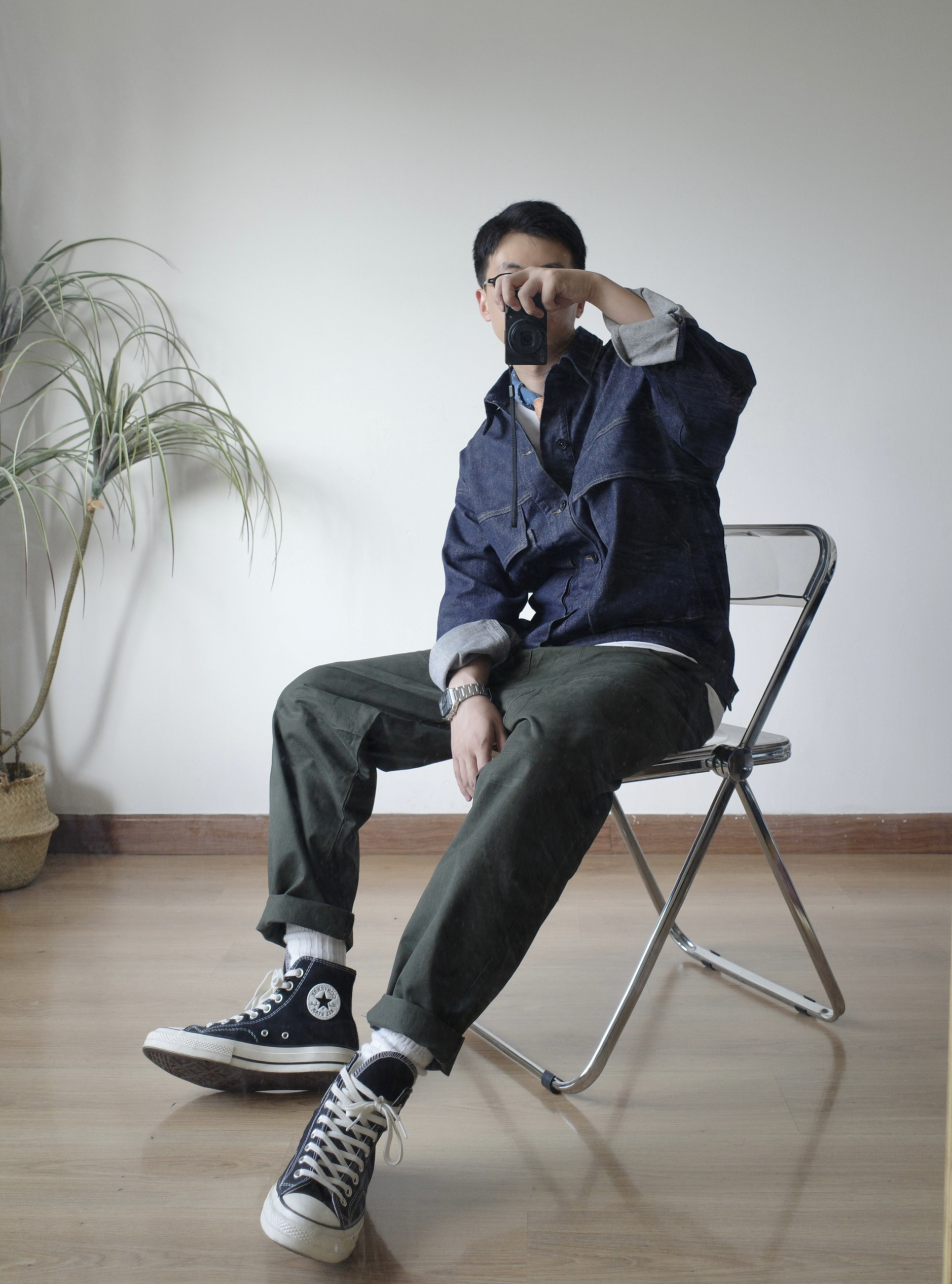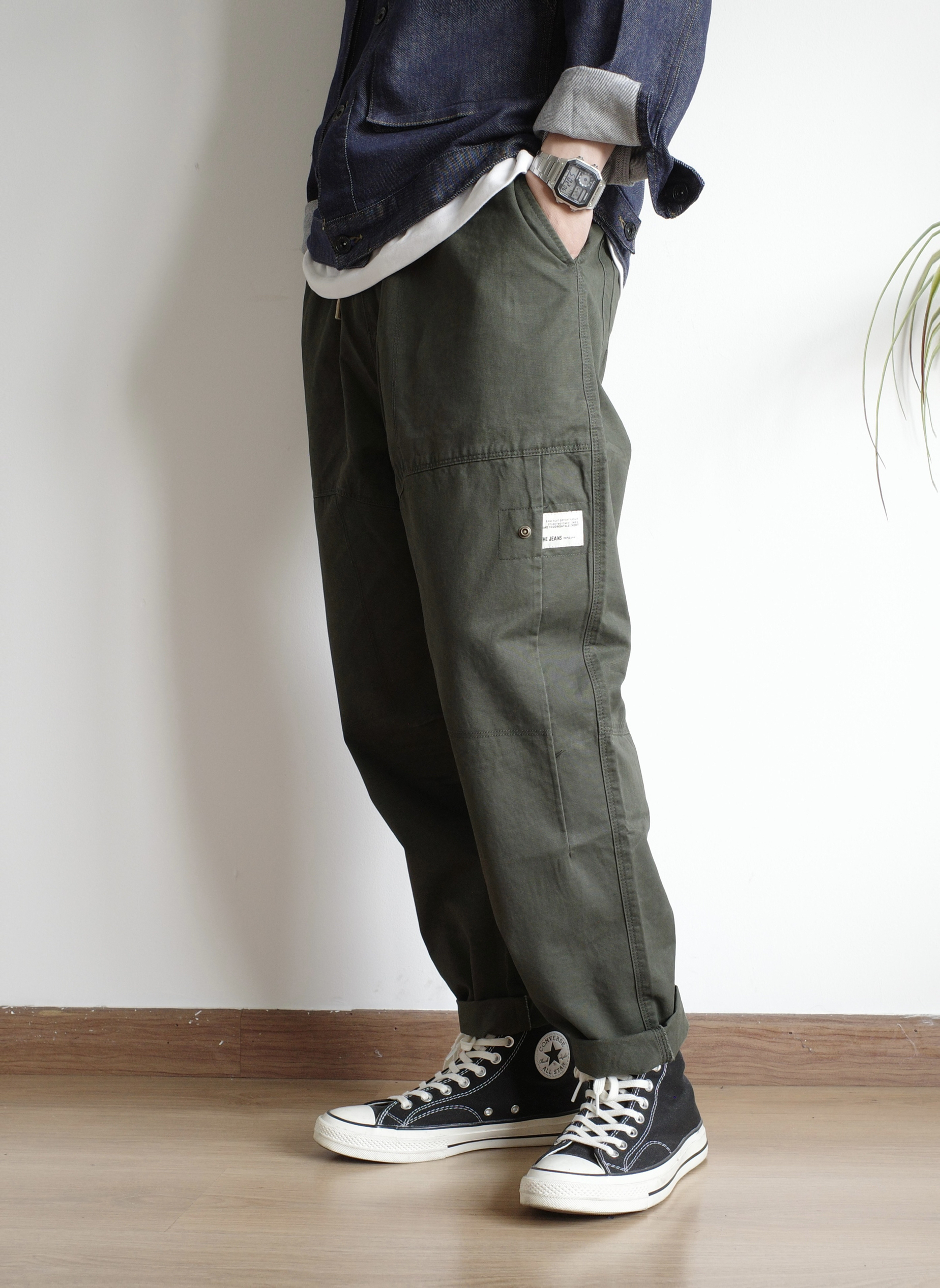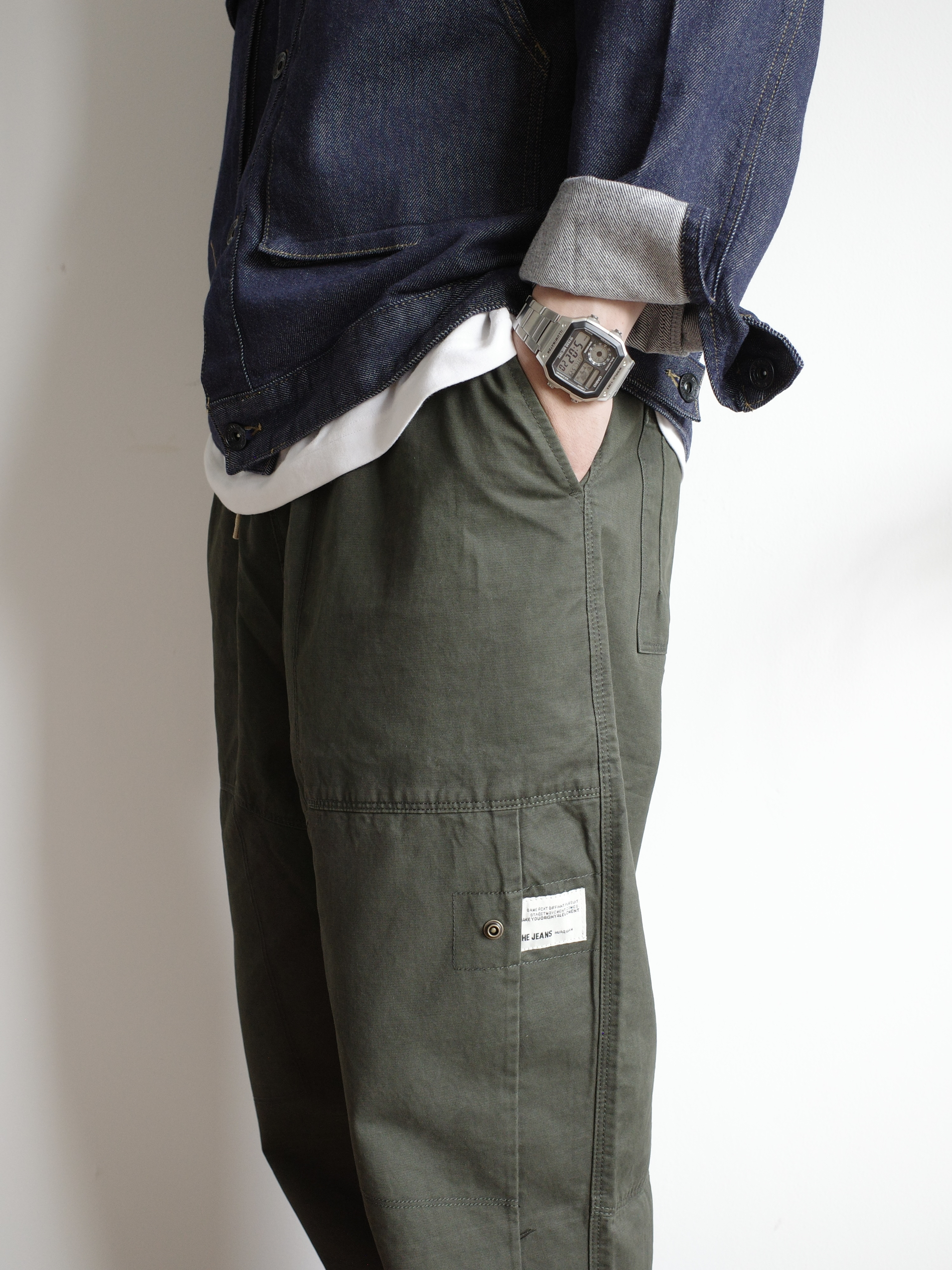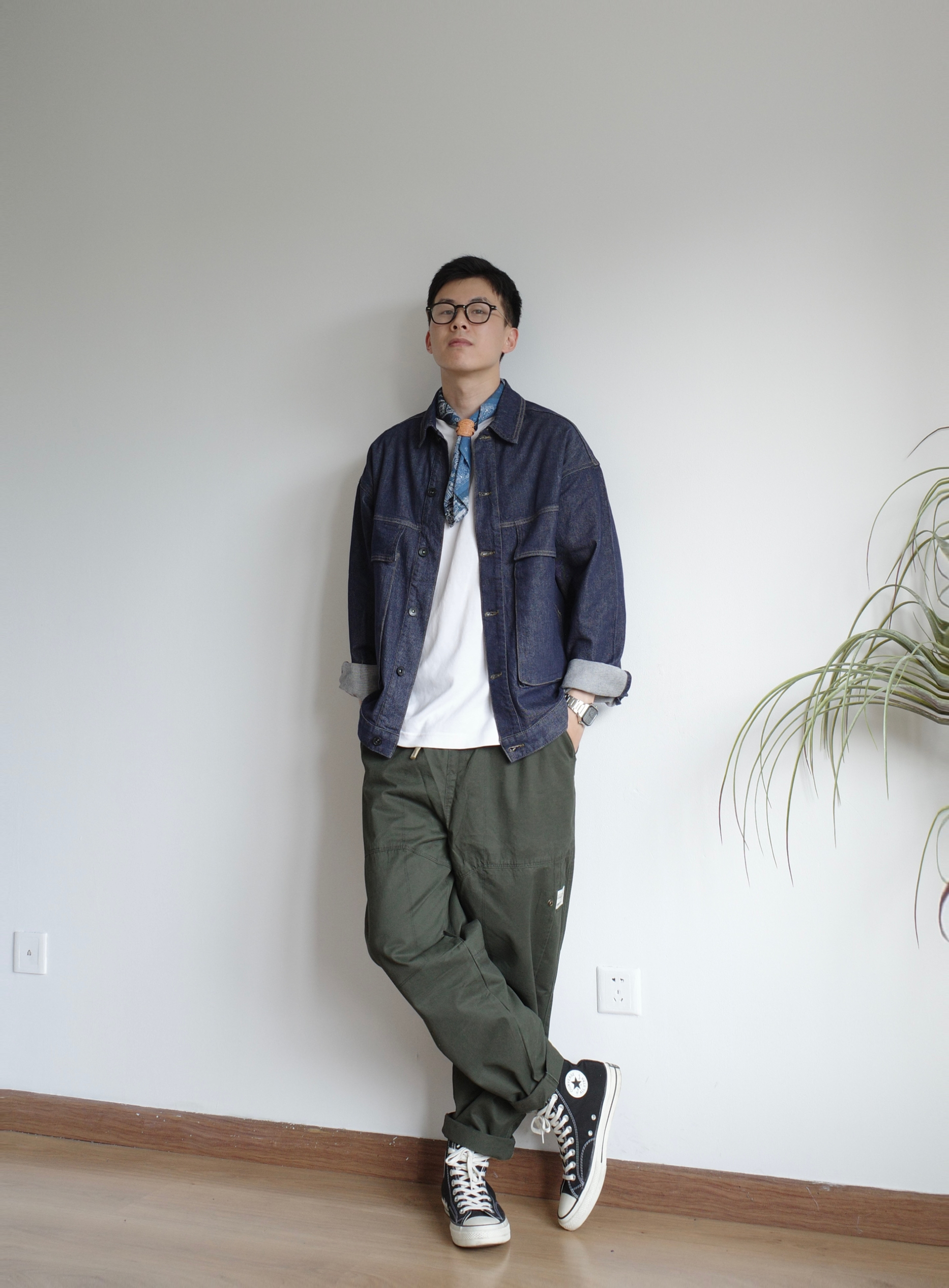 今天是简单干净的大男孩穿搭 一件牛仔外套+军绿色工装裤,好搭易上手 再加上一条蓝色的围巾作为点缀, 就可以愉快的出门啦 👔👖:1642