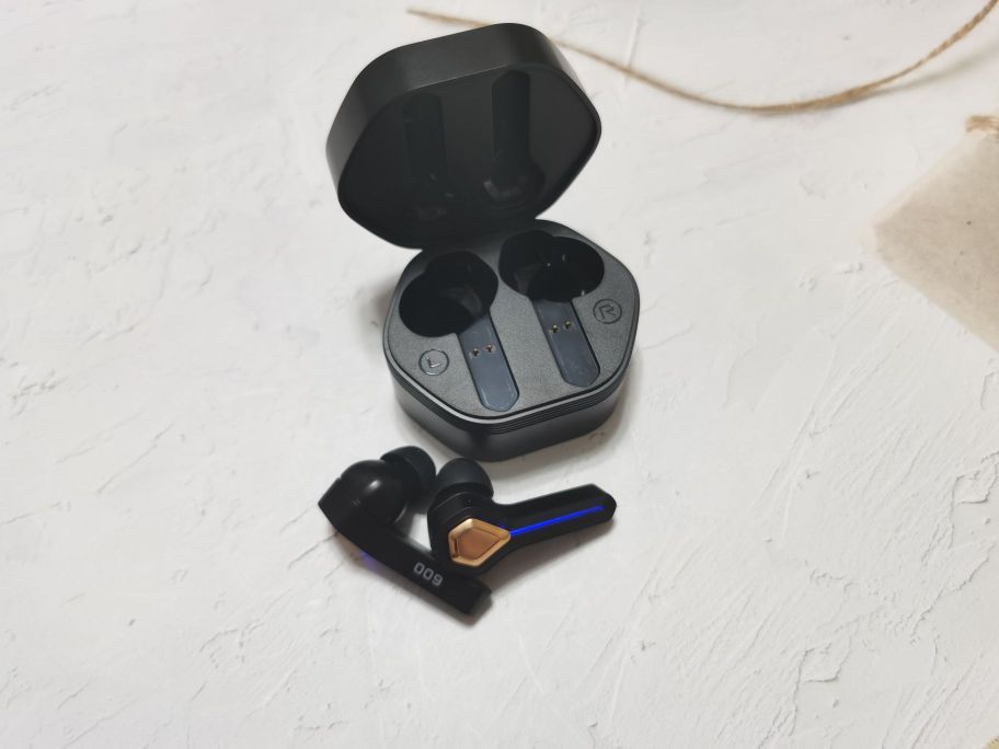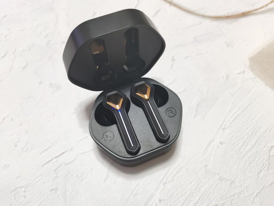 贝戈马户(james donkey)最早进入我的印象也是为啥会有这名字的品牌,他家的鼠标性价比非常的高,而这次他家的贝戋马户(james donkey) 009蓝牙游戏耳机外观设计上很具个性,区别于其他真无线耳机的椭圆电池仓采用了圆角六边形,顶部还有根金色的线条来点缀,耳机外观也是棱角分明,触摸区采用了亮金色的钻石形状,彰显个性与众不同,耳机的灯效也能很清楚是否进入了低延迟的游戏模式还是普通模式,搭载了蓝牙5.3技术、发声单元采用了10mm动圈单元。