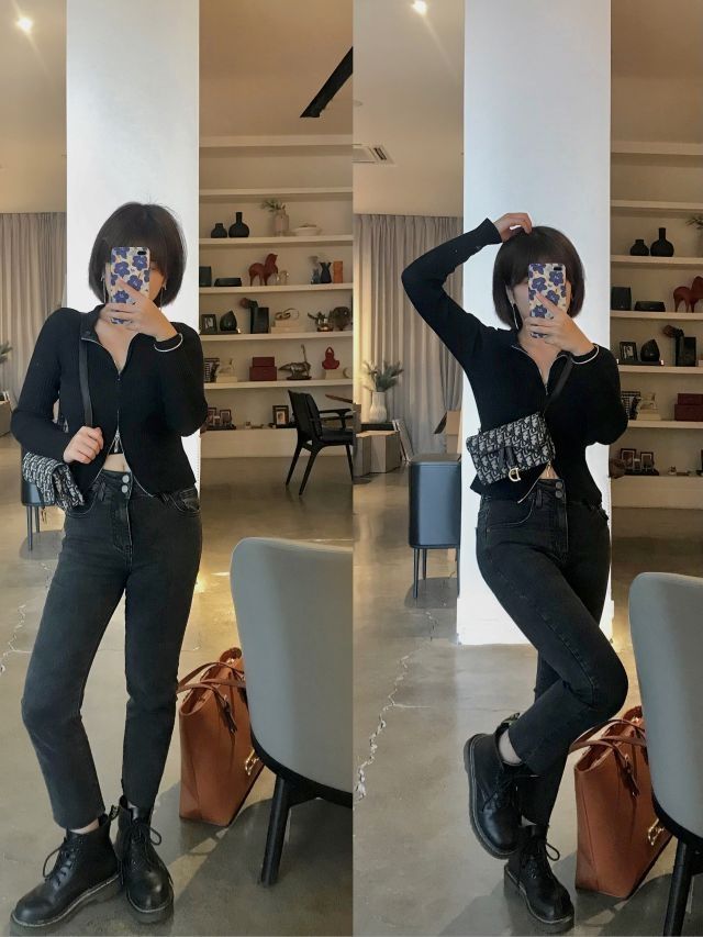 挖到宝啦!!!臭宝们 这套黑色系穿搭简直太cool啦🆒 🖤all black 黑白色系就是我的本命穿搭 这件针织衫 满满的小心机 可上下拉链 很显腰身 搭配黑色八分牛仔裤和内增高马丁鞋简直又显瘦有显高 ⚫️黑色永远都不会出错 牛仔裤合集的第五条牛仔裤 弹力超级好 梨型妹妹完全可冲 显瘦第一名 上衣:黑色草莓 32💰 包包:dior腰包 裤子:nkaz旗舰店 鞋子:马丁靴 旺仔是条狗 139💰 每...