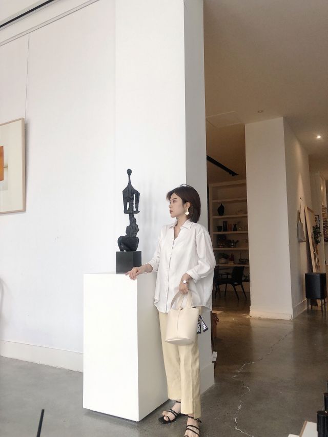 今天是笨笨分享的是职场女生穿搭 −经典的白衬衫+黄色西装裤 妥妥的轻熟风 衬衫细节可以卷起来穿不会过于死板 整一套都有点透 款式还是不错的 -奶白色的水桶包 可斜挎 可手提颜色也是奶白奶白的容量也很大 包上还配了丝巾和珍珠 温柔挂 有没有注意到笨笨穿搭的细节 就是手表饰品 这只是男朋友520送的礼物是Lola Rose的深海贝母表盘 真的巨巨巨美 整个一圈都是闪闪发光的钻石 手腕较细的姐妹可拆...
