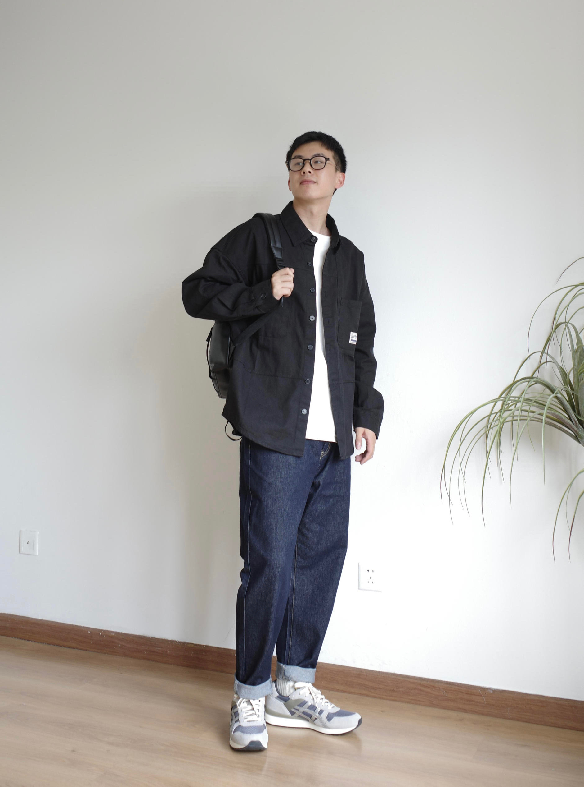 好搭易上手的清爽大男孩穿搭 一件简约的衬衣➕一条合身的牛仔裤 干净又显高,简单的搭配一个黑色双肩包 通勤物品统统放得下 👔👖:woodsoon