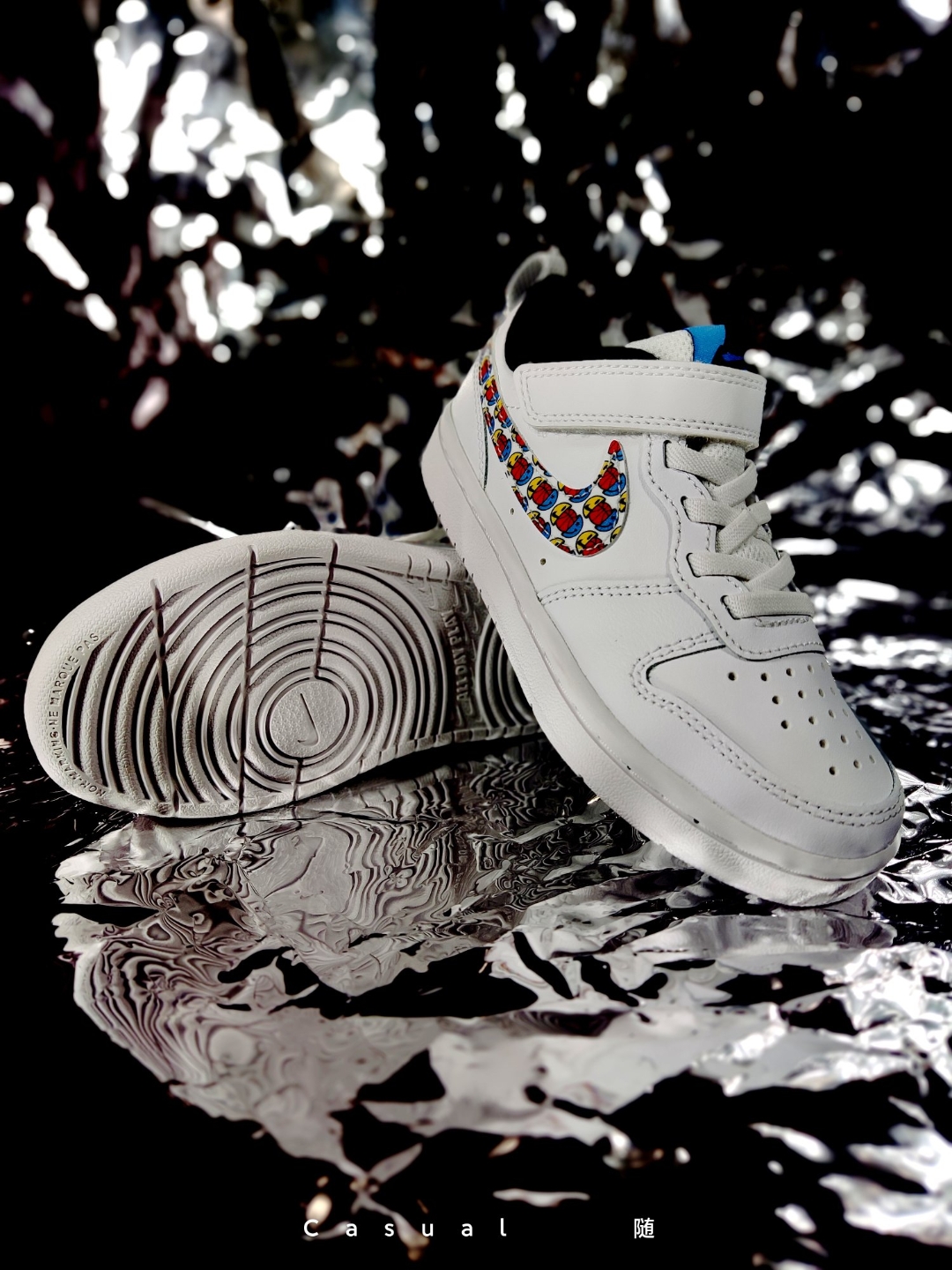 这款Nike court的小白鞋真的非常值得推荐,不仅仅是因为价格很实惠。 首先白色非常好搭衣服,绝对不用担心穿什么衣服会不搭,哪怕是校服都可以轻松驾驭起来。 而且虽然是小白鞋但是呢又不失俏皮,红蓝相间的swoosh点缀恰到好处,而且鞋垫也是鸳鸯设计哦,这个绝对的细节了。 还有就是魔术贴的设计,很多小宝宝还不会系鞋带,这款魔术贴版本简直不要太...
