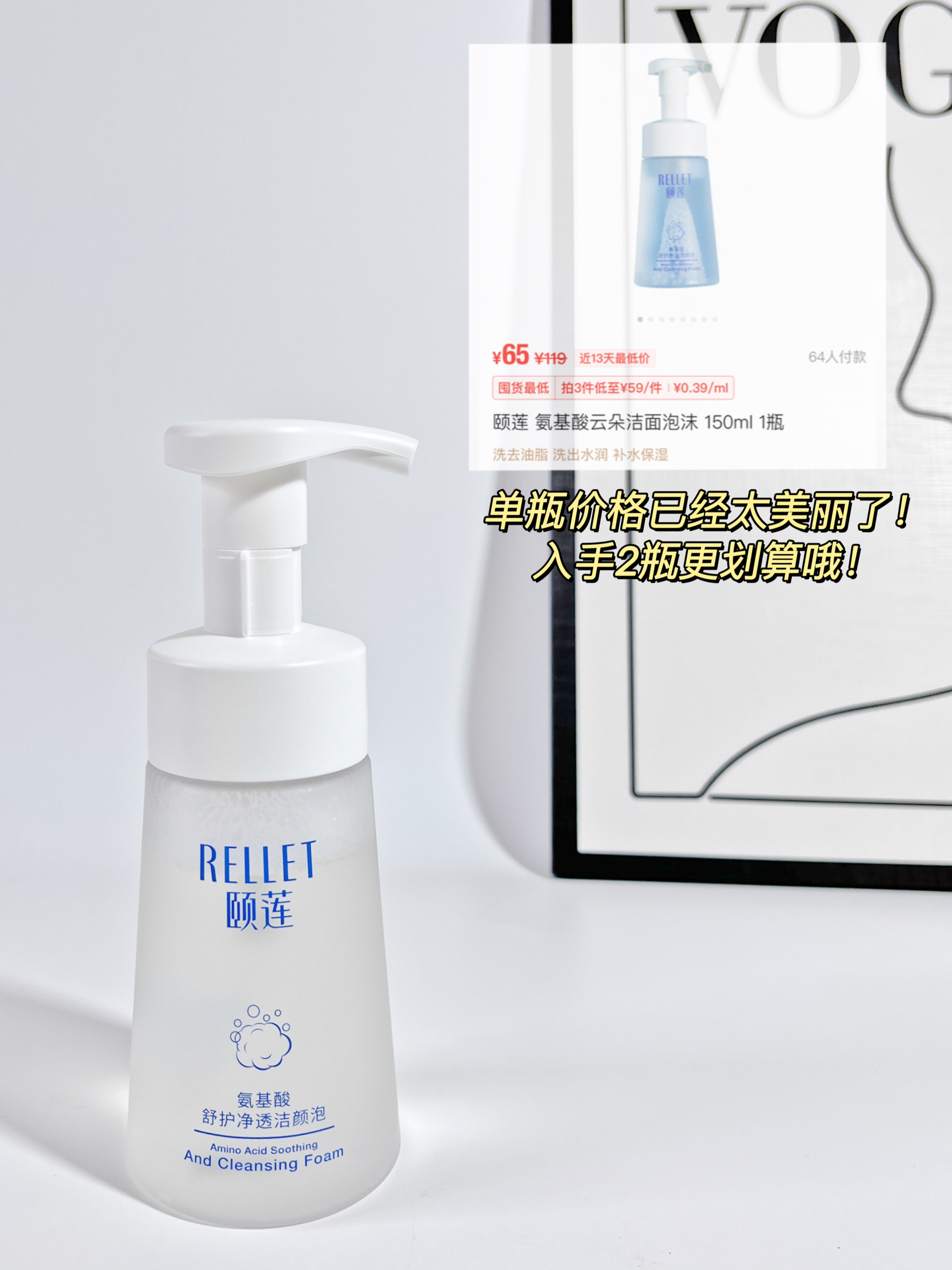 本篇笔记关联了Rellet/颐莲 氨基酸舒护净透洁颜泡 绵密泡沫清爽 150ml等商品,为用户提供真实的使用体验和购买参考。