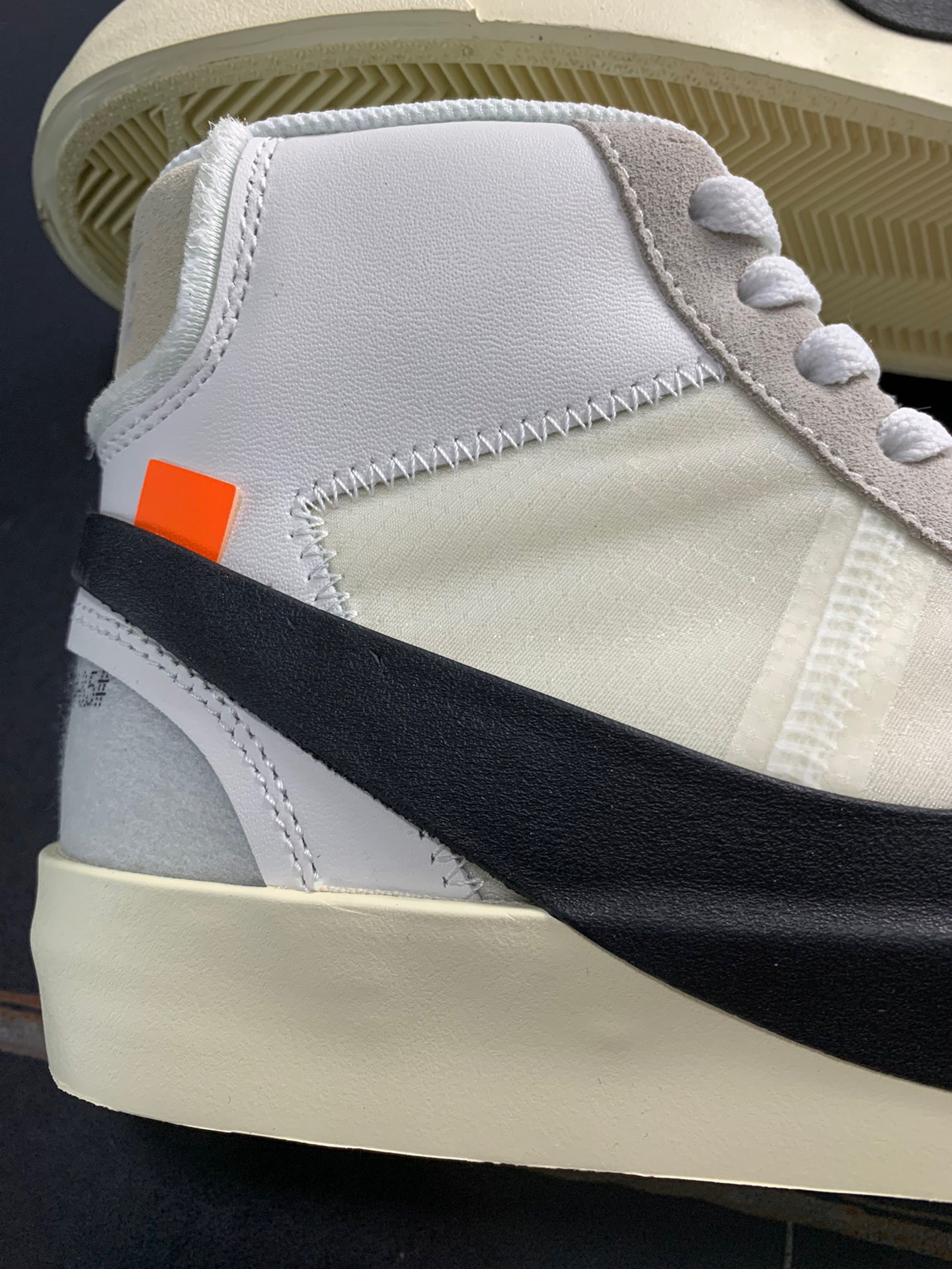👟球鞋名称:Off-White x Nike Blazer Mid "The Ten"' 米 白色 🔍设计亮点:Nike Blazer是Nike推出的从篮球鞋转变至滑板鞋的经典鞋款,采用合成橡胶和皮革组合鞋面,展现出了不俗的质感,鞋垫搭配后跟Nike Zoom Air气垫,在碰撞着地时提供减震防护,为长时间训练带来舒适的体验。耐磨硫化橡胶外底搭配人字底纹,为足部提供了驾驭滑板时所需的触板感准确掌...