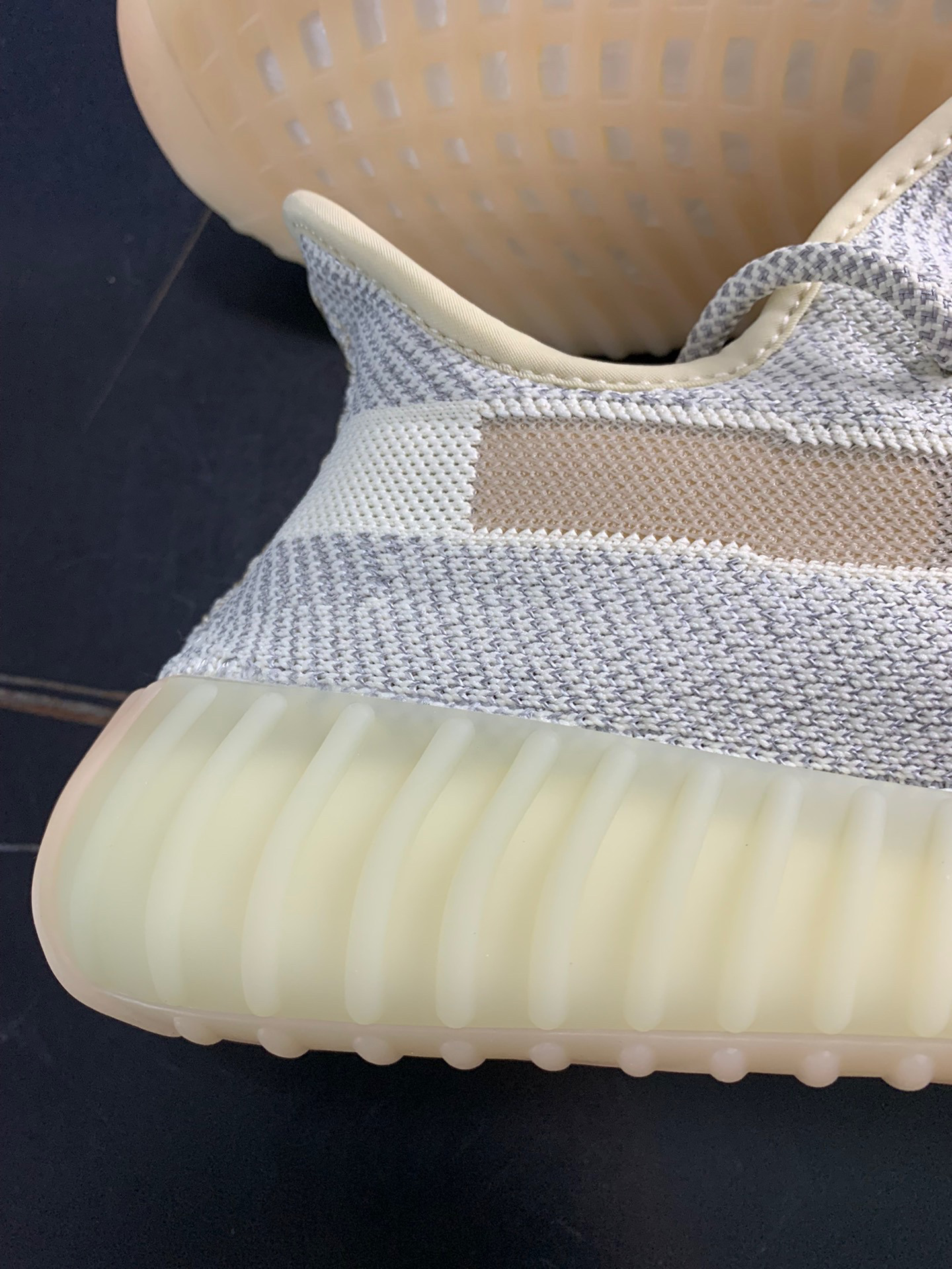 👟球鞋名称:adidas Yeezy Boost 350 V2 Lundmark 鞋面反光版 满天星 潮流户外运动休闲鞋 男女同款芝麻色 美洲地区限定 🔍设计亮点:这双Synth同样将会以没有后跟提环的形式出现。鞋款将会是以裸色搭配生胶色的中底完成整体设计. 📃总结评价:⭐⭐⭐⭐