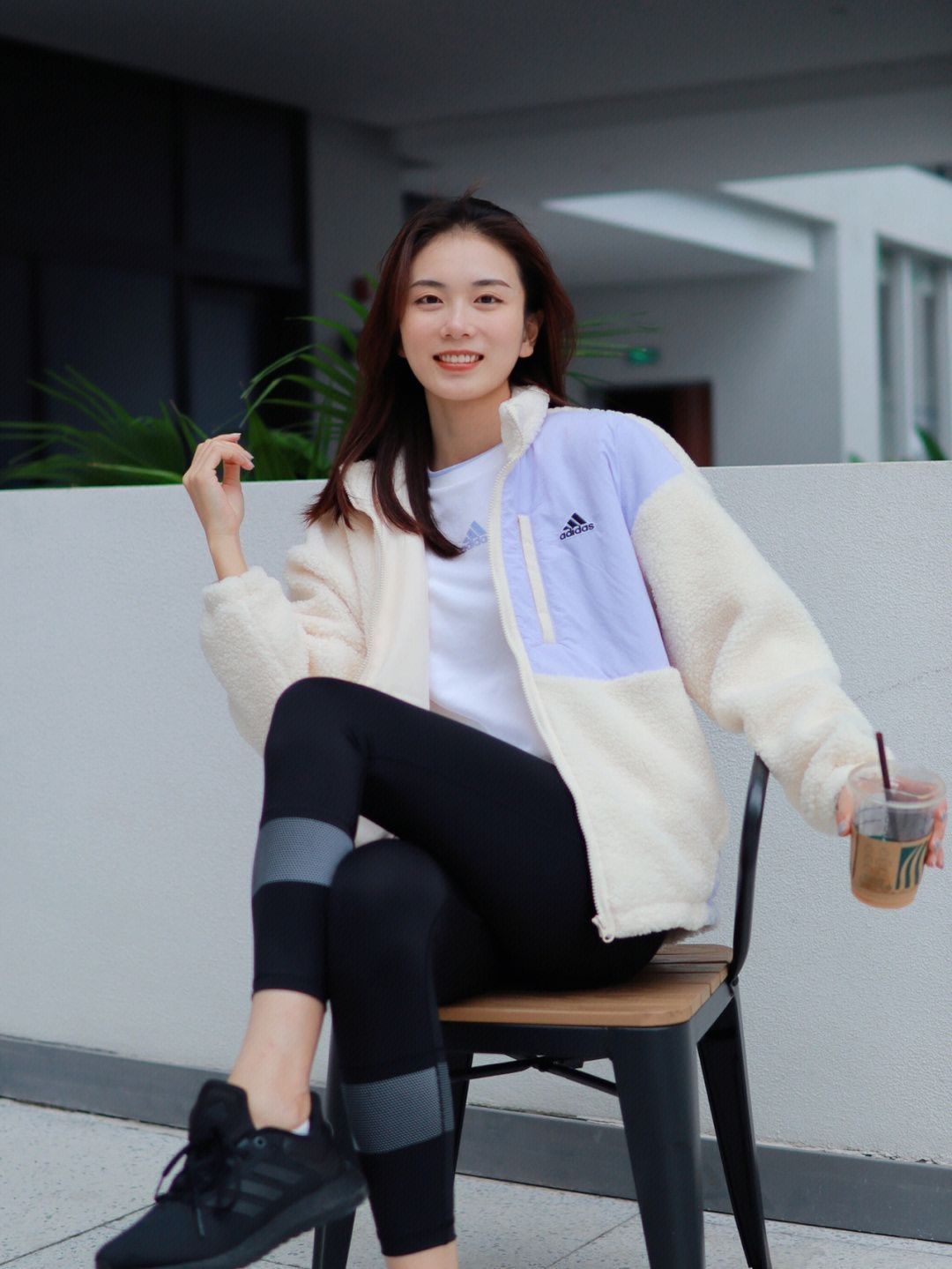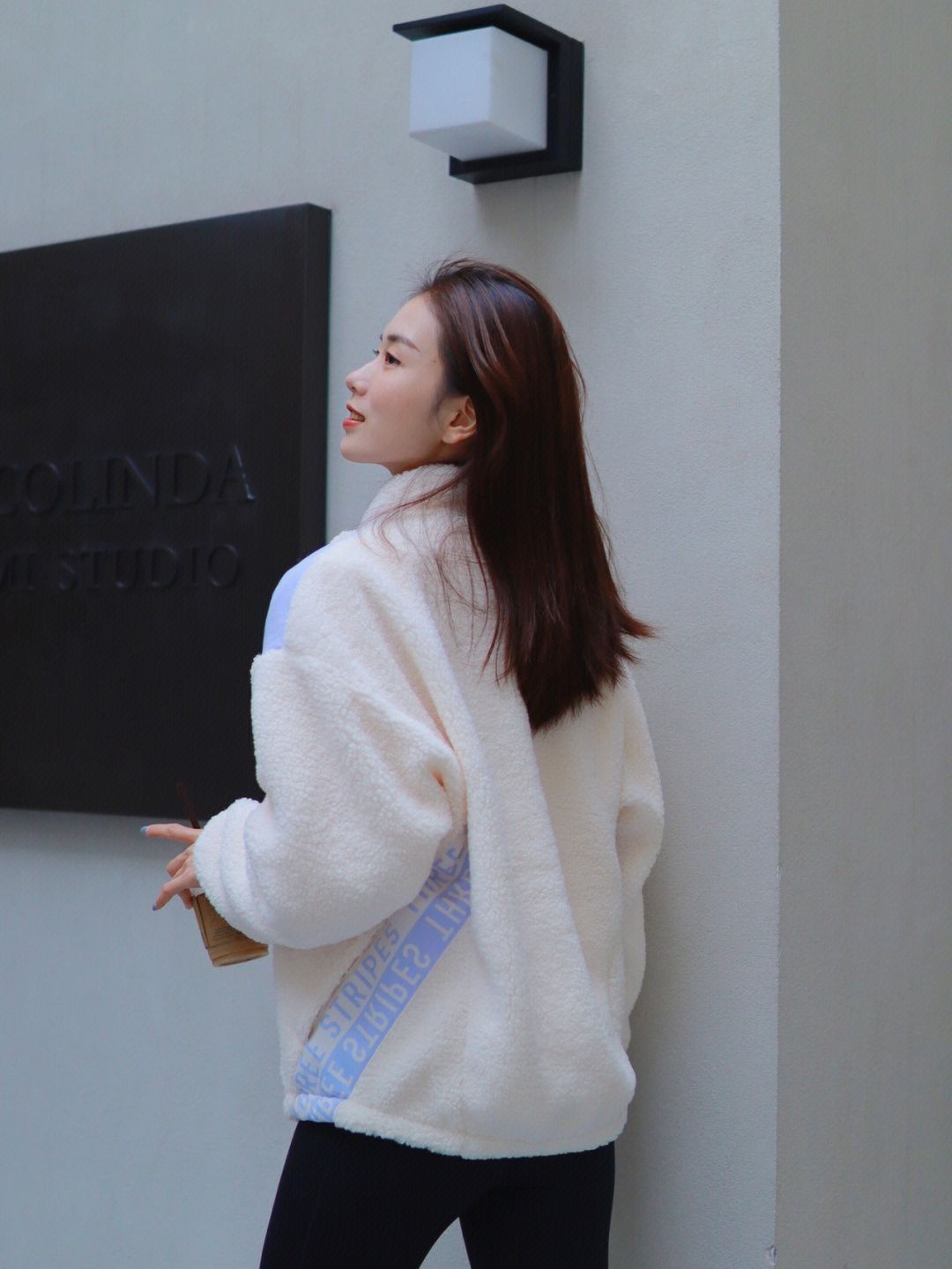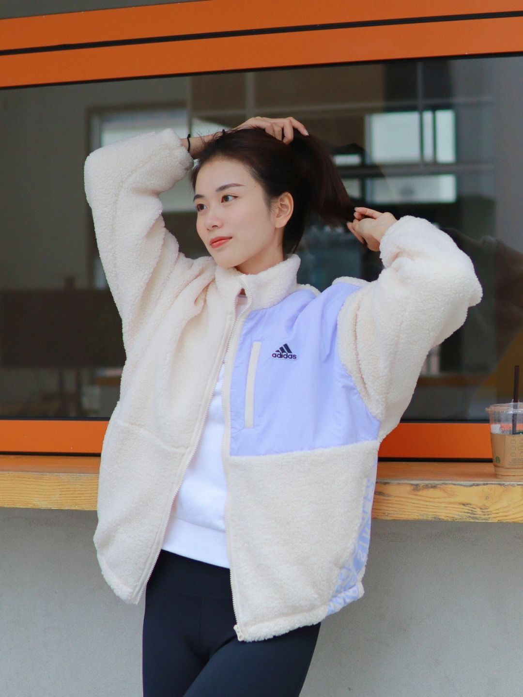 ✨羊羔毛外套太舒服了 软软的 内里也是加绒的 摸起来软乎乎的 宽松的 但是一点也不会臃肿 好搭配 衣服不容易掉毛 颜色是米白色的 太适合秋冬了 ✨搭配鲨鱼裤我真太爱了 瑜伽裤的版型 舒适度高 显瘦又显高
