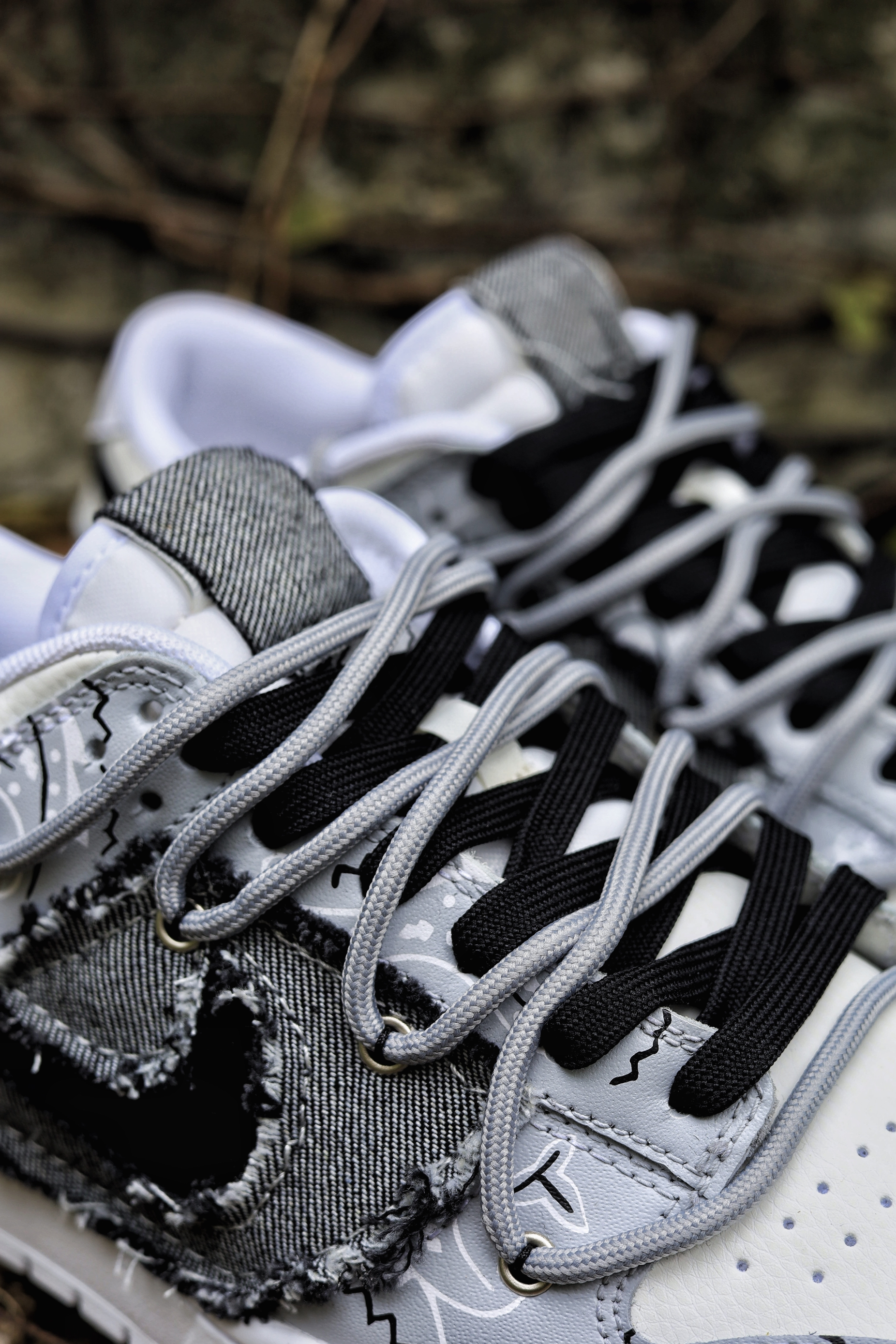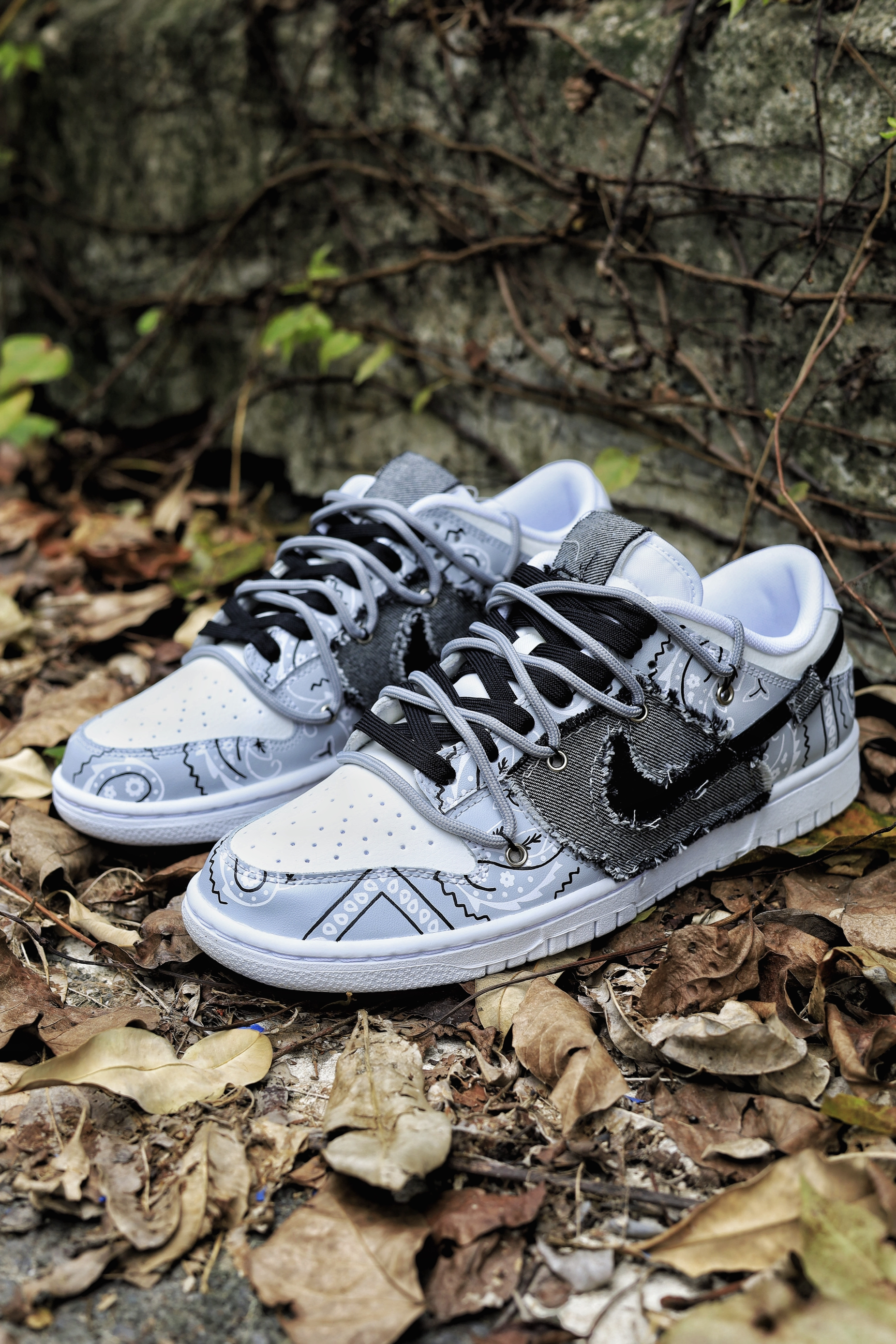 哈喽大家好,我是你们的老川!今天为大家开箱一款设计非常走心的一款高颜值百搭DUNK💥 定制款以Nike Dunk Low Retro 黑白为设计原鞋! 在鞋面上增加了灰色鞋头及后跟,黑白灰的配色也是比较百搭经典!荔枝皮革的打造,质感MAX! 球鞋内外侧为腰果花纹理的牛仔布料,采用缝纫技术制作!我也是第一次见牛仔布跟球鞋相结合! 很明显除了球鞋质感加倍之外!更带来了街头嘻哈浓郁的潮流气息! ...
