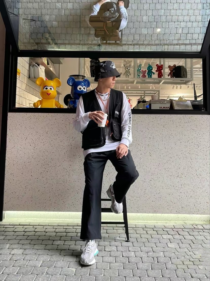 🧢:the mad hatcher腰果花盆帽 上海的一个国潮品牌,他们家只做配饰,单品非常不错—性价比超高!耳机套也是他们家! 👕:长tee,马甲还有长裤都是李宁的,设计感十足,剪裁是我喜欢的风格上,效果超赞。 👟:鞋子是NB327和niko and的联名,鞋子整体以灰色为主,加以湖水绿作为点缀兴非常适合夏天穿着!