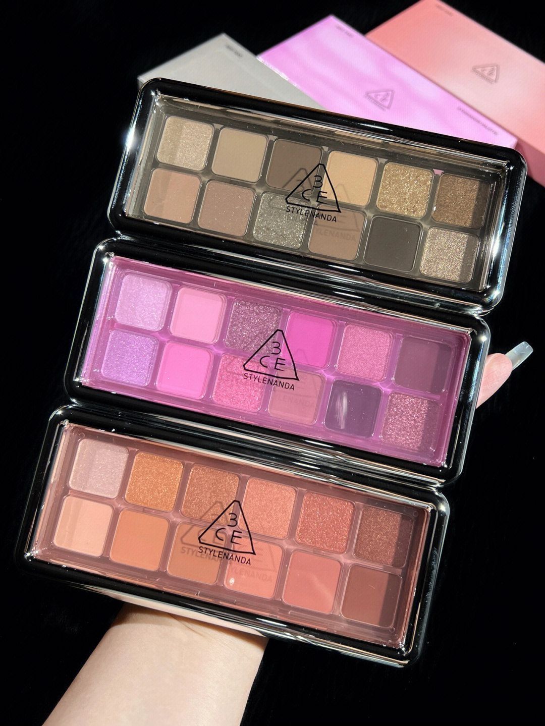🆘3ce秋季新品12色眼影盘➕腮红 这波好赞啊|||眼影盘一共有三种 12色 ♥️raw neutrals:大地色盘真的很日常 消肿神器 而且很适合日常通勤 ♥️creative filter:这盘y2k盘这波最难买 粉粉的 很特别 ♥️motion frame:还有一盘最日常的那种 比较普通的一盘 个人推荐上面俩 💓整体这波也是很可爱 是很粉很粉的那种 敲粉嫩 很日常 也是那种很嫩的颜色 是...