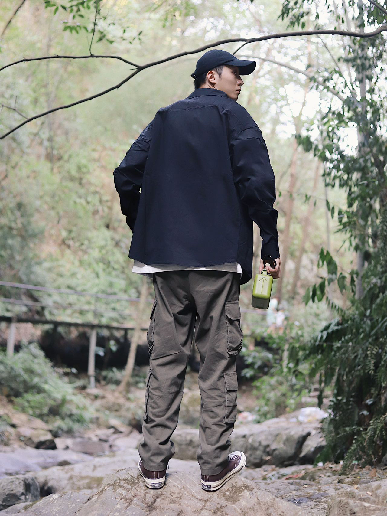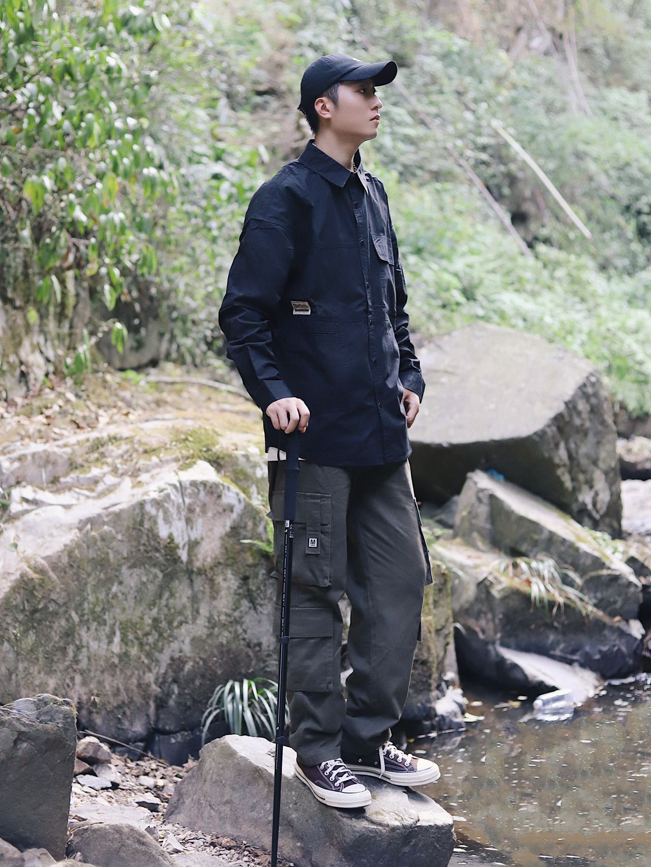 嗨喽大家好 秋天已经来了 秋装速度准备起来✌️ 今天给大家分享一套秋天万能穿搭 ✨早秋ootd Look:衬衣➕工装裤➕帆布鞋 穿搭技巧 选一个经典黑色衬衣轻松好驾驭 那必须得内搭一件白T 黑白搭配永远不过时 再搭上一条万能工装裤 出门你就是最帅的 这一套日常又好看👀快来get! 👔希越