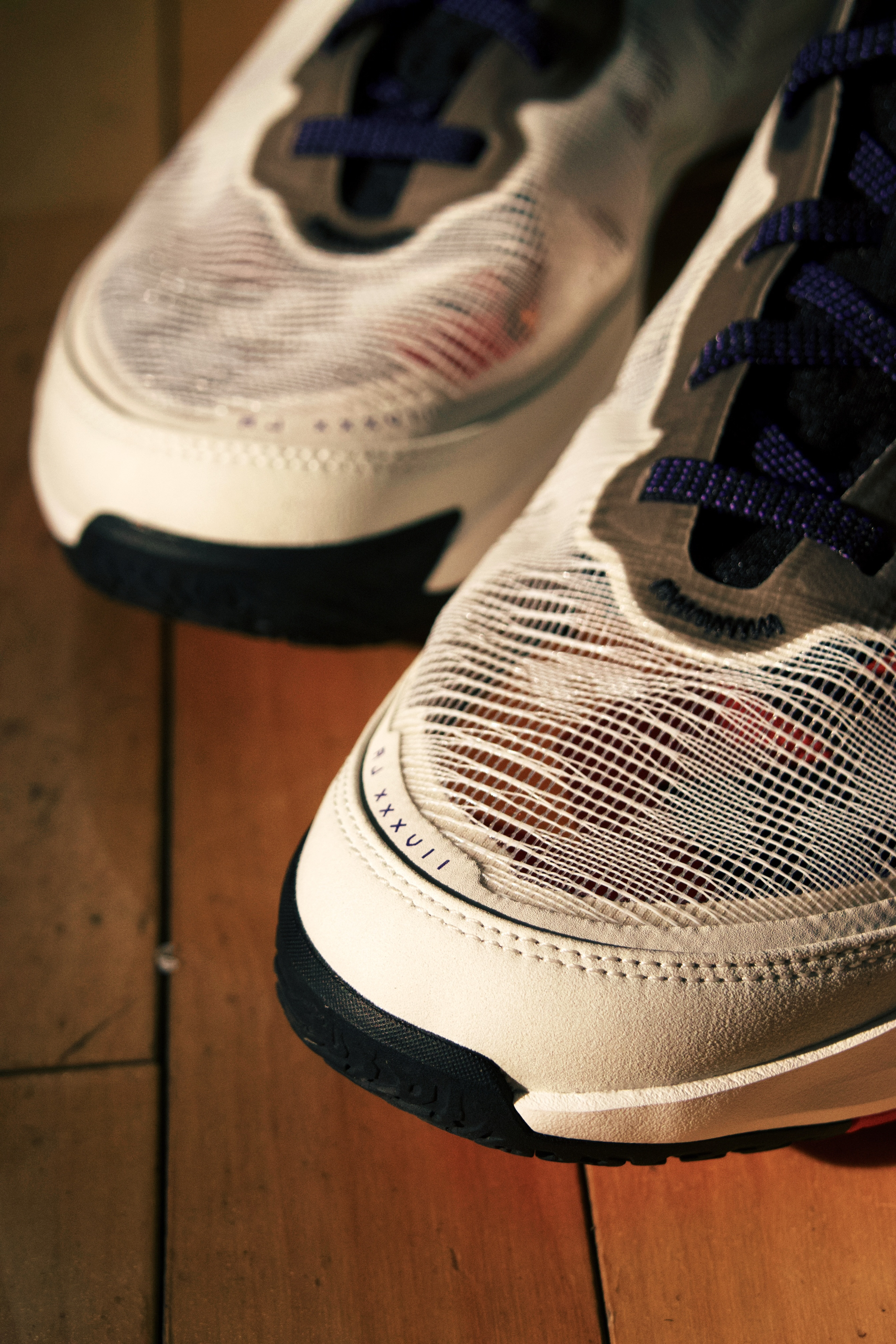 先说一句心里话!!!终于,终于,终于不在是TMD镂空的中底了!近些年来全员镂空真的有些审美疲劳了,篮球鞋中底镂空,跑鞋中底镂空,某品牌的拖鞋也整个类似镂空的设计,我就想问问你们还把不把旱冰鞋放在眼里?! 配色方面:致敬了AJ7 毛衣配色,鞋面采用了升级的 Arkema 纱线,整体的编织纹路的灵感来自西非的编织工艺,比 AJ36 的开孔还要夸张还要大!透气性不用多说了,整体的手感摸起来像极了羽毛球...