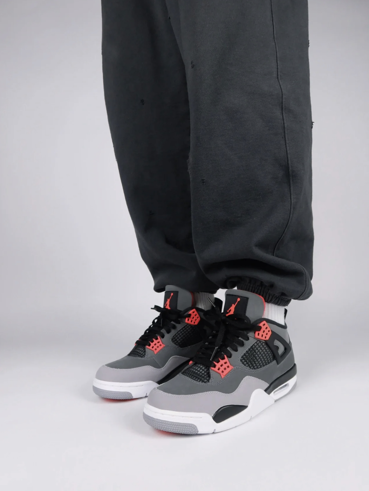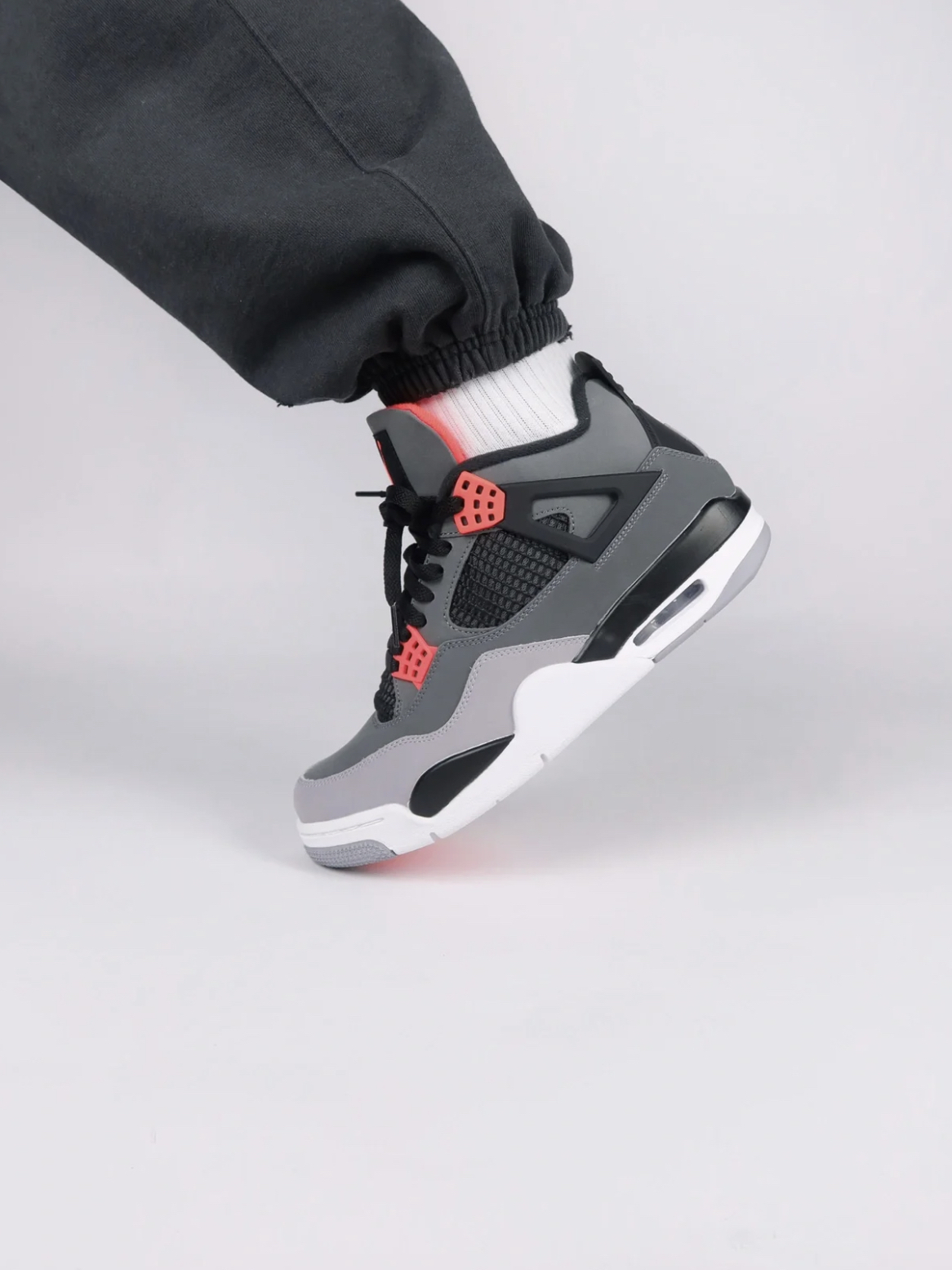 全新AJ4红外线你们入手了吗?这双鞋可以搭配情侣款,还是蛮值得入手的 鞋款名称|AirJordan4Retro"nfrared"复古篮球鞋黑灰红红外线 这双鞋是十分经典的配色,「红外线」AirJordan4以大面积灰色作为鞋身主调。不同深浅的灰色在Air Jordan4的鞋面上营造出层次感,从上到下一直由深到浅,最后以白色鞋底收尾。红外线元素点缀鞋带扣及鞋舌位置,在灰色的衬托下显得格外抢眼。 上脚...