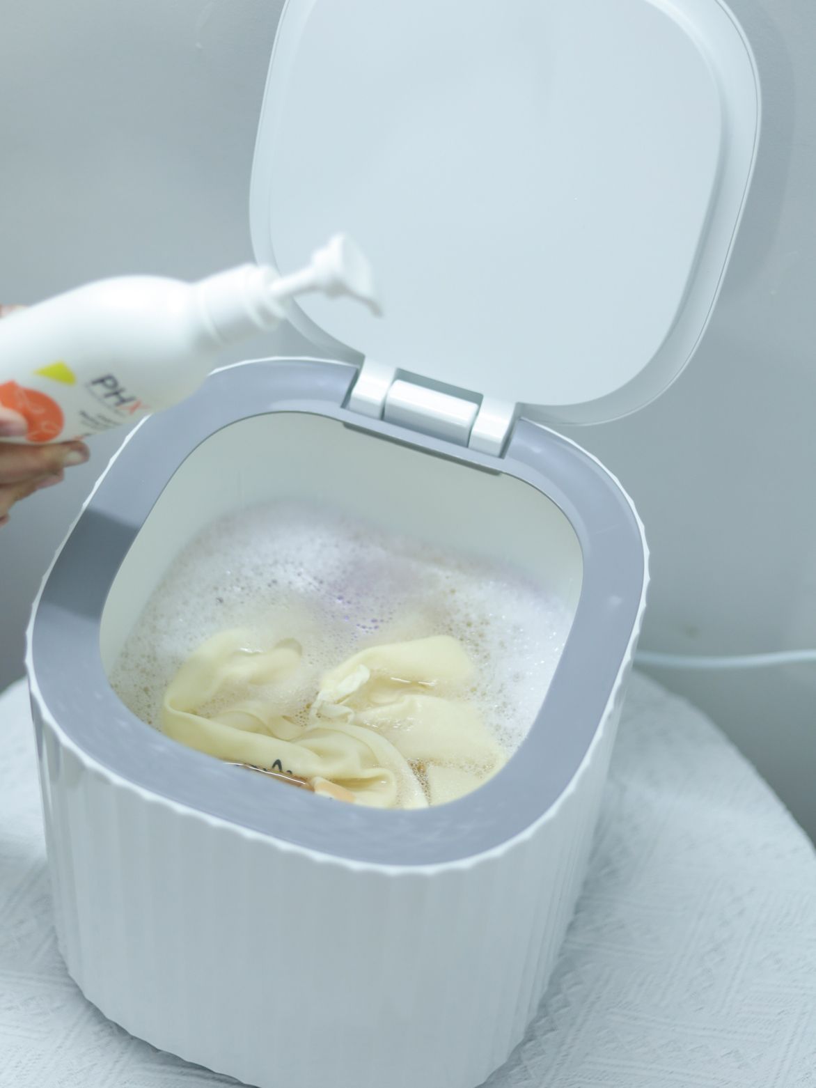 日常生活中,普通衣物我们大可以用洗衣机来洗涤,可婴幼儿衣物或者女性内衣、内裤与普通衣物混合洗很容易交叉感染,不卫生,手洗太累太费时间,很是纠结。 这款minicolo迷你洗衣机,让我们有了更好的清洗空间。极简的设计美学高颜值呈现,让我们摆在家里每个角落都是一个艺术品,因为机身较小,仅仅300x310x320mm,它适合家里的每一处角落,一点儿也不占地方。 宝宝衣物、文胸内裤袜子、宠物衣物、健身衣物...