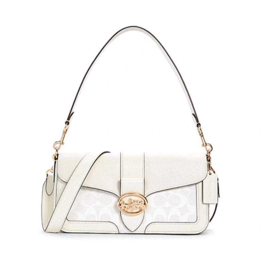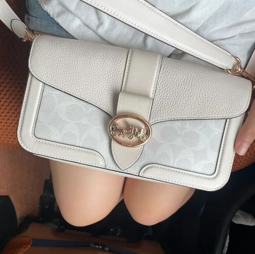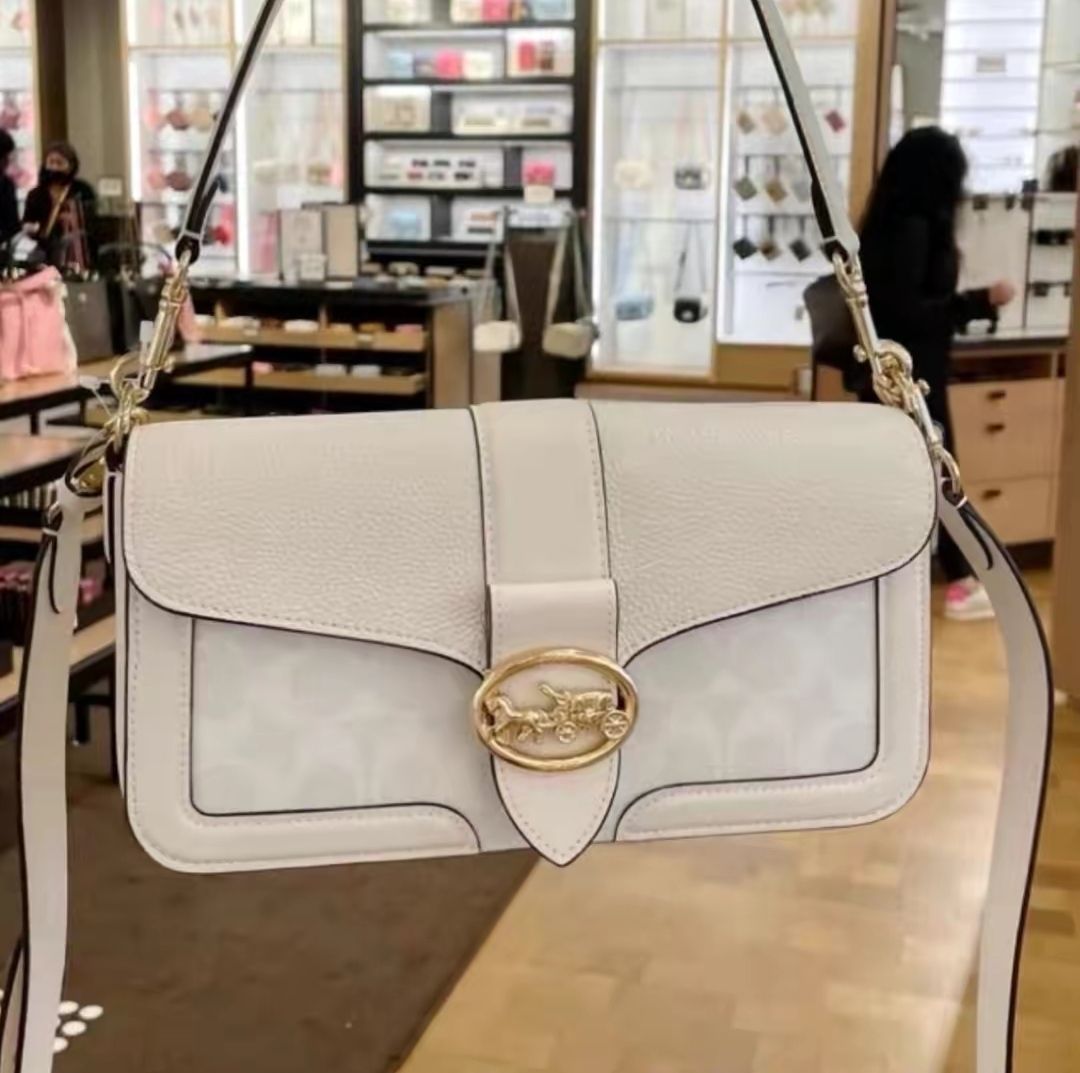 本篇笔记关联了Coach Georgie 27 中号 经典老花鹅卵石纹马车标扣拼皮皮革帆布配皮马车扣涂层满印单肩酒神包斜挎包腋下包手提包 白色等商品,为用户提供真实的使用体验和购买参考。