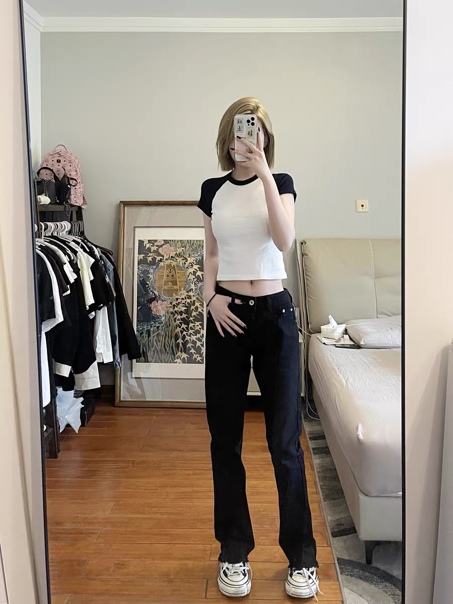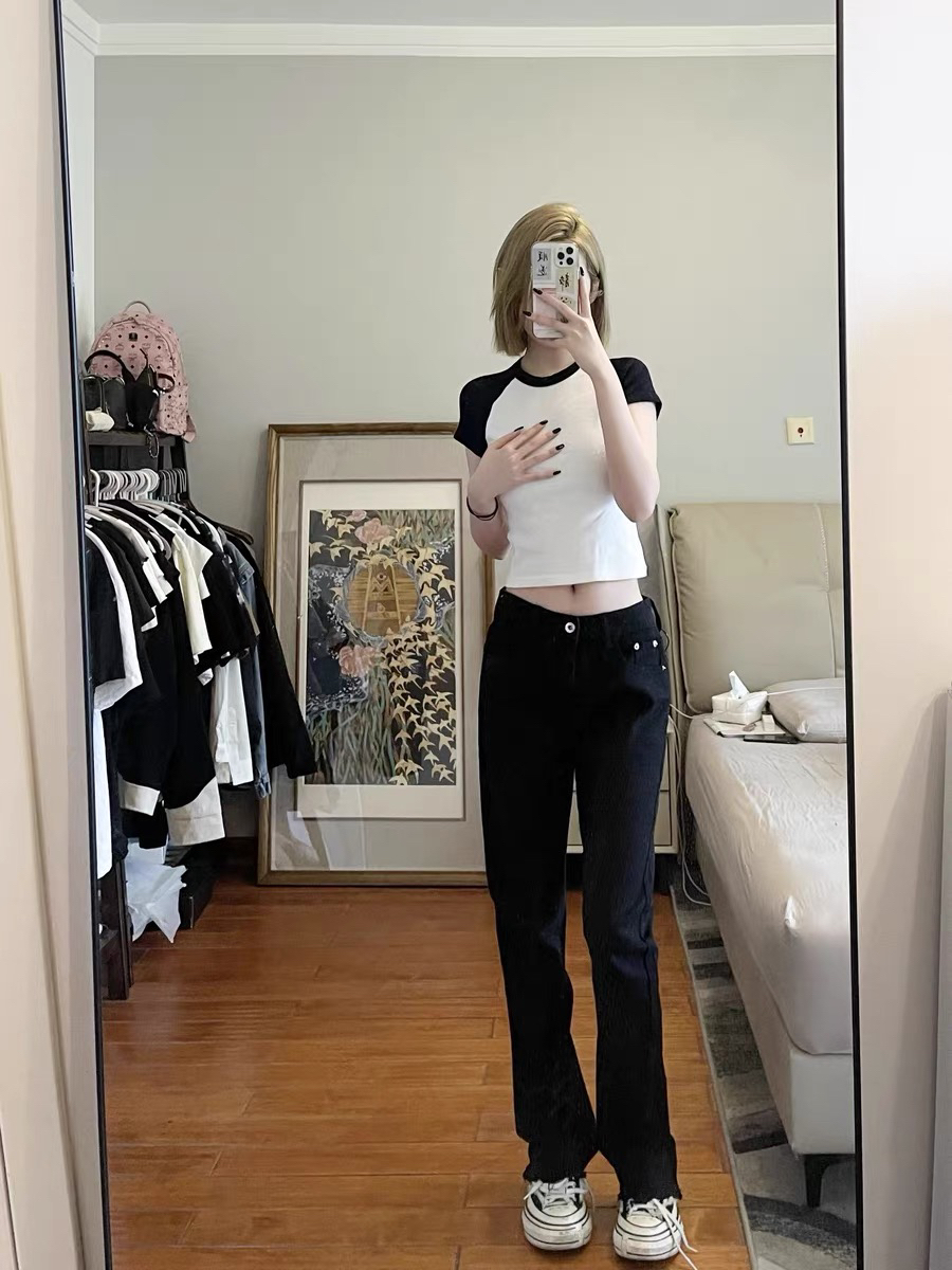 显瘦天花板的一条裤子来啦👀 版型巨好巨显瘦 微微紧身但是不会绷住腿 不会勒肉 穿上一秒变小细腿😊 面料挺软的 有弹性 喇叭裤型也不会很夸张👏 裤腿是做旧的流苏边边 很特别的设计👍微喇的设计也很适合小腿粗壮有肉肉的姐妹 闭眼入就可以了🤩 图源自网络