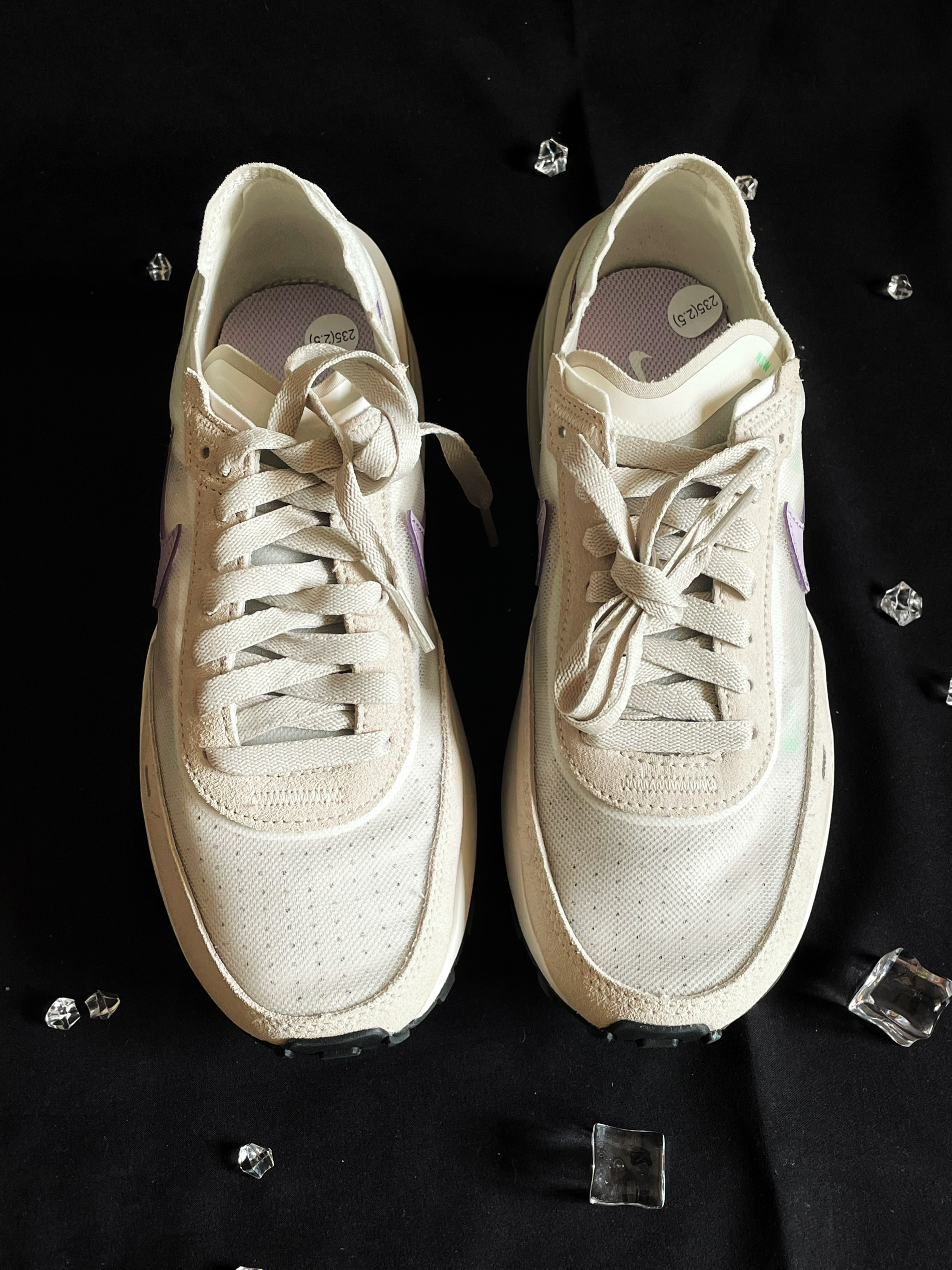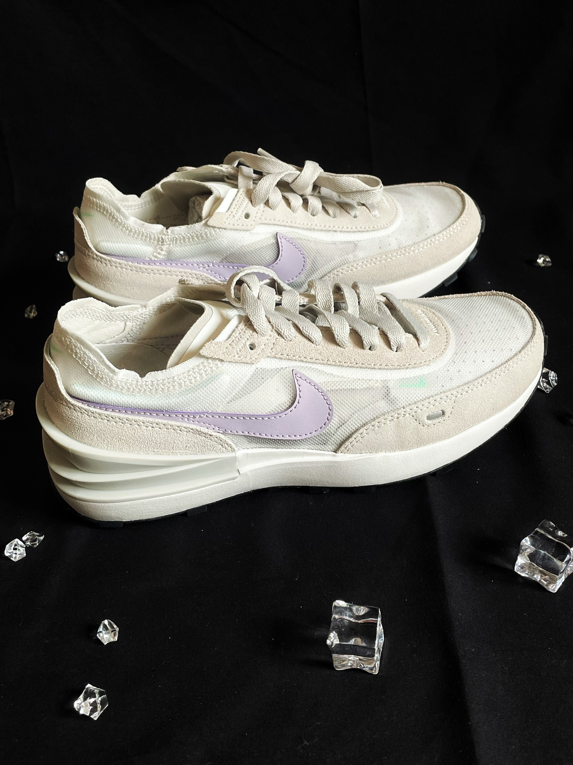 👟名称:Nike Waffle One"InfniteLilac米白紫女款 大型浮凸结构延伸包覆至鞋侧,搭配外露式之字形缝线与鲜活的Swoosh设计,注入都会美感;内里采用云朵般的蓬松材质,缔造柔软脚感。透气鞋面的抢眼色彩与柔软麂皮装饰,打造经典质感。 鞋子整体配色十分的优美时尚,给人一种特别的感觉!上脚轻盈,紫色的swiosh给人一种无限的魅力!