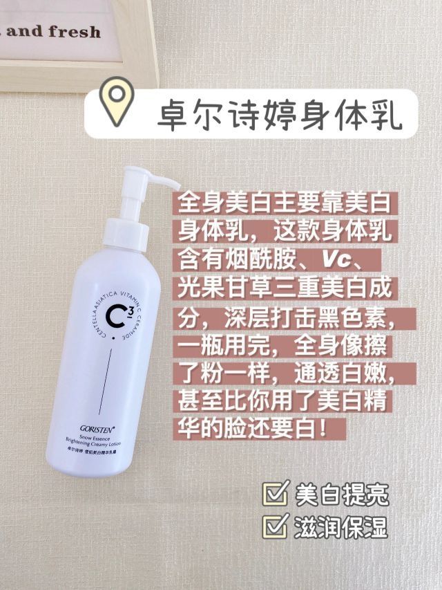 一用就白的美白好物!黑皮女大学生必备! 黑皮女大学生一年变身冷白皮美女 私藏美白好物全在这里 想白闭眼入 妈生黑皮也能给你整白喽! ~ ①卓尔诗婷身体乳——✨全身美白 美白身体乳是全身美白的重点,长期坚持涂皮肤一定会白白嫩嫩!洗完澡皮肤擦到半干时涂最容易吸收‼️ 卓尔诗婷身体乳含有高纯度烟酰胺、高含量VC、黄金浓度光果甘草,从根源阻断黑色素, 让皮肤从深处亮白起来,美白效果不输脸上用的美白精华! ...